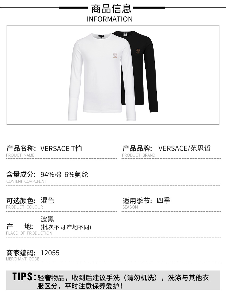 Versace 范思哲 男士美杜莎logo弹棉两件装盒装长袖T恤 12055