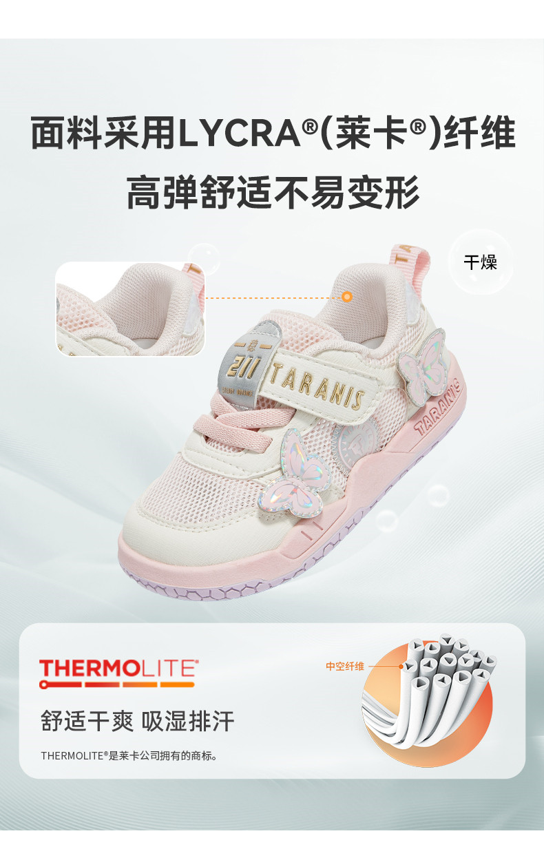 泰兰尼斯2023童鞋春季新款休闲鞋防滑跑步鞋子包头防踢女童运动鞋 T01X3A2535