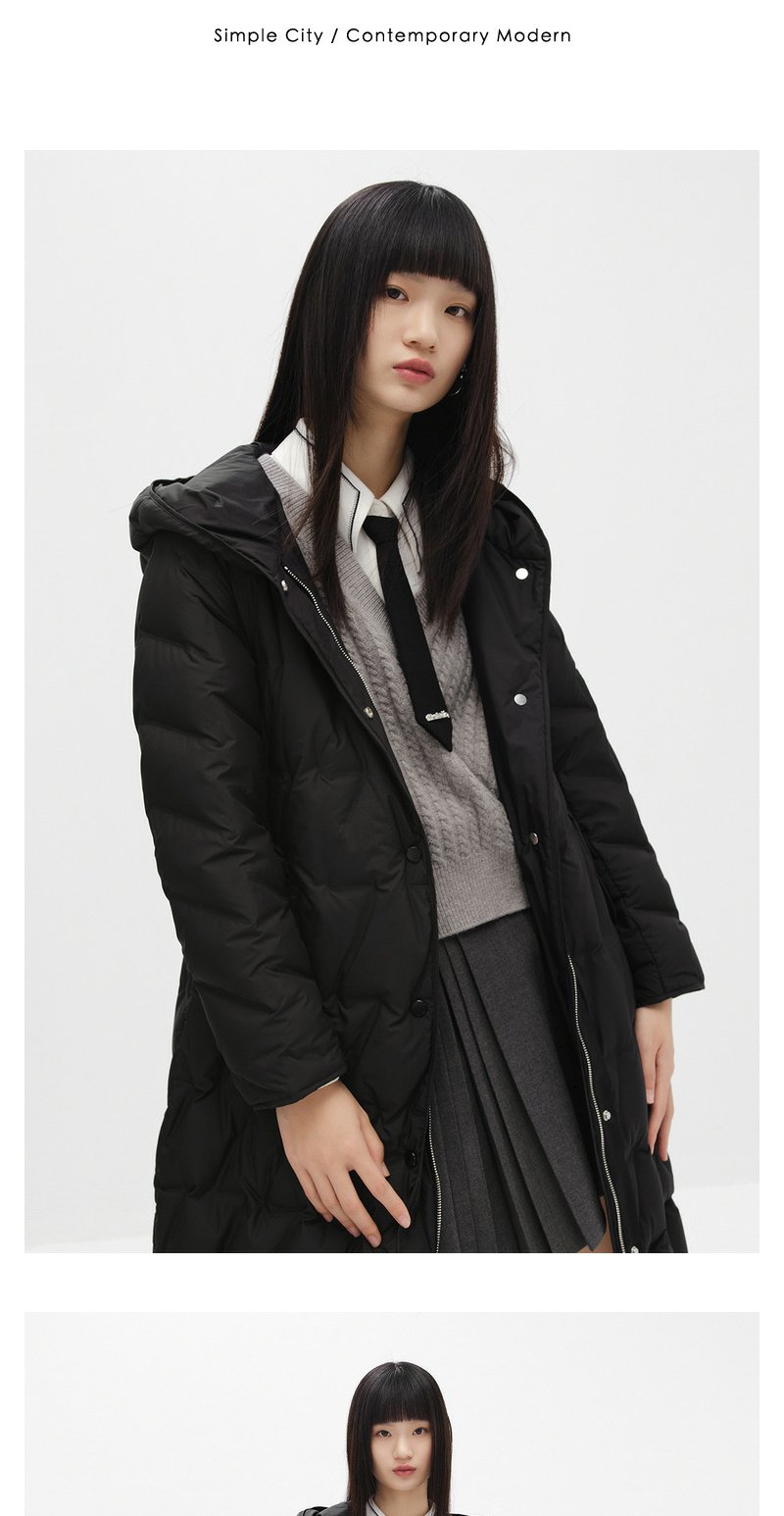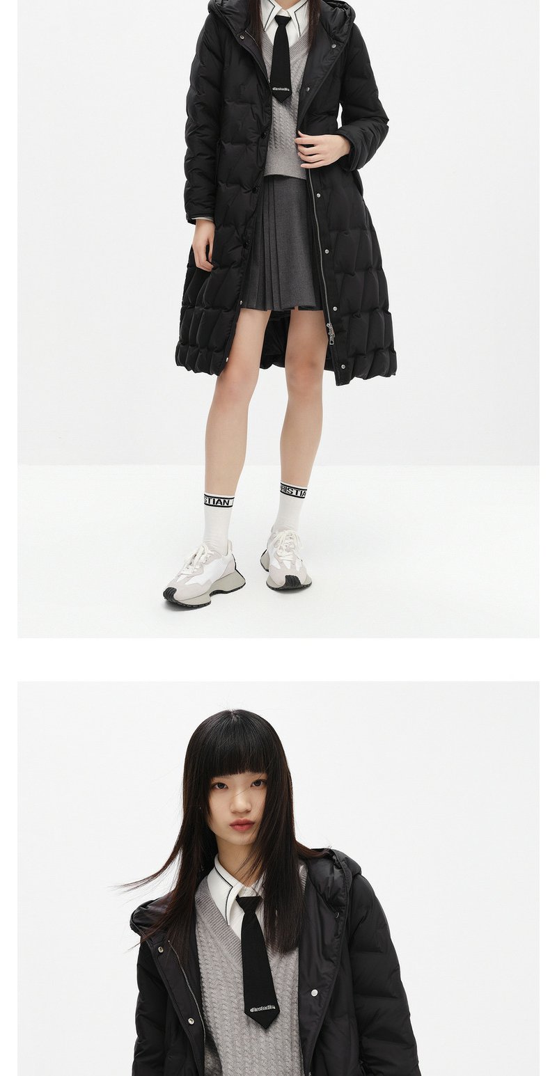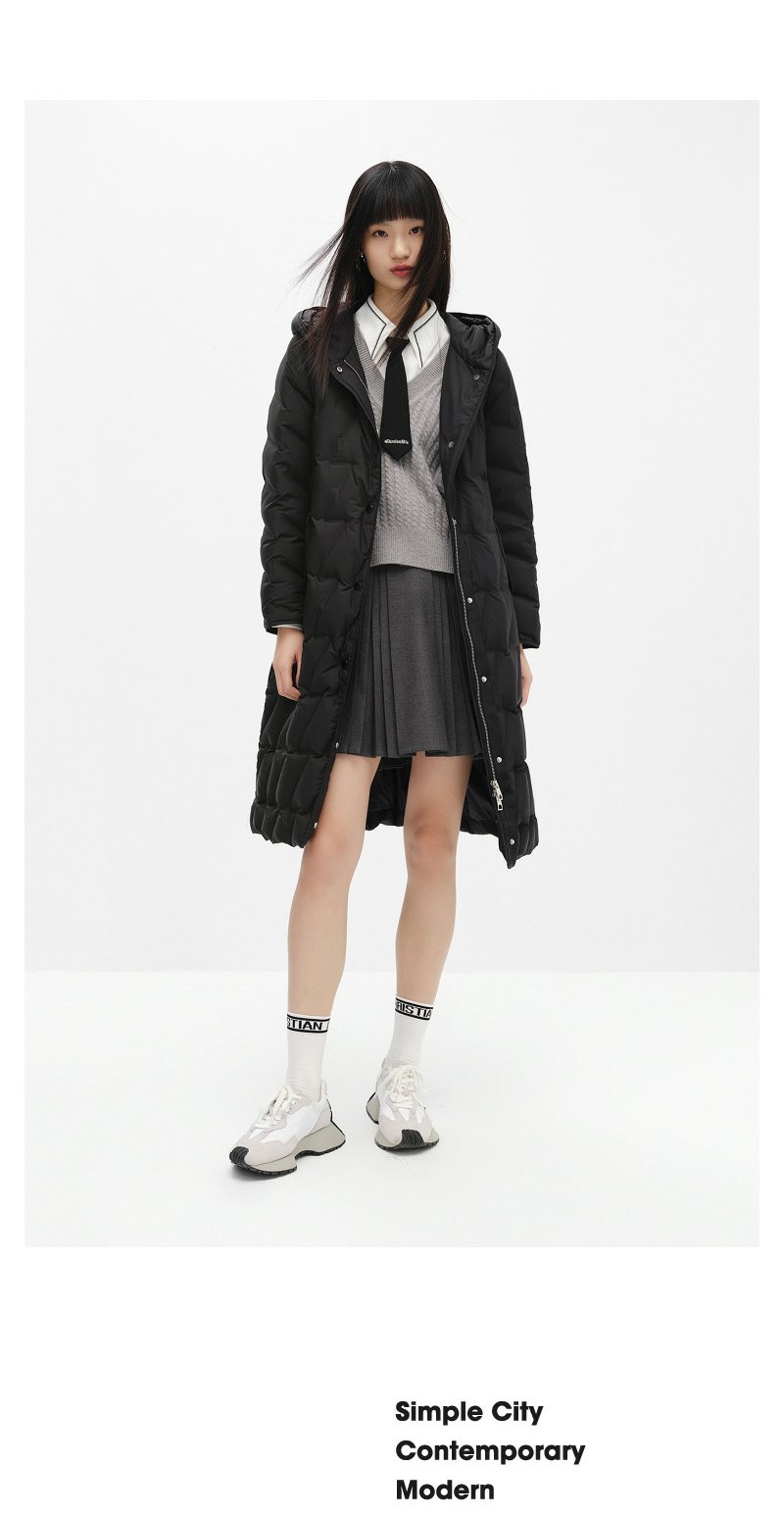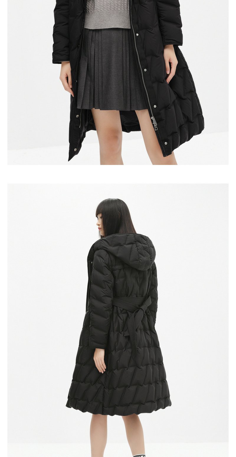 NEELLY纳俪商场同款冬季羽绒服女长款过膝腰带显瘦连帽外套N23104L04413