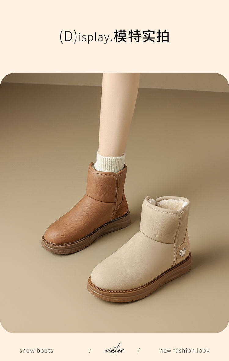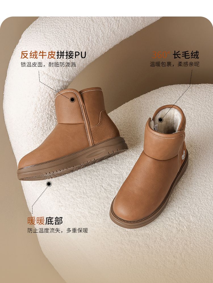 ZHR则则加绒保暖雪地靴真皮棉靴2024冬季新款防滑棉鞋运动休闲鞋