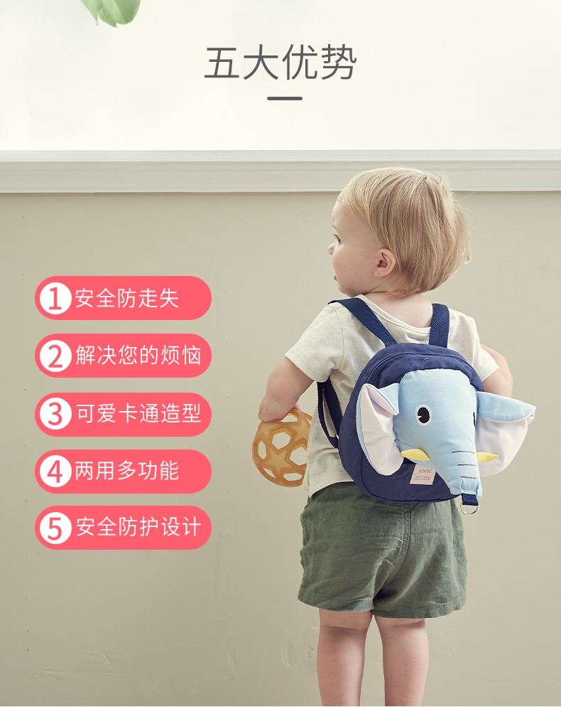 安全儿童防走丢带宝宝牵引绳遛娃小孩书包