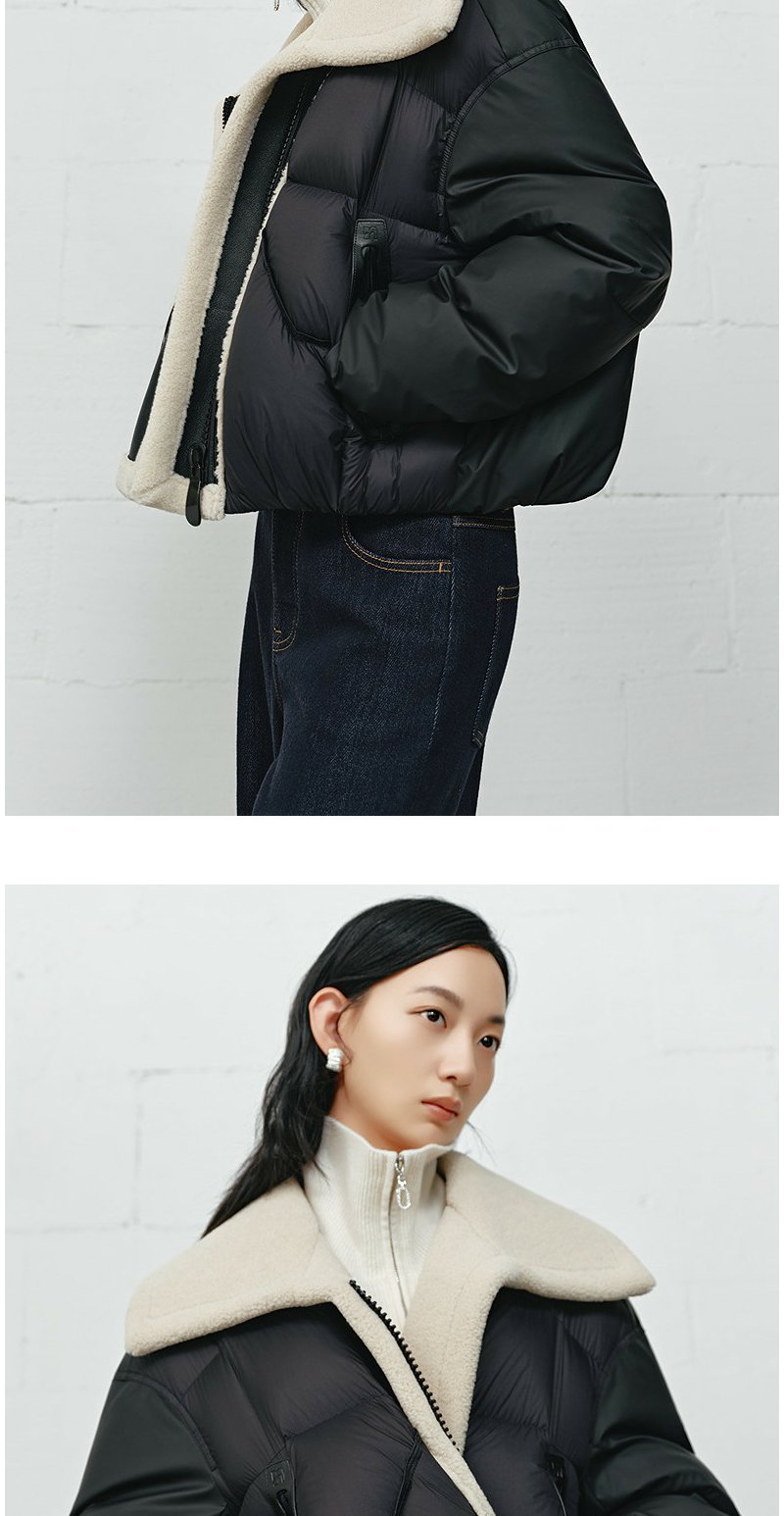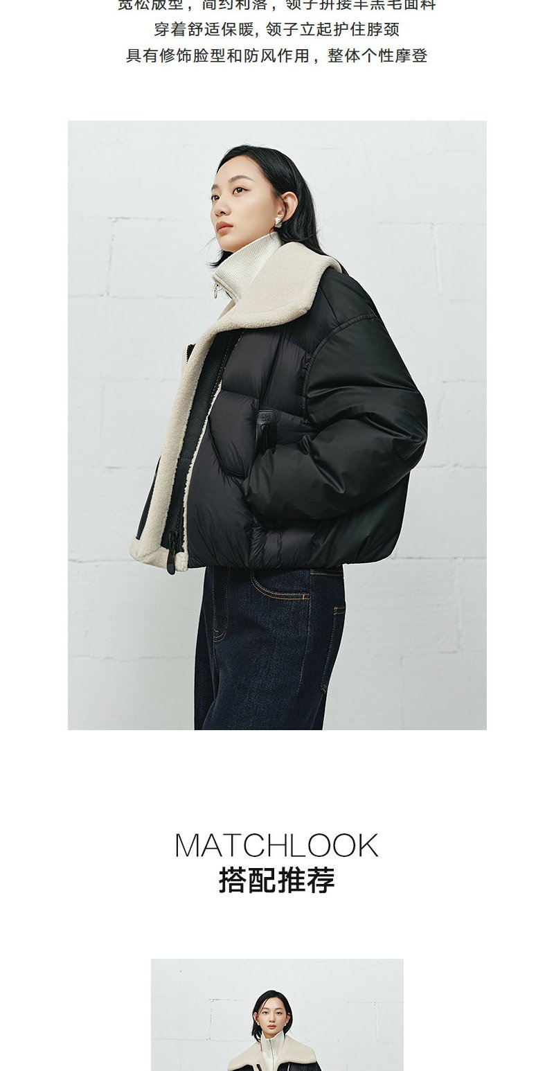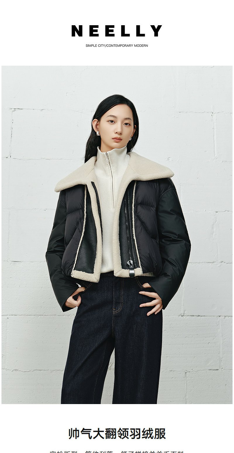 NEELLY纳俪商场同款冬季新款时尚大翻领帅气羽绒服女宽松短款外套N25112L01132