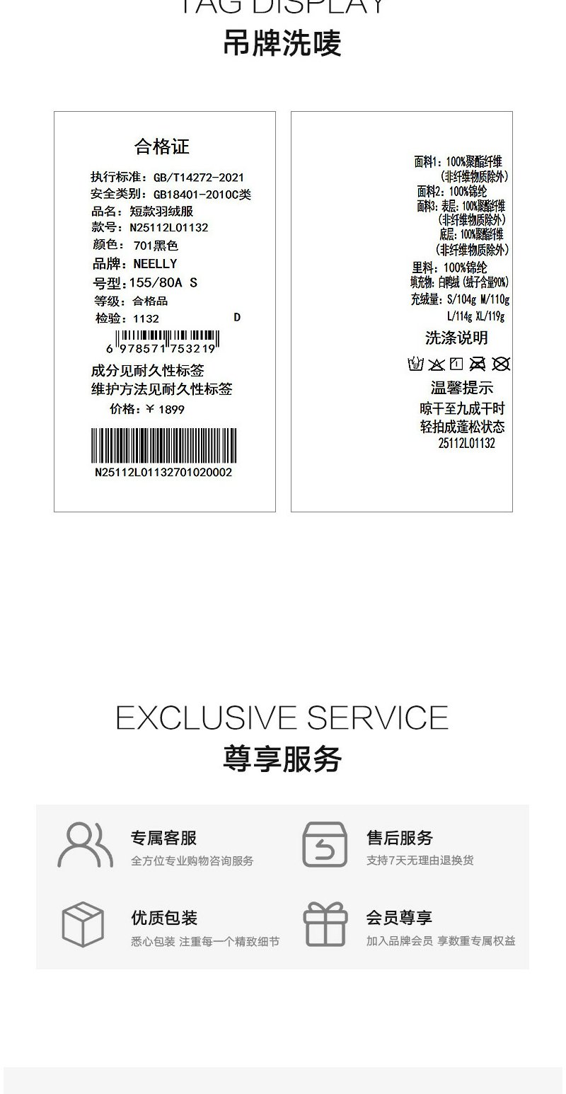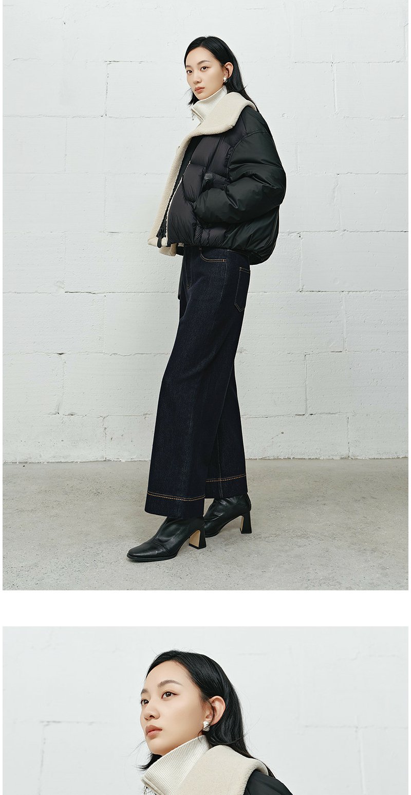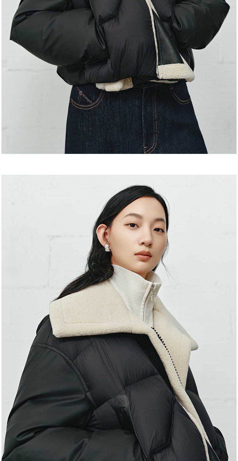 NEELLY纳俪商场同款冬季新款时尚大翻领帅气羽绒服女宽松短款外套N25112L01132
