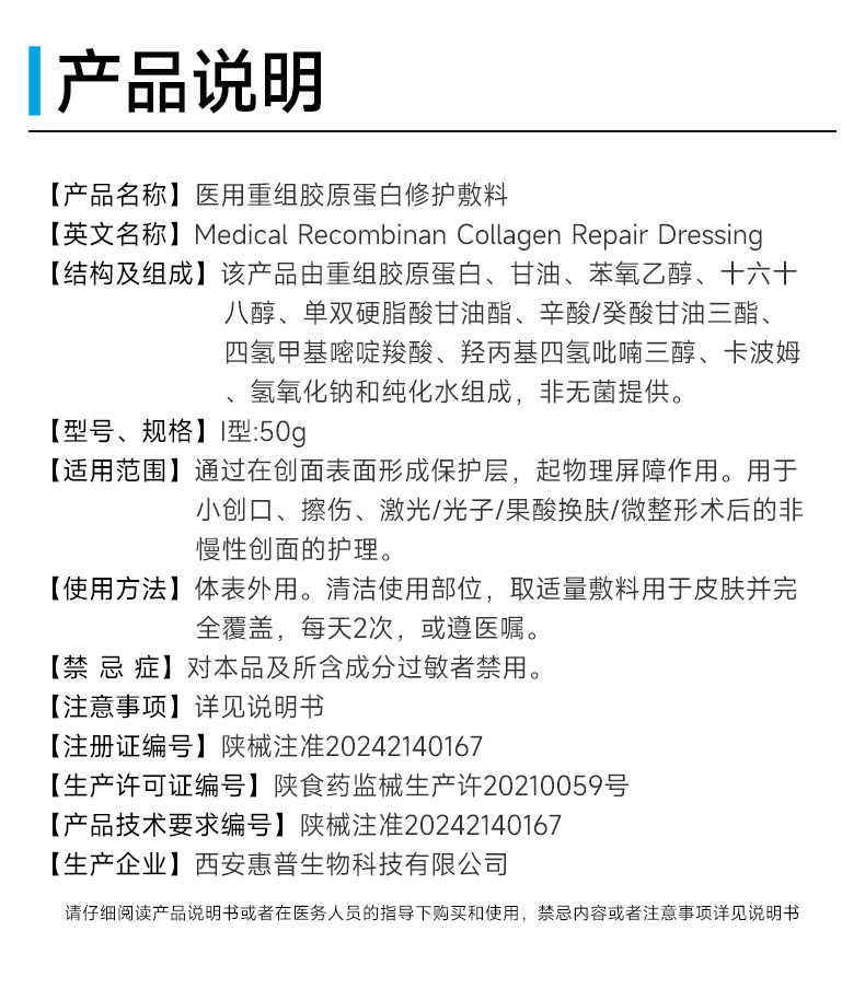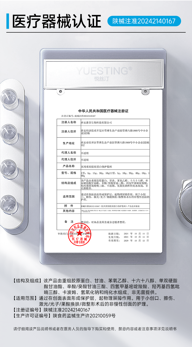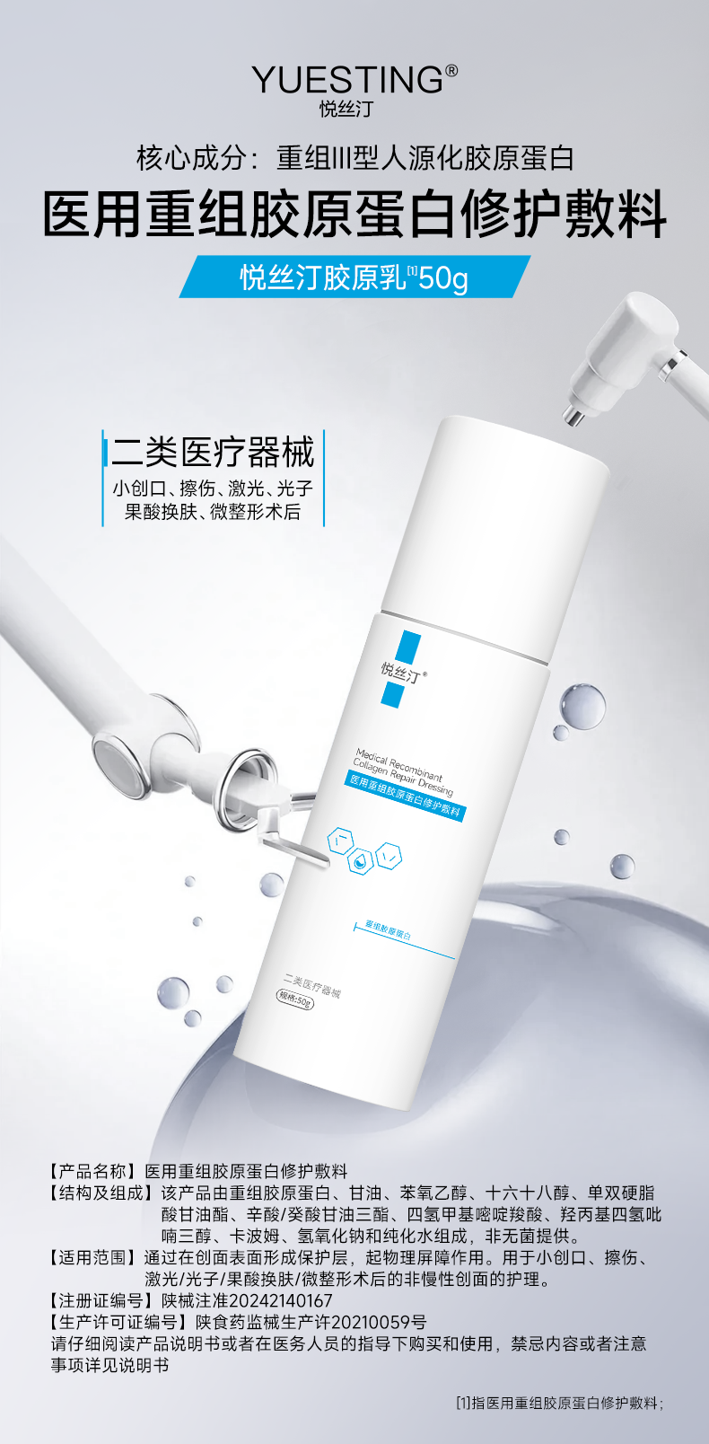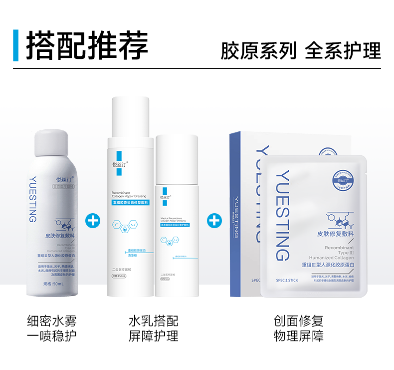 悦丝汀医用重组胶原蛋白修护敷料r乳50g术后创面保护乳液状非面膜