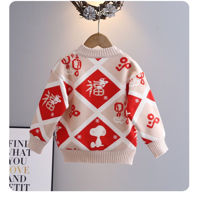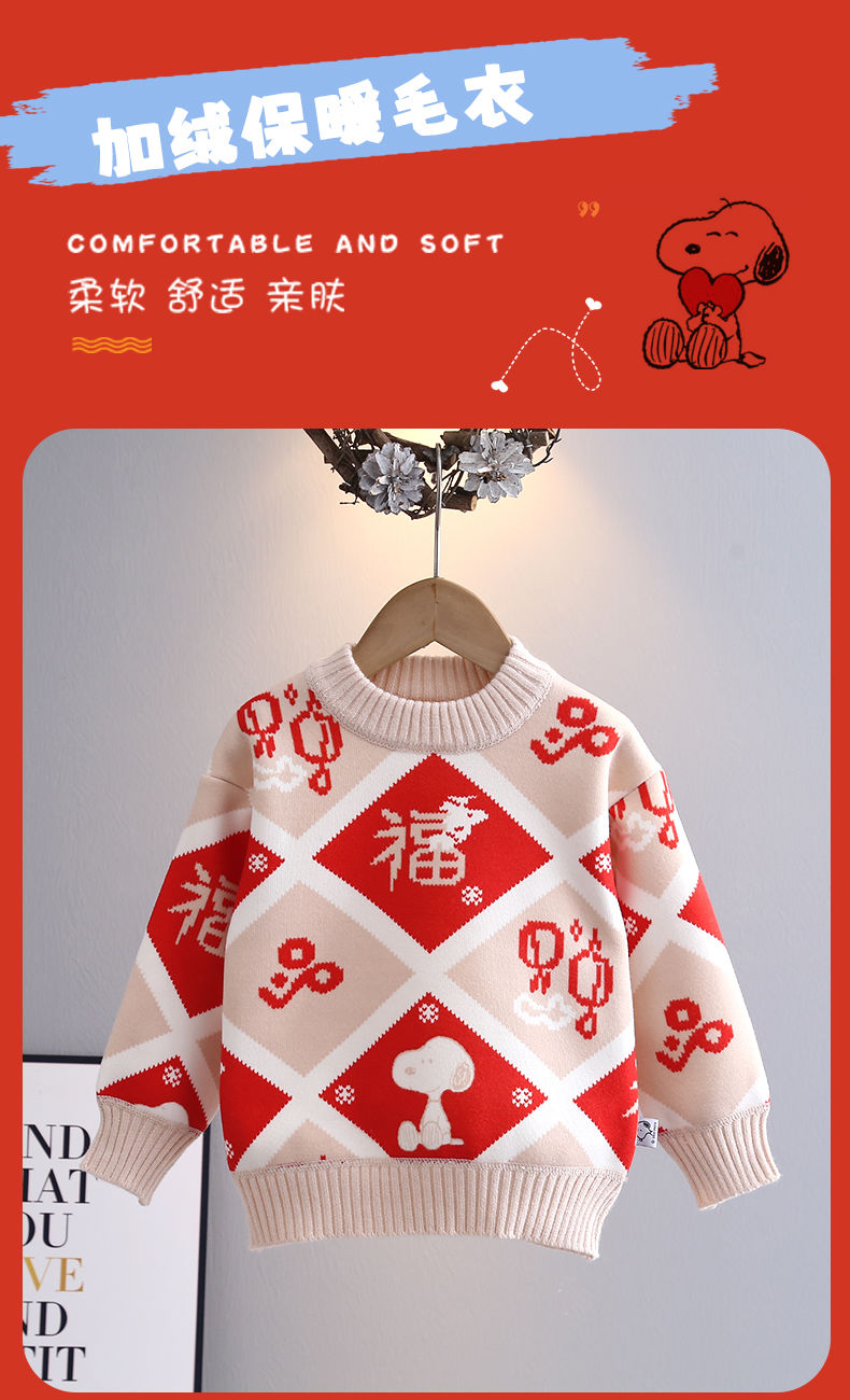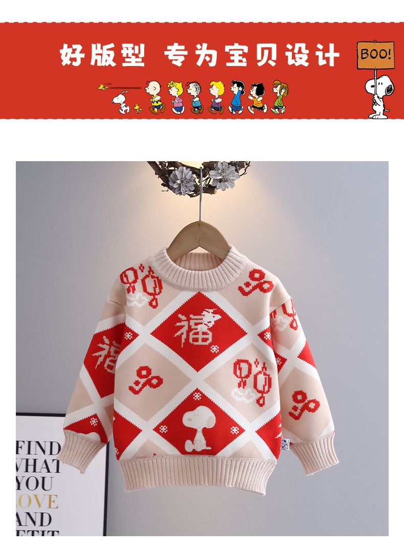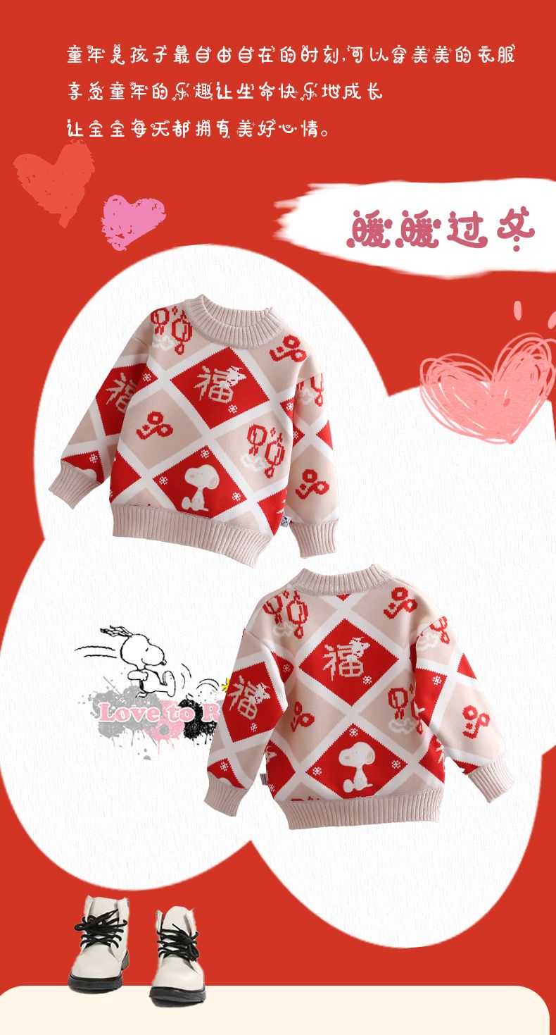 史努比儿童毛衣兄妹姐弟福气满满喜庆拜年服加绒厚冬季男女童同款毛衣90-160cm
