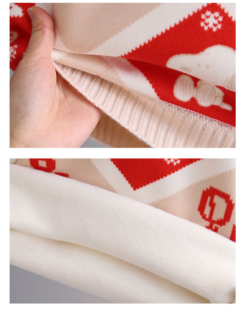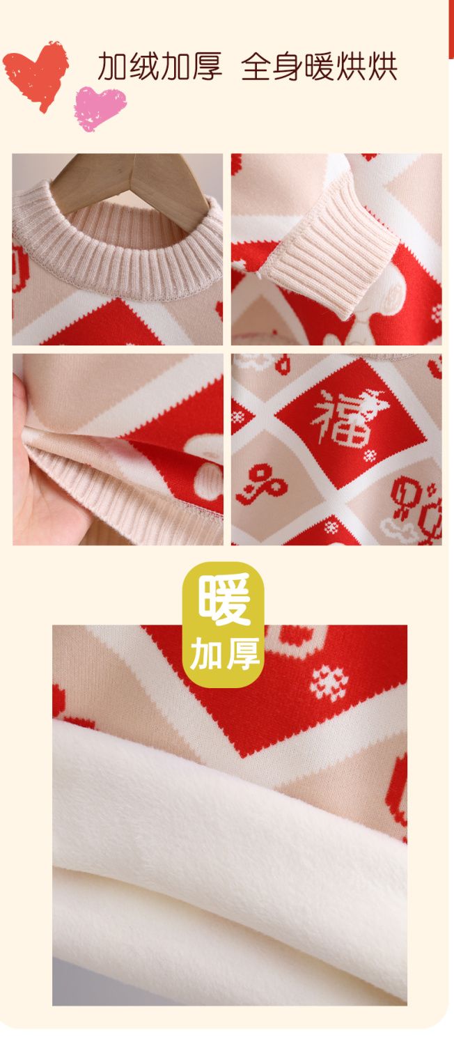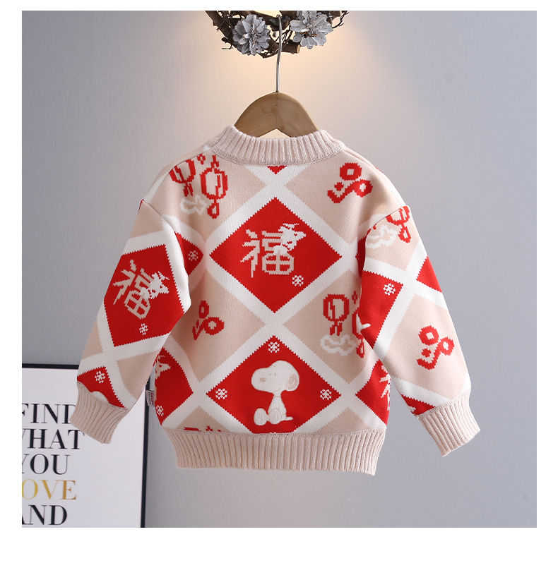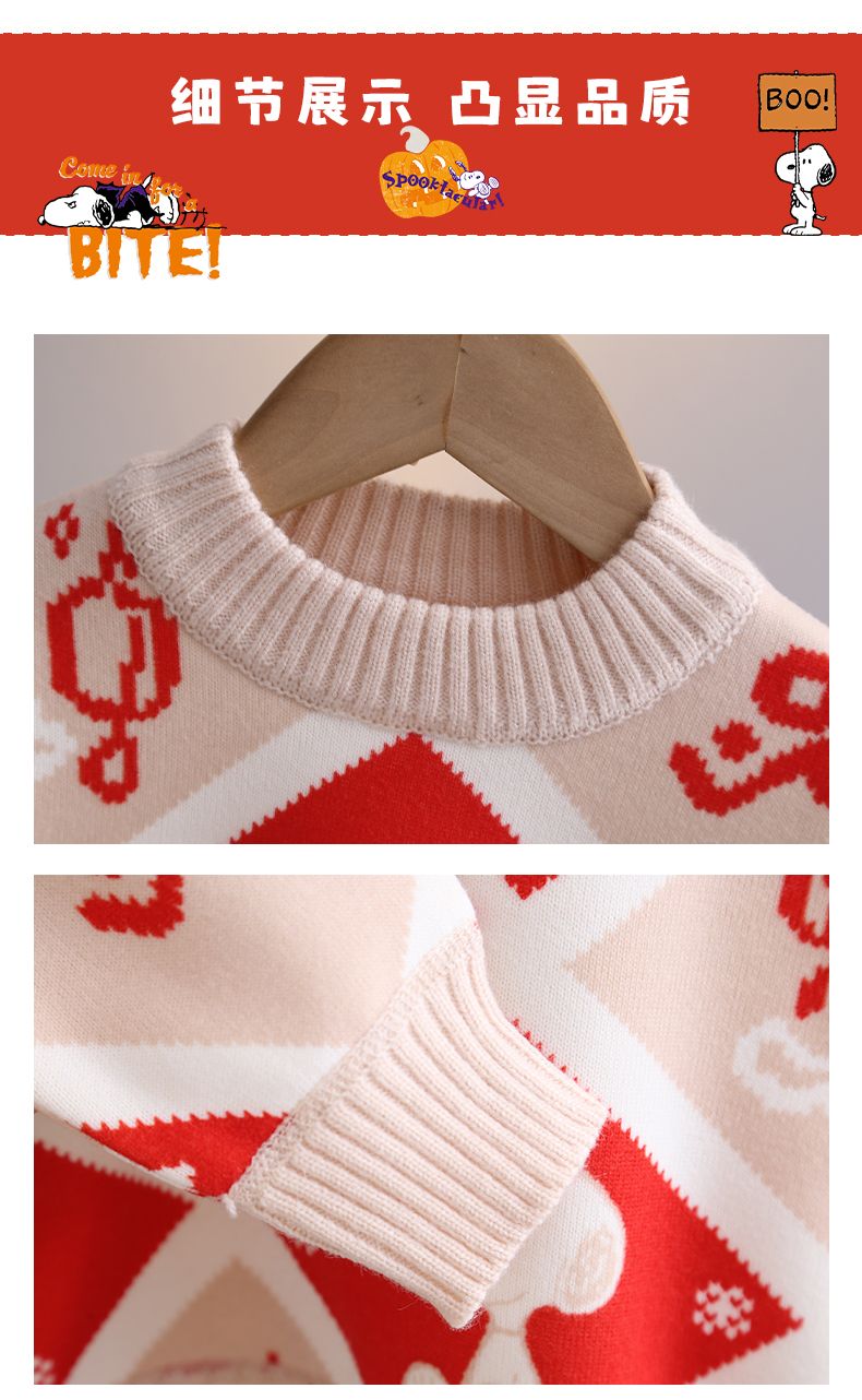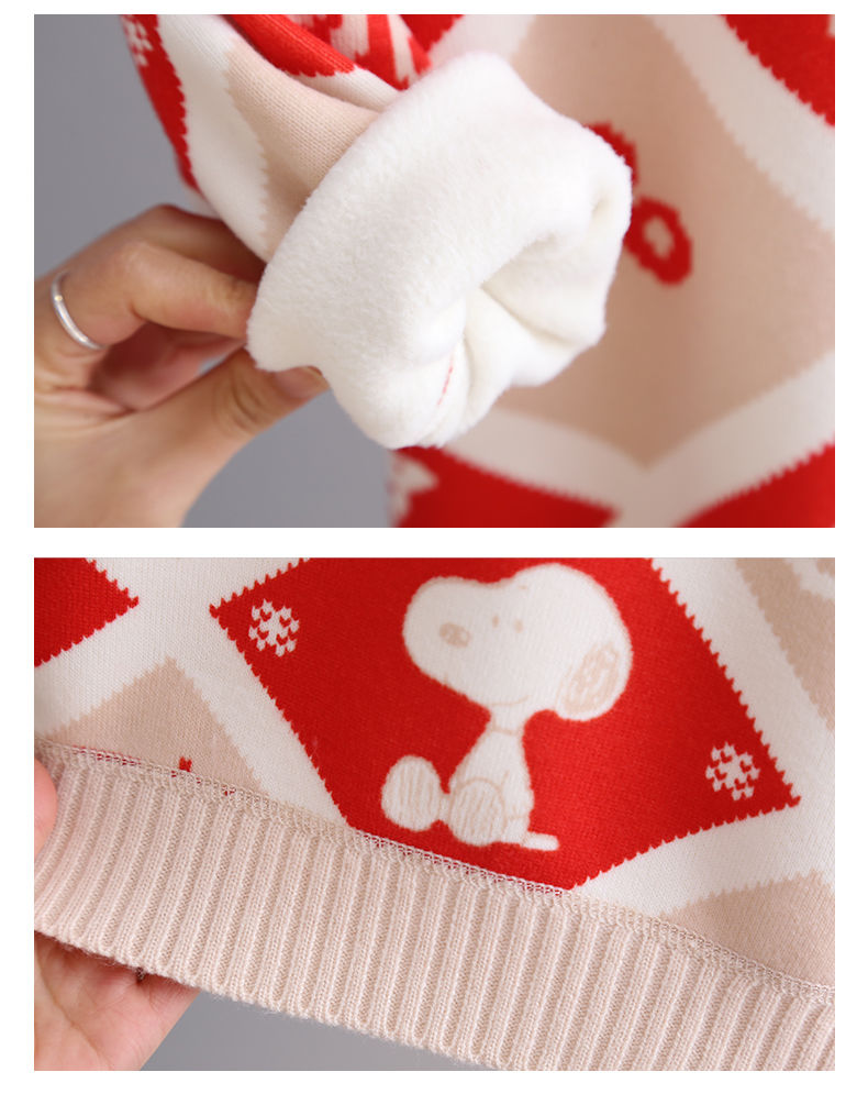 史努比儿童毛衣兄妹姐弟福气满满喜庆拜年服加绒厚冬季男女童同款毛衣90-160cm