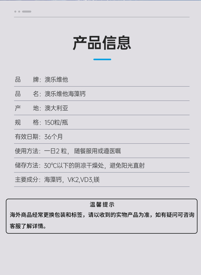 海藻钙牡蛎钙片维生素 150粒*1瓶 A-4784