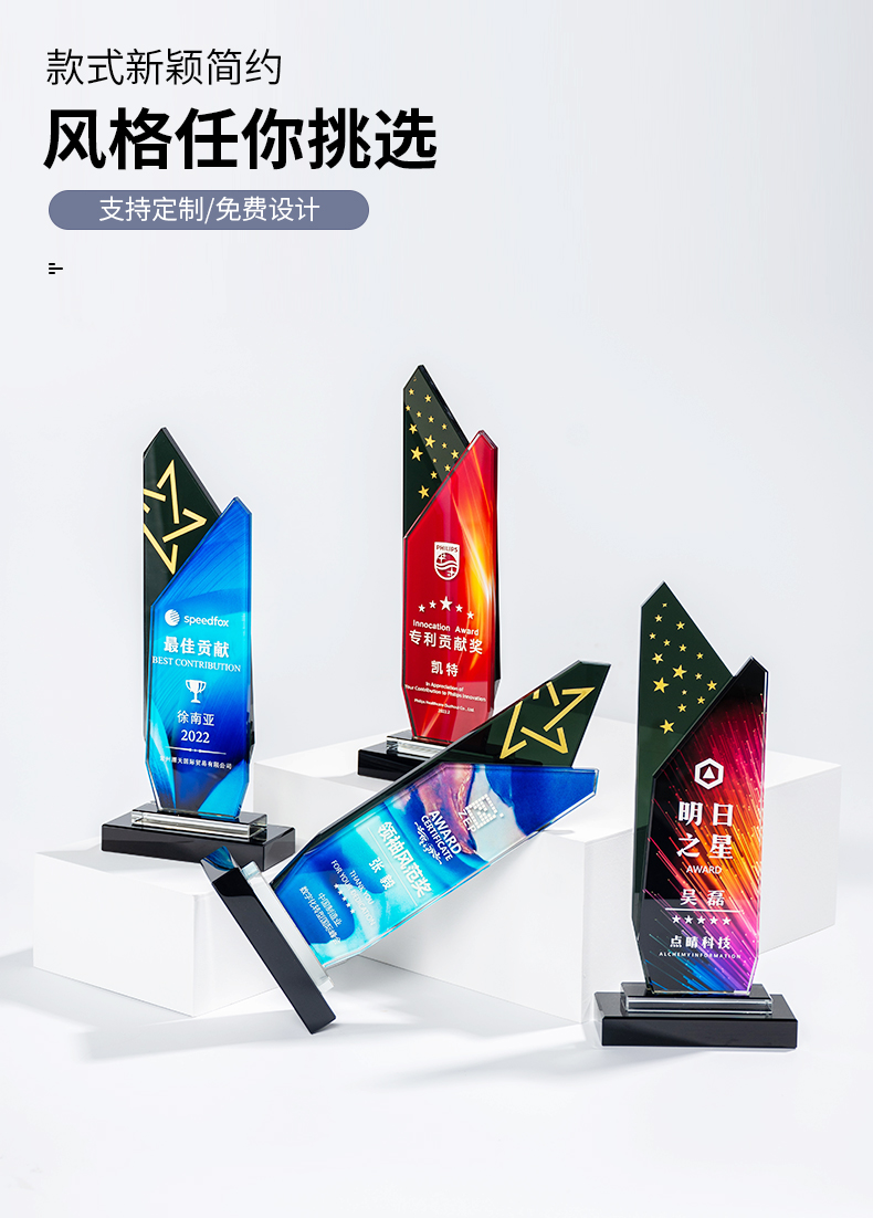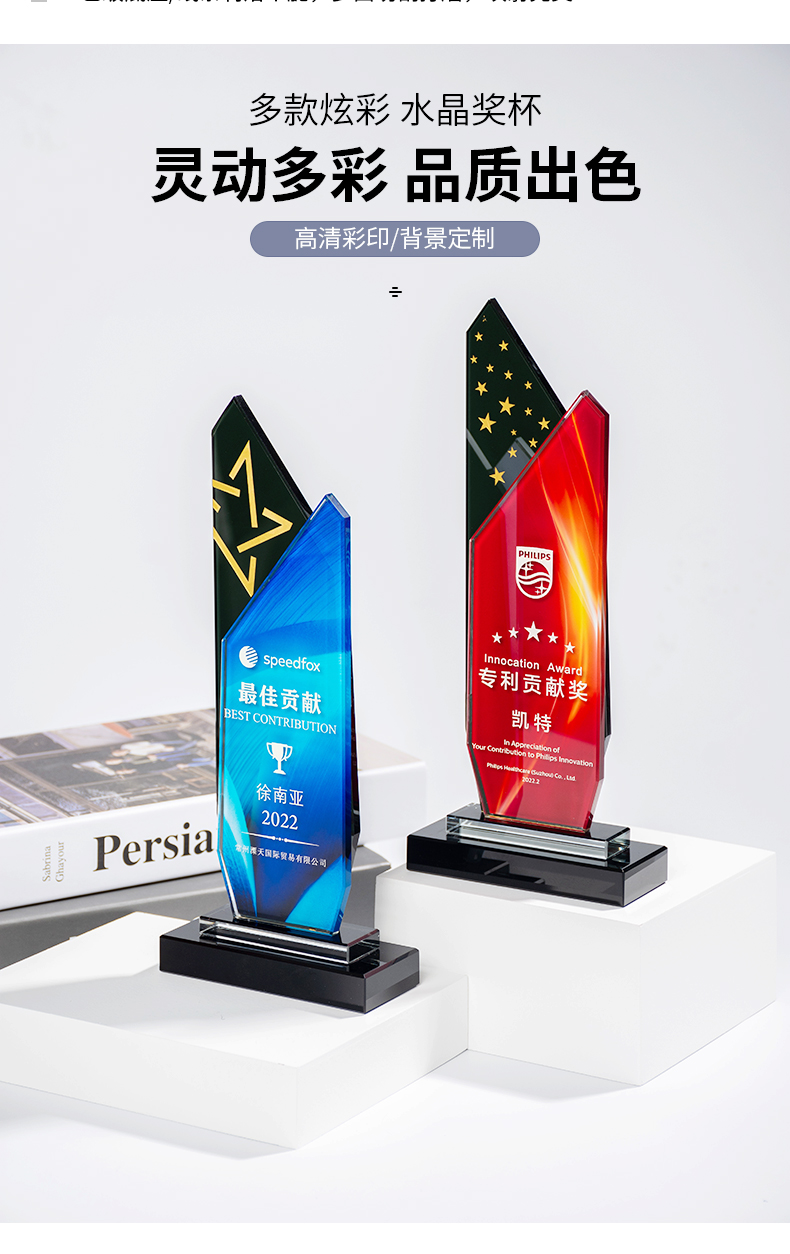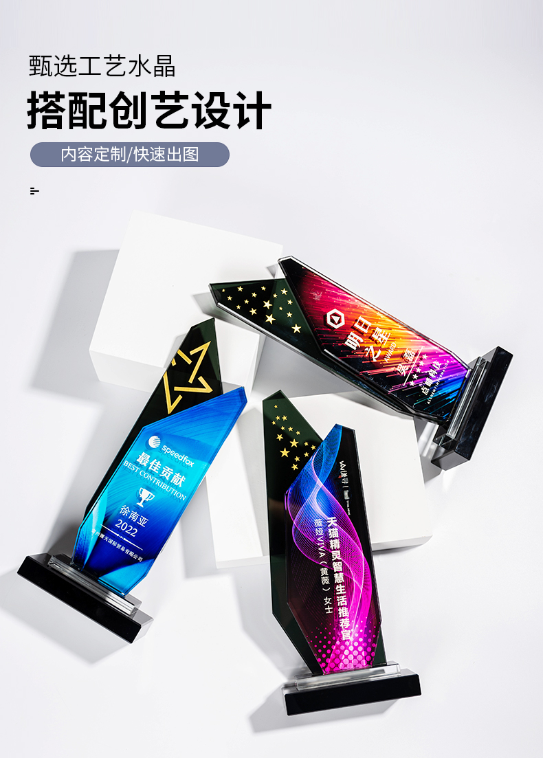 奖杯水晶定制高级彩色奖牌刻字先进企业销售优秀员工运动会纪念品