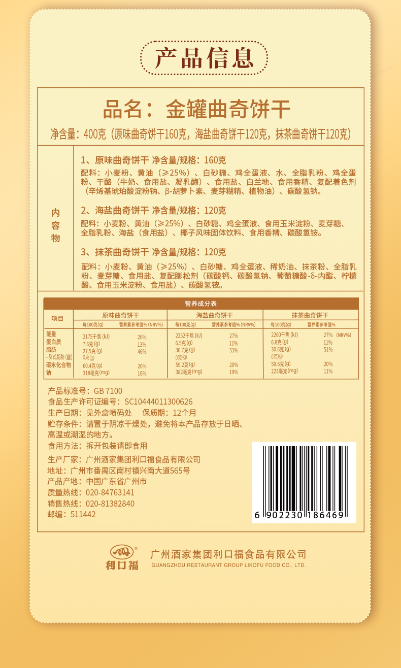 广州酒家 金罐曲奇礼盒利口福多口味饼干糕点手信下午茶节日团购送礼