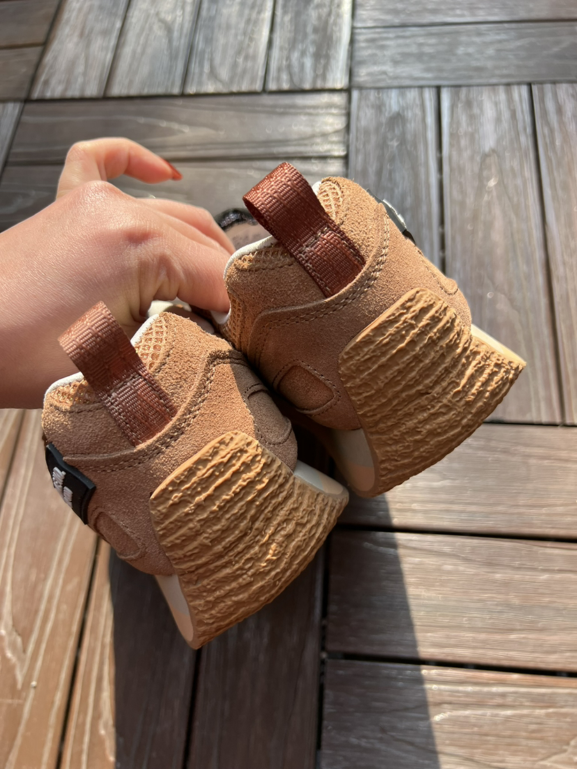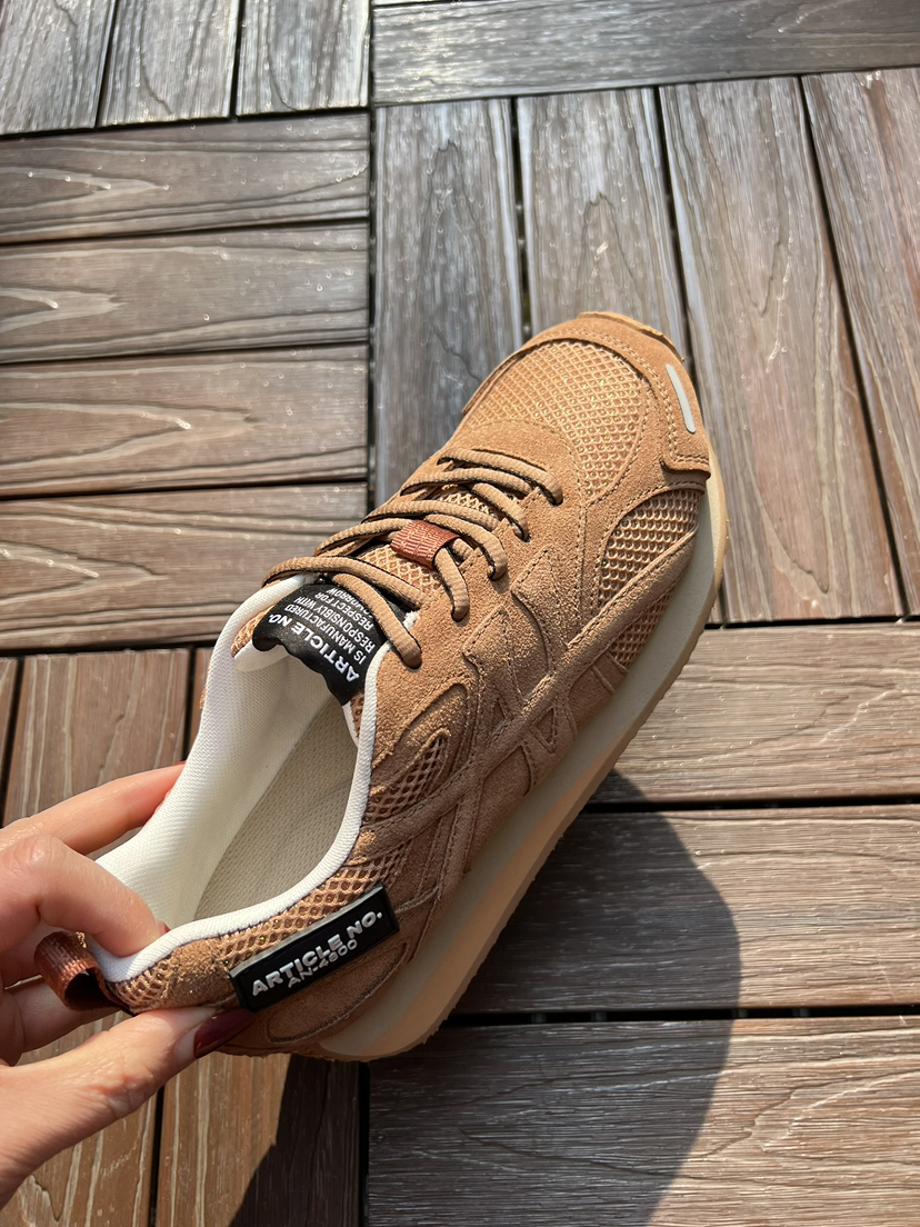 焦色糖,室内拍室外拍有会色差,闺女一眼重看的鞋子千,禧复古慢跑鞋上,脚舒适脚感轻盈,点重是,这个弧,度就自然然而的跟,脚就自的发让你感很觉好跑很,好走,3.5cm的高跟,恰到好处自的然弧度,让走你起来不拉脚背,跟贼脚,暴走离家出都走不是个儿事。