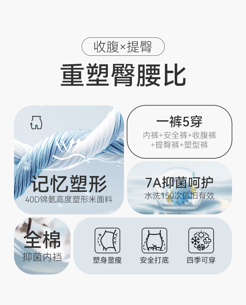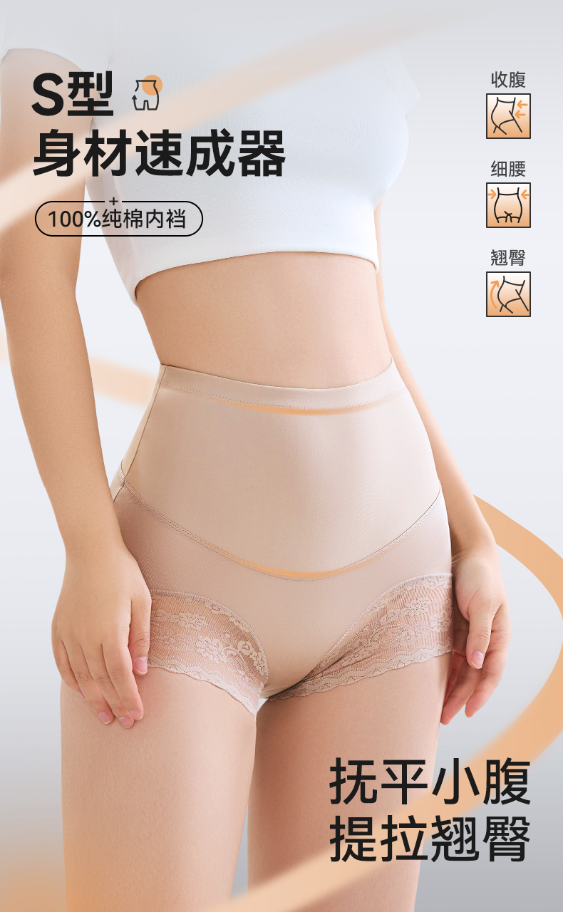 【3条特惠 】中高腰轻塑裤收腹提臀裤7A抑菌纯棉裆内裤女 A-3542 【彗星天使】