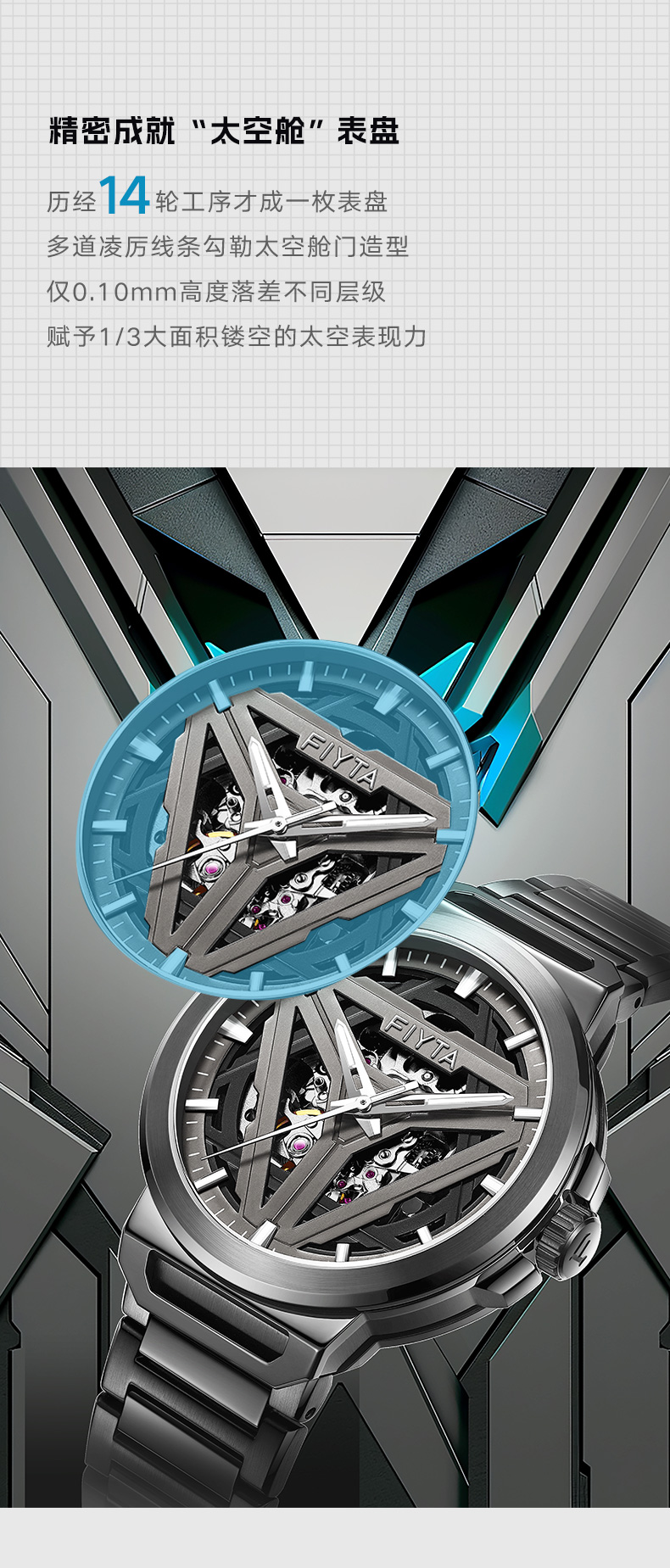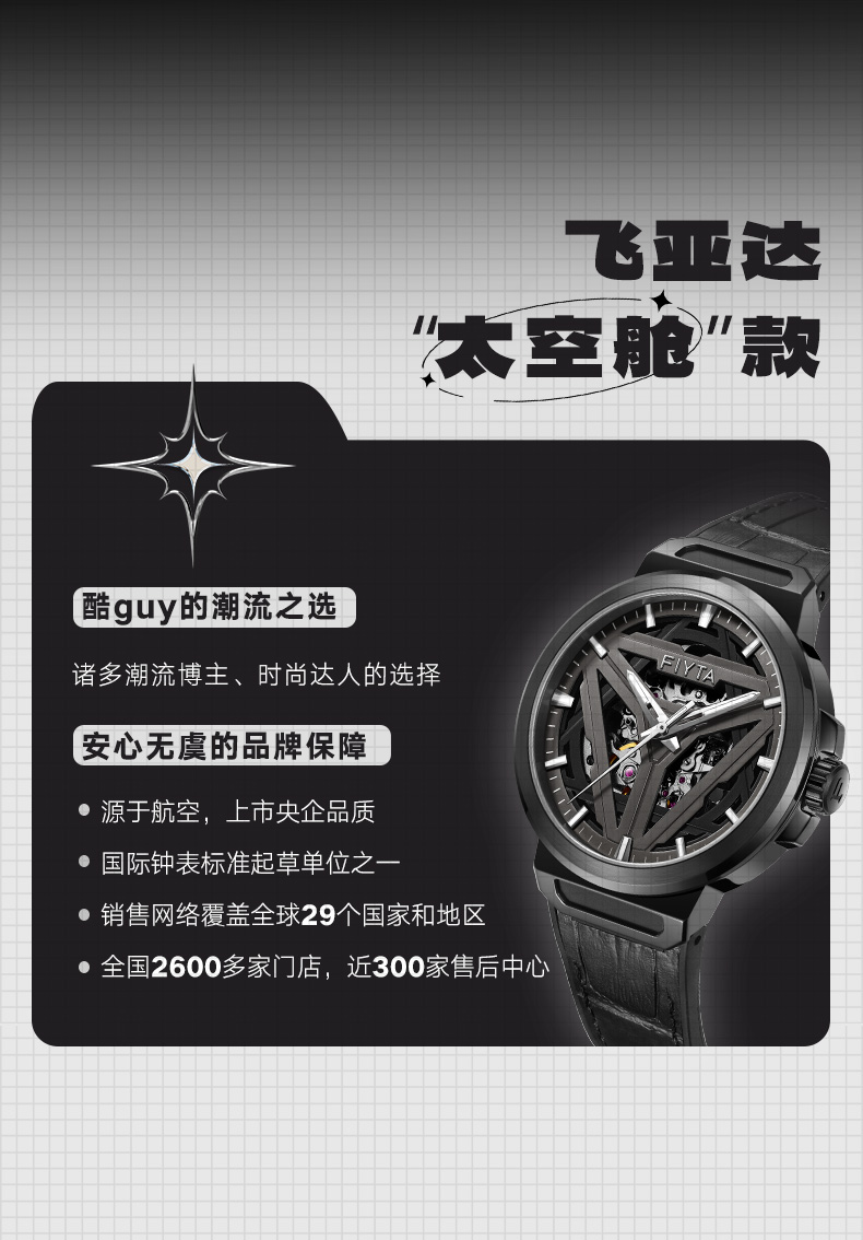 - 飞亚达表秉持源自航空的超精密工艺,飞亚达以专业与美感兼具的腕表设计,演绎对“飞”的艺术化探索,诠释非凡向上的品牌风范,讲述“一旦拥有,别无所求”的故事。