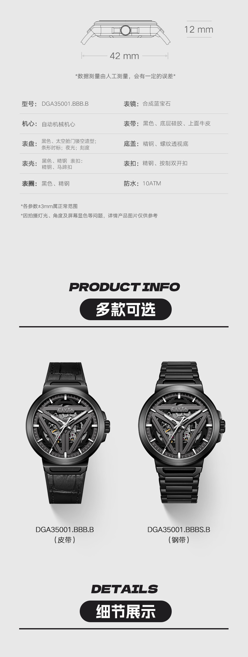 【新品】飞亚达星际系列“太空舱”机械男表 DGA35001.BBB.B\DGA35001.BBBS.B