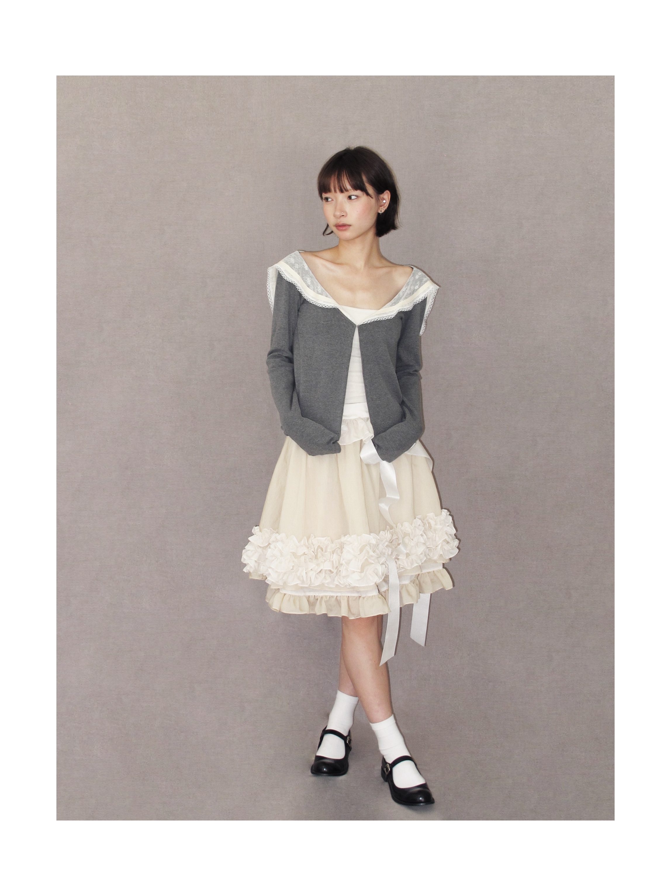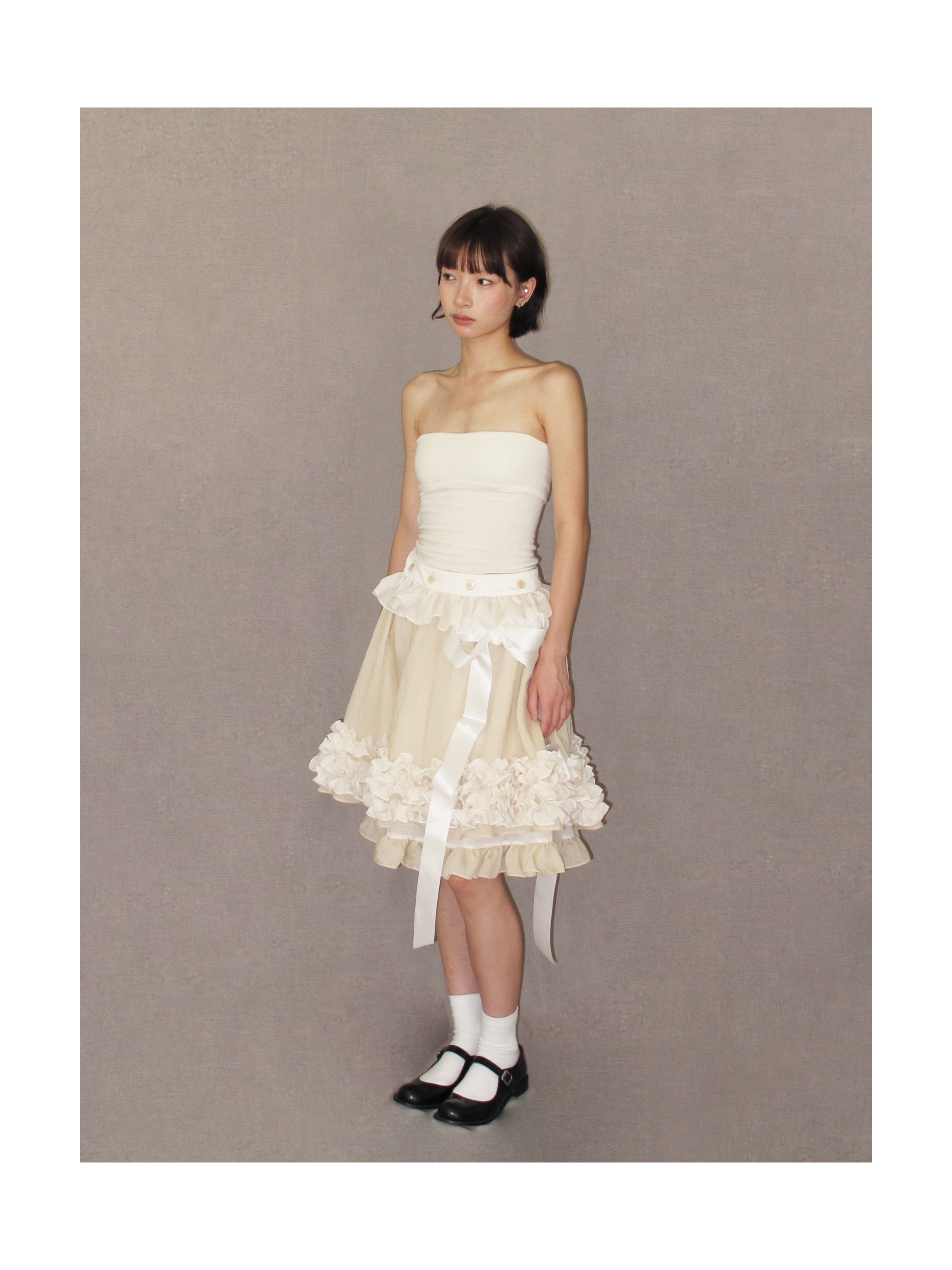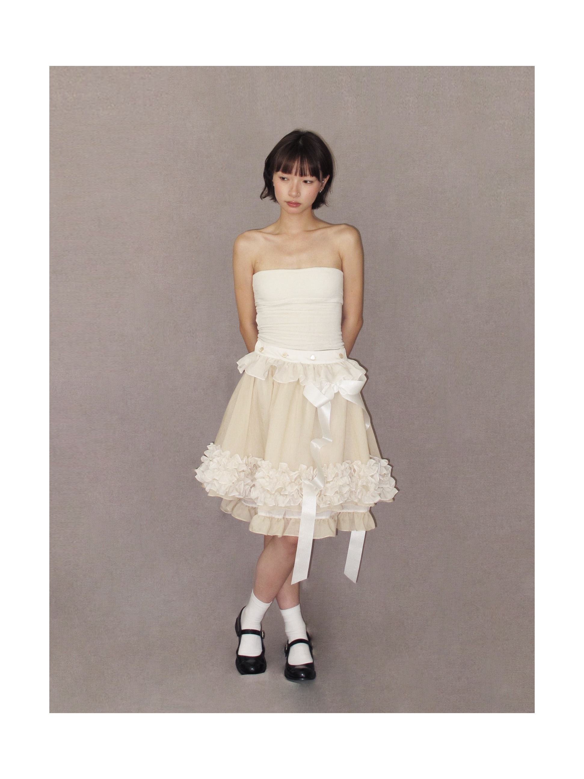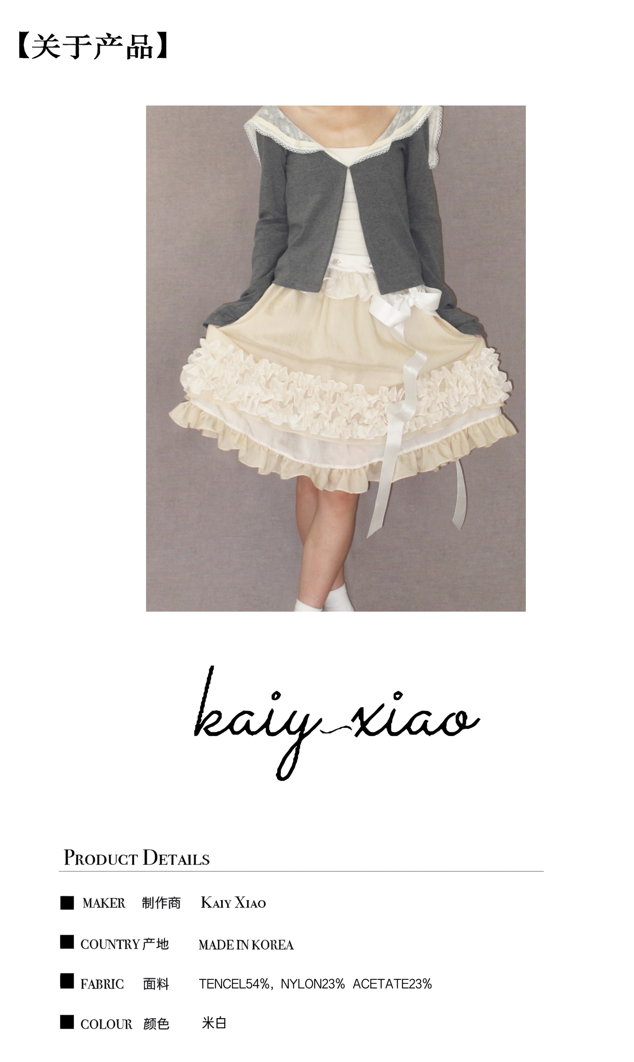 Kaiy Xiao 魔法系列 花边蛋糕双层天丝半裙(蝴蝶结可拆卸)