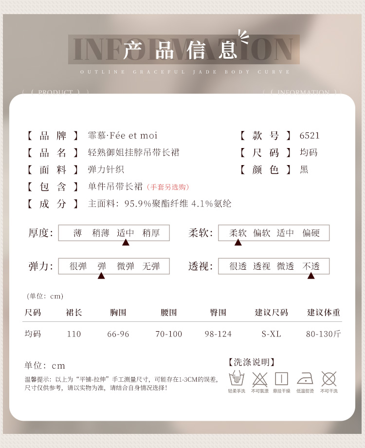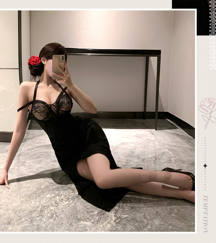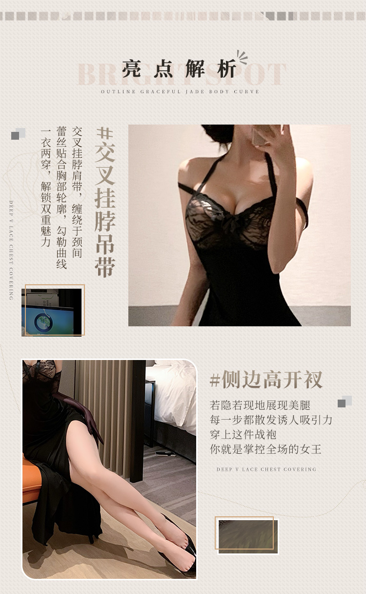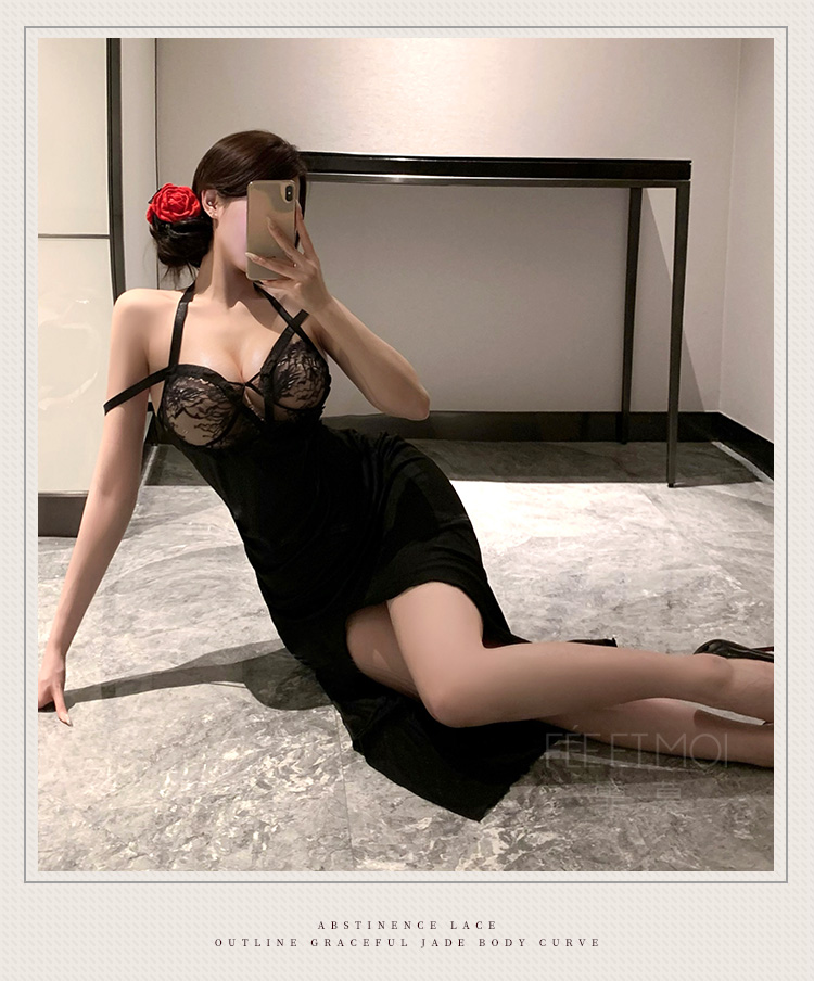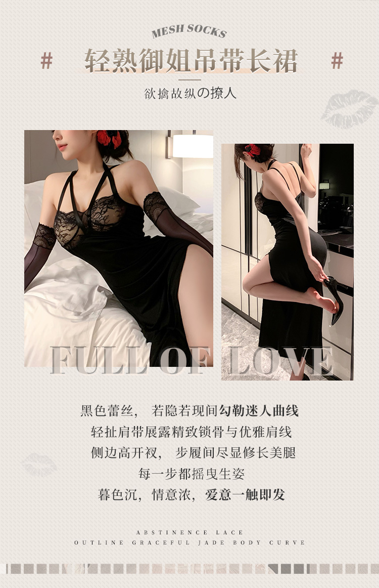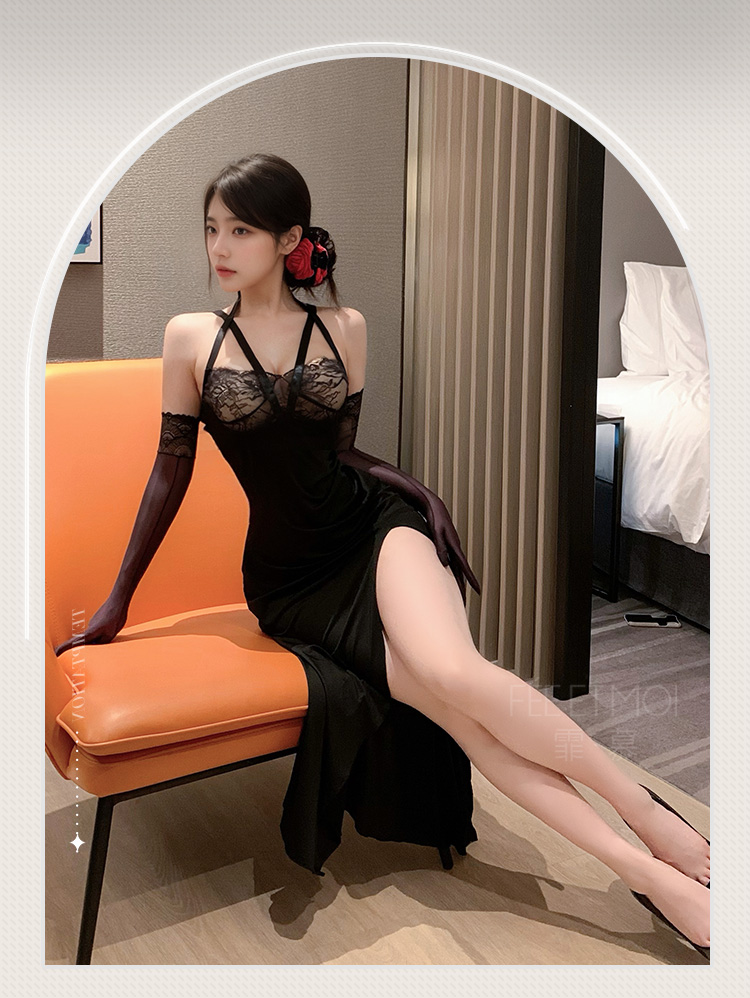 霏慕 轻熟御姐风挂脖吊带长裙6521 情趣内衣性感睡裙