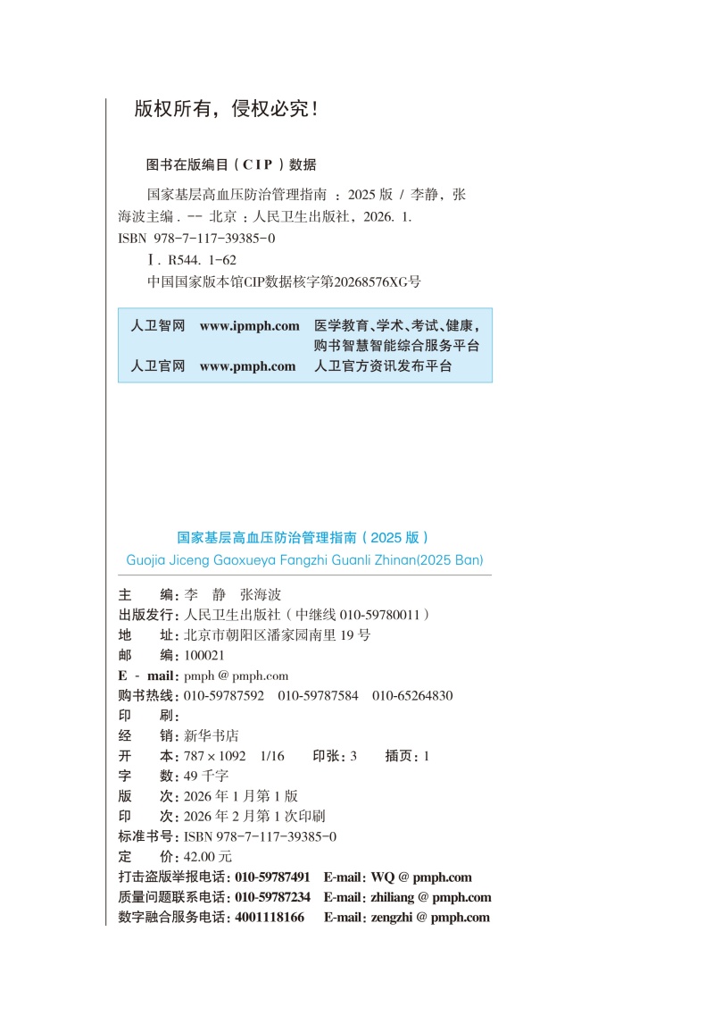 国家基层高血压防治管理指南(2025版)李静 张海波 主编 本指南主要适用于基层医疗卫生机构医务人员9787117393850人民卫生出版社