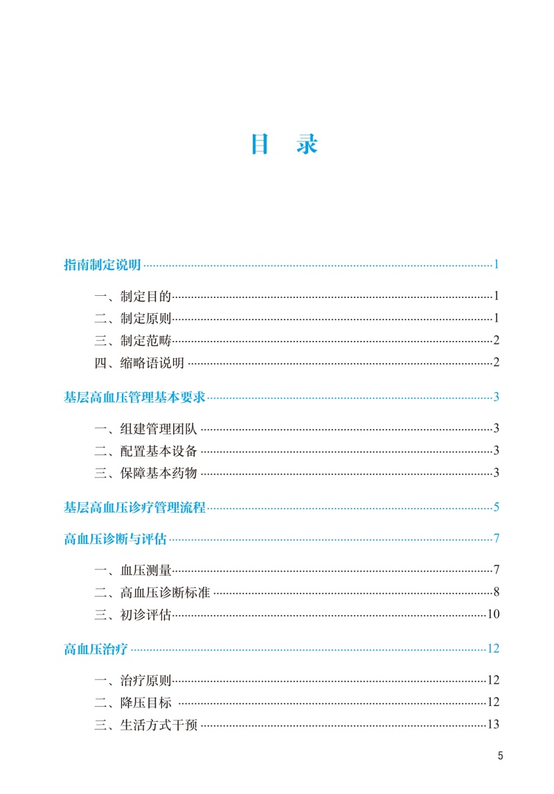 本指南主要内容包括指南制定说明、基层高血压管理基本要求、基层高血压防治管理流程、高血压诊断、高血压治疗、高血压与中医药、转诊,以及高血压长期随访管理,为确保其可实施性,以直接的操作推荐为主。本指南主要适用于基层医疗卫生机构医务人员。管理人群涵盖辖区内≥18岁的成年原发性高血压患者。本指南制定的核心是可操作性,同时兼顾管理效果的可追踪、可考核,提供基层医疗卫生机构医务人员可掌握的简单、实用的治疗方案。指导性,药物治疗的推荐以具有明确循证医学依据的药物为基础,帮助基层医疗卫生机构医生与上级医院医生在原发性高血压药物治疗上的同质化。**性,国家心血管病中心成立国家基本公共卫生服务项目基层高血压管理办公室,组织业内**专家编写本指南。