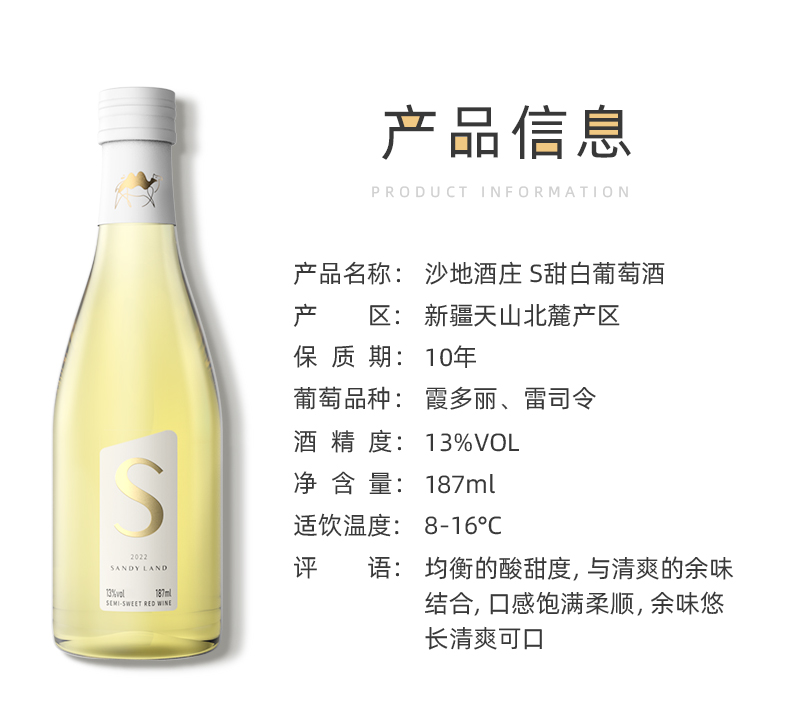 疯抢中!!【春节不打烊】【送新年手提礼盒】【大美新疆·S雷司令甜白葡萄酒】口感柔顺更好喝 13%vol 187ml*6瓶