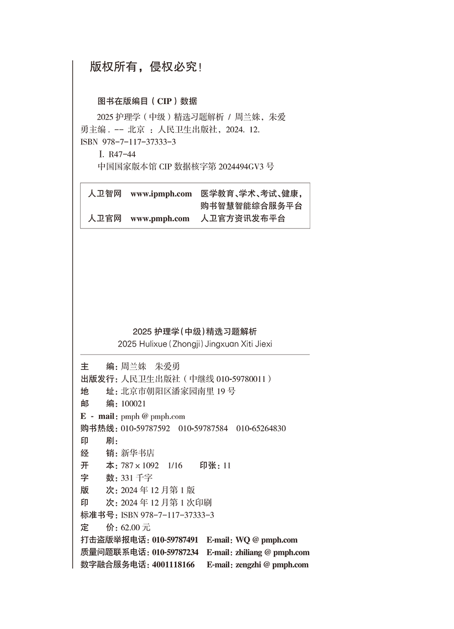2025护理学 中级 精选习题解析 全国卫生专业技术资格考试习题集丛书周兰姝朱爱勇 适用专业护理学妇产科内科儿科外科社区护理中级