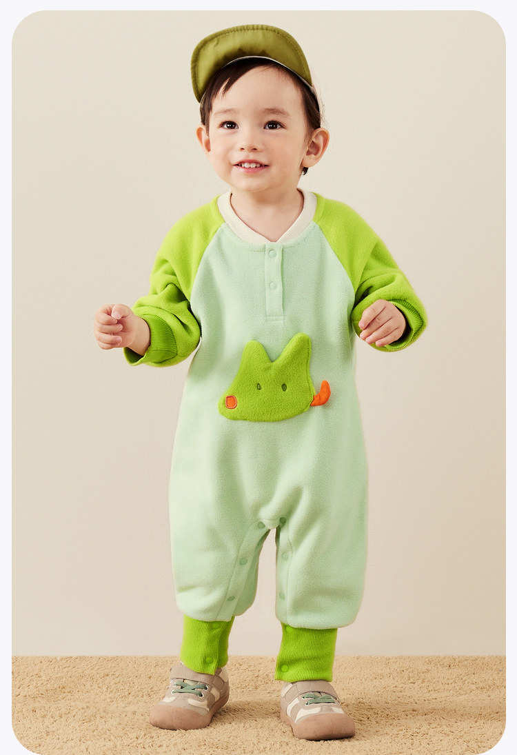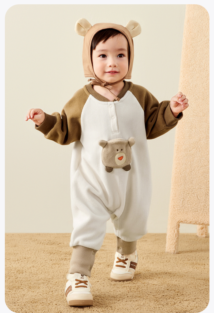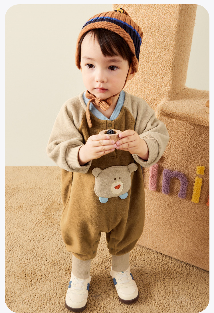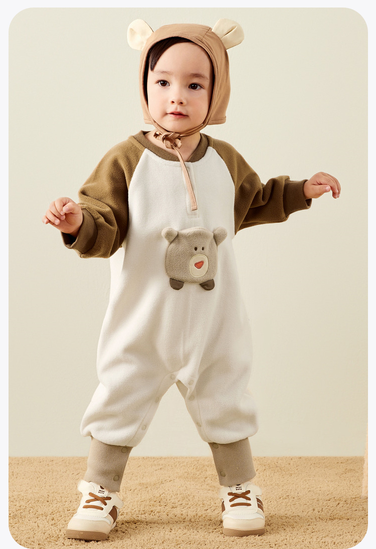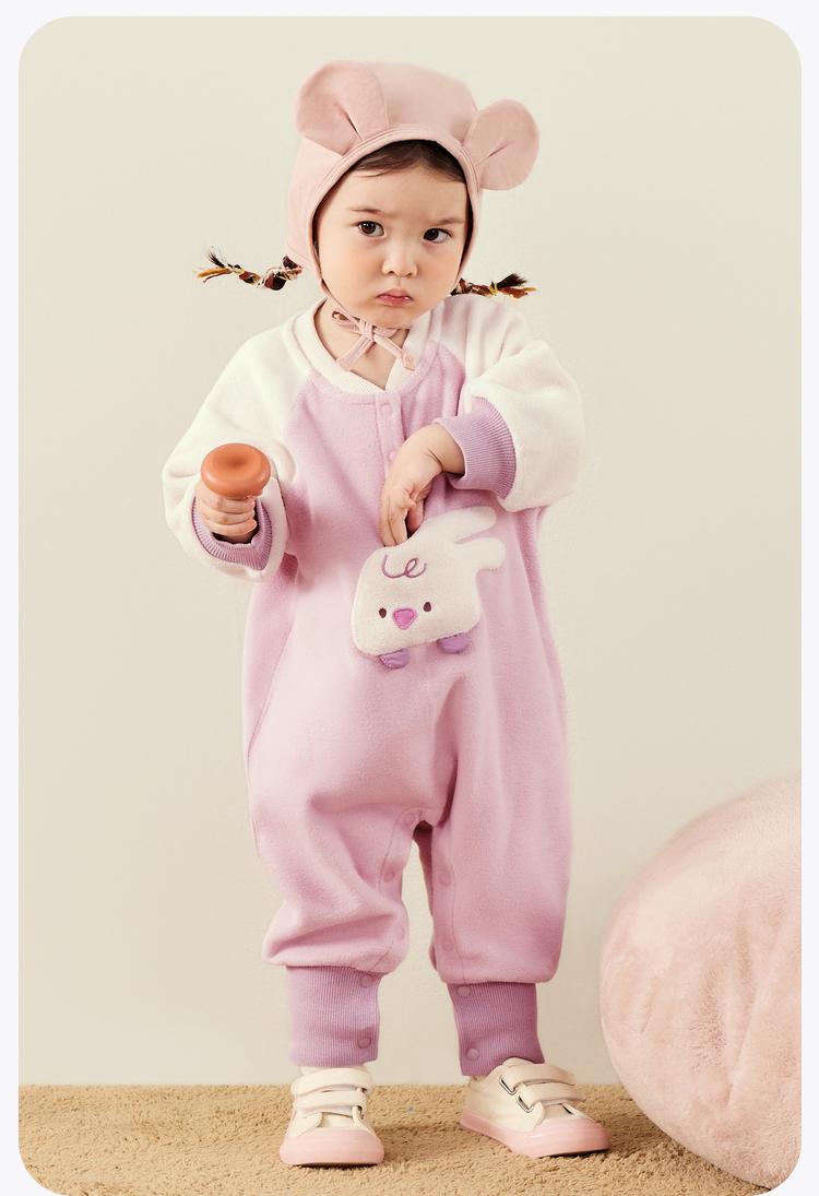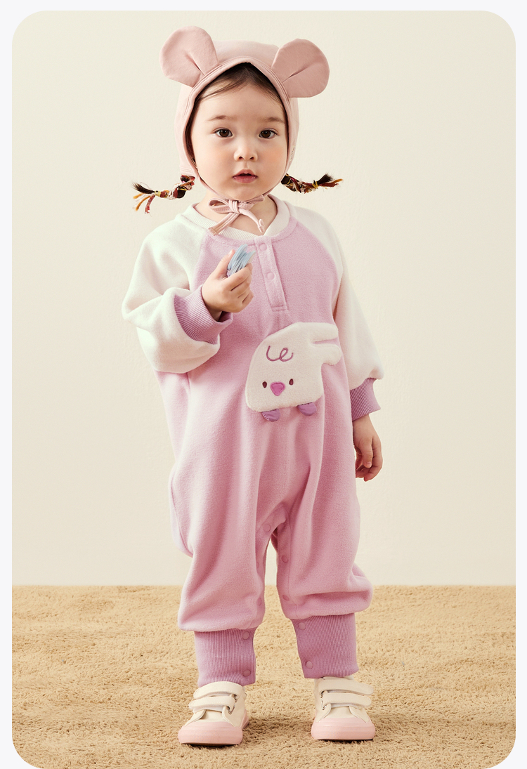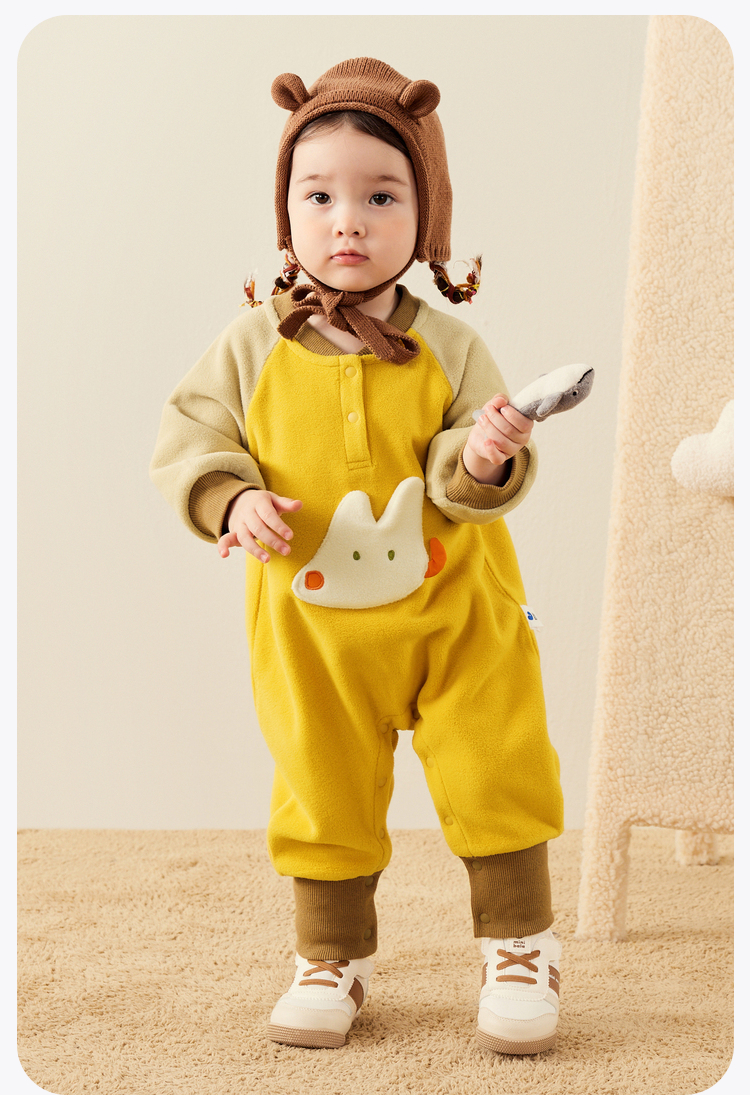 迷你巴拉外出连体衣宝宝男女童秋季撞色萌趣爬服抗静电摇粒绒