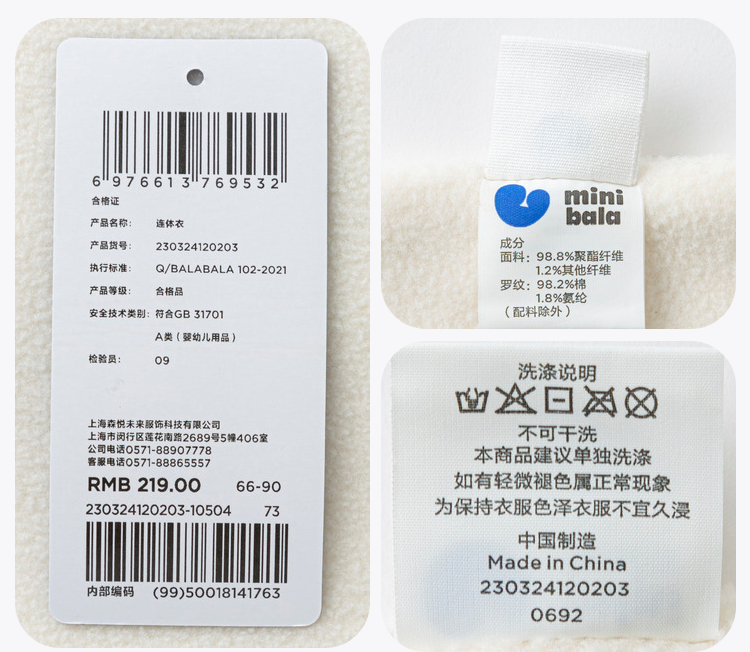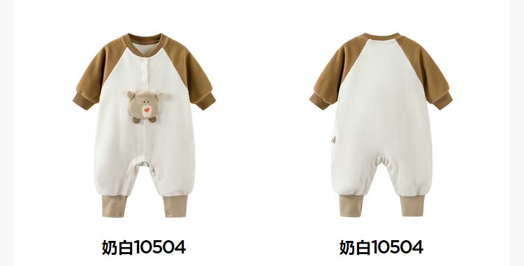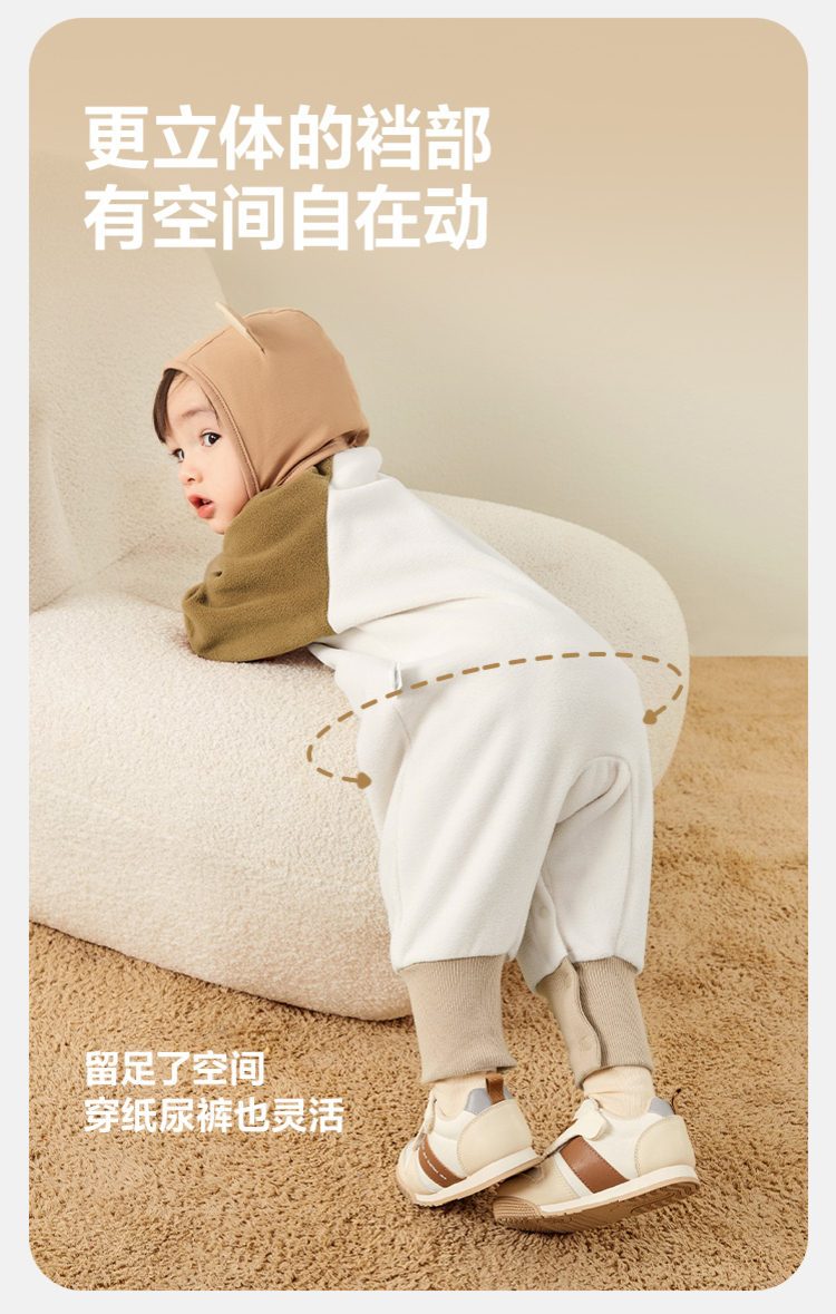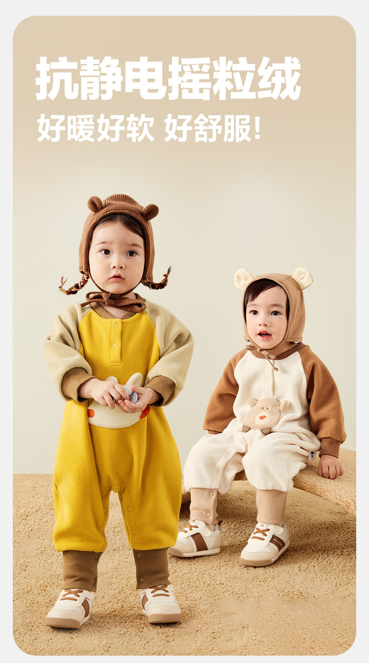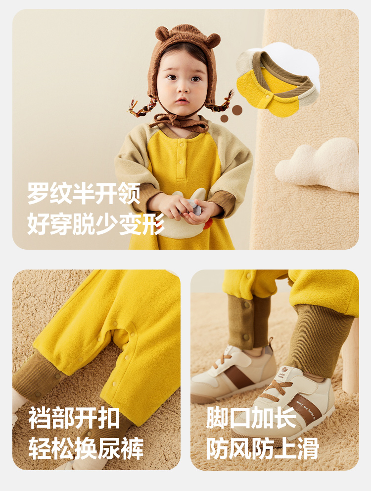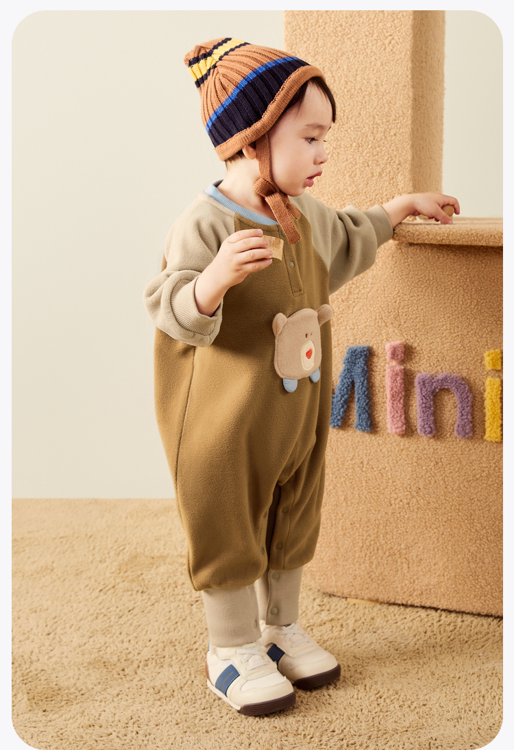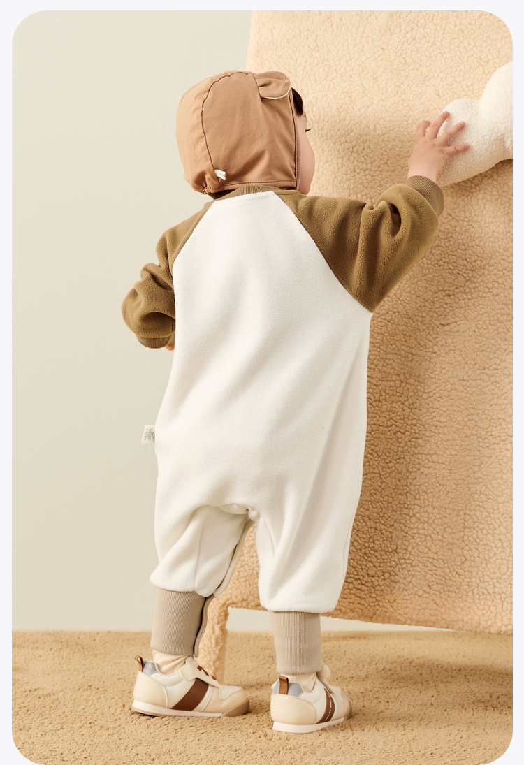 迷你巴拉外出连体衣宝宝男女童秋季撞色萌趣爬服抗静电摇粒绒