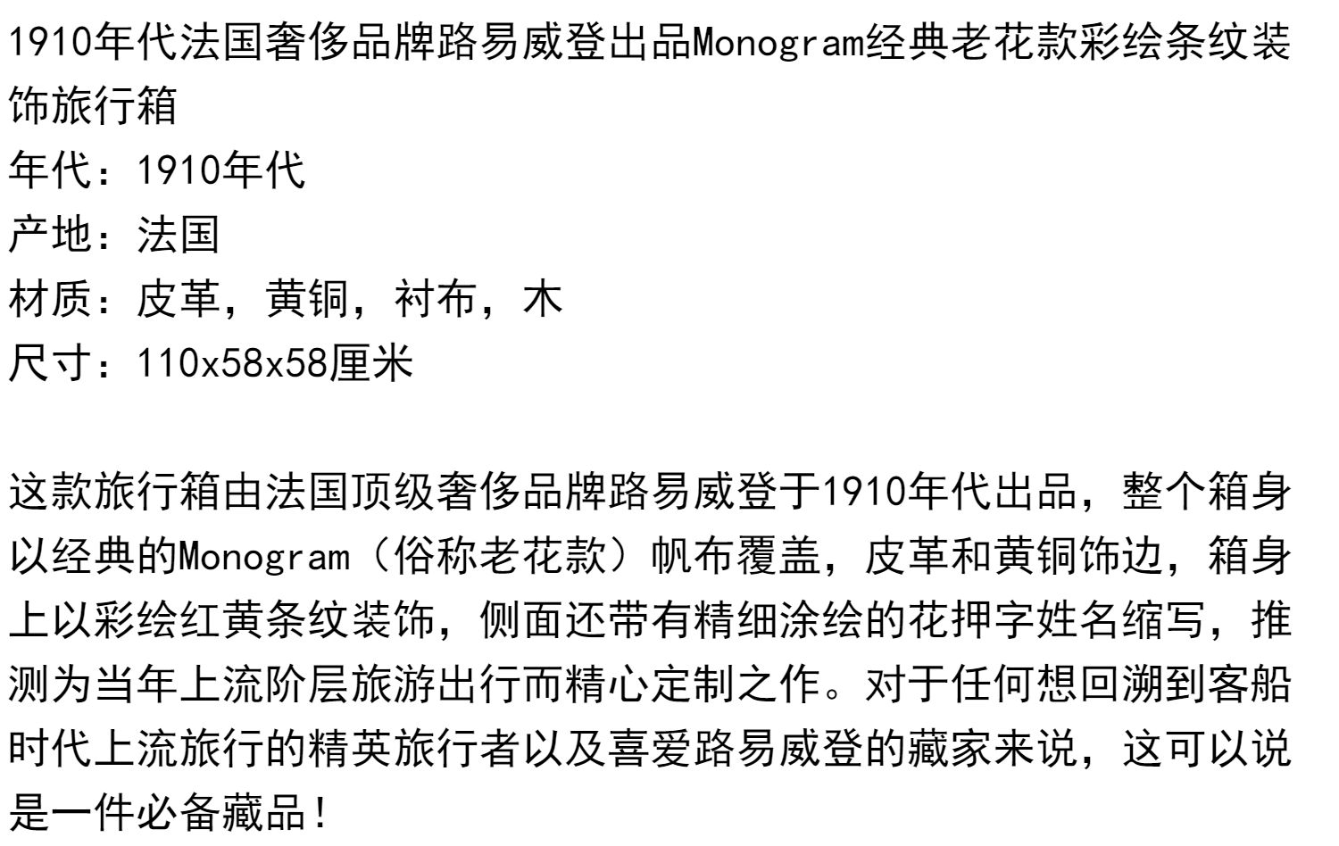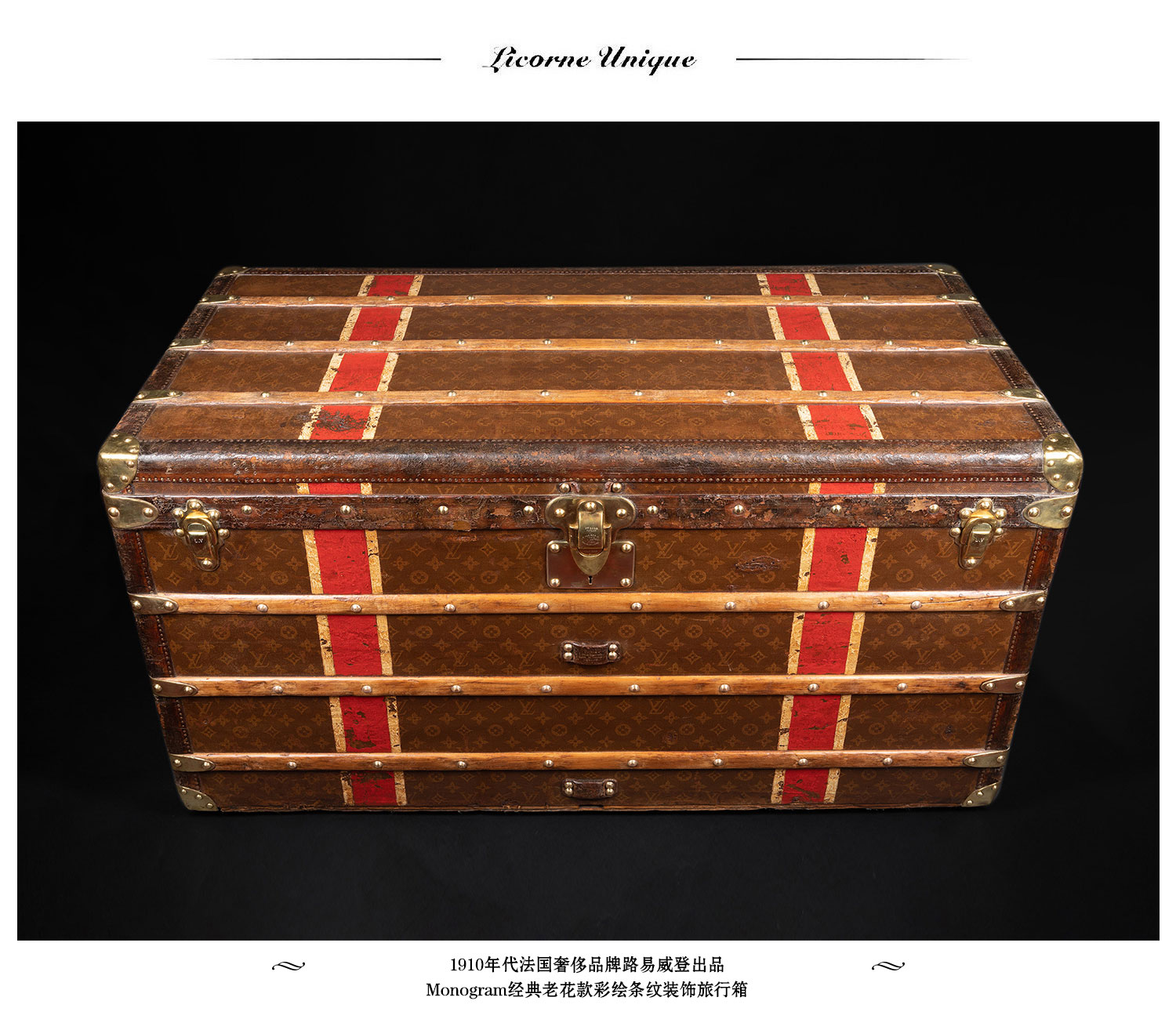 独角鹿西洋古董路易威登Monogram经典老花款彩绘条纹旅行箱行李箱