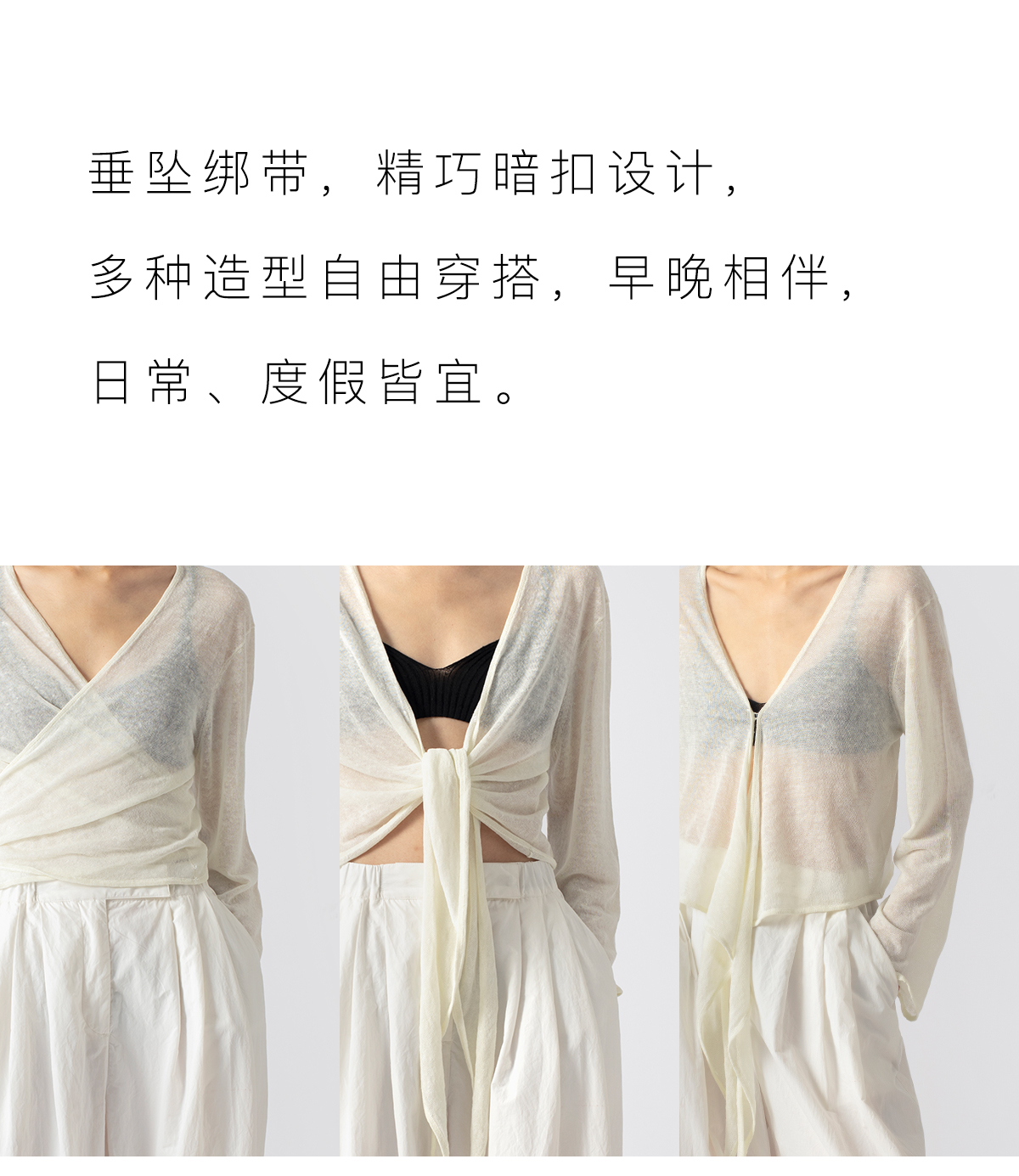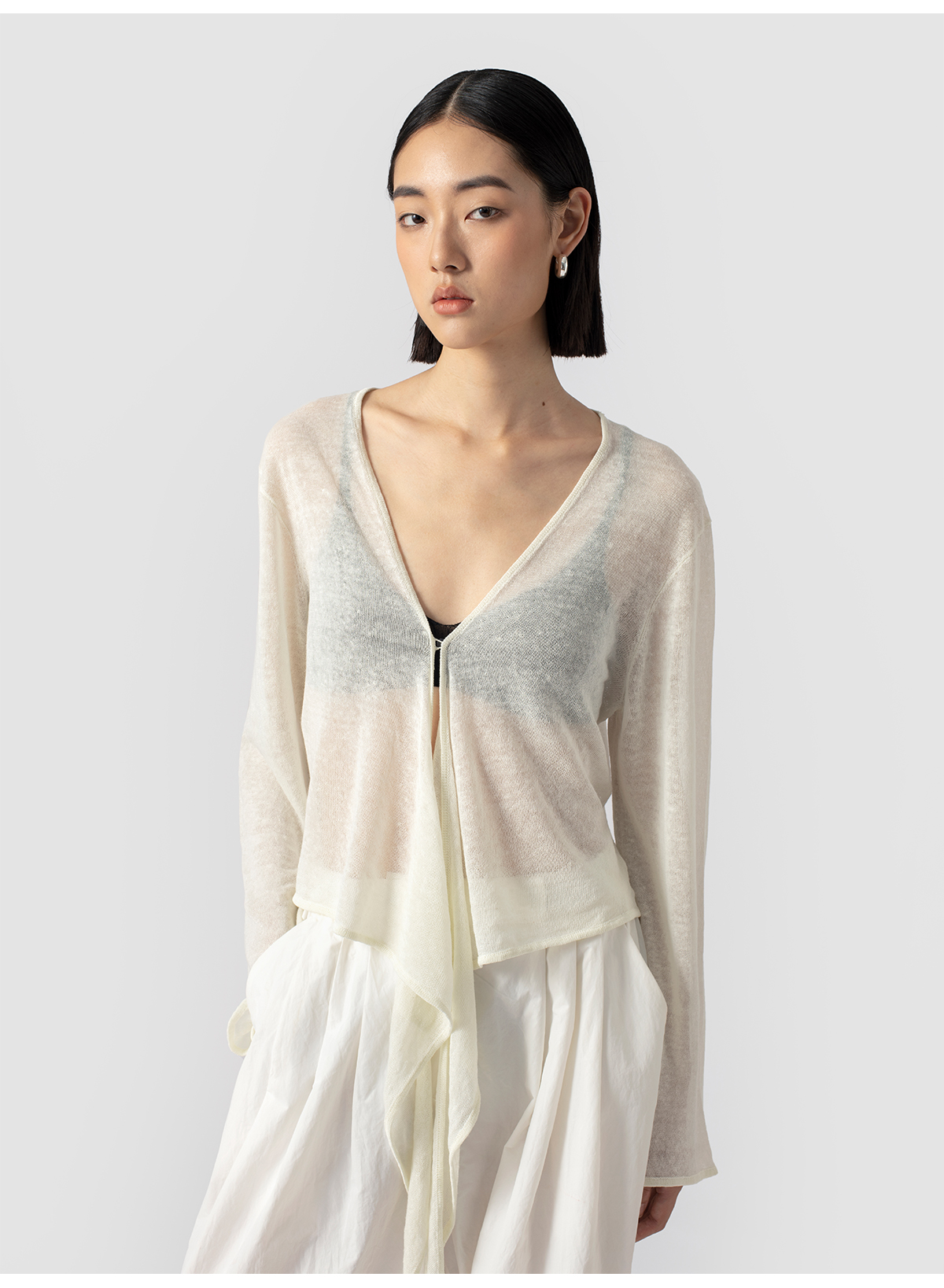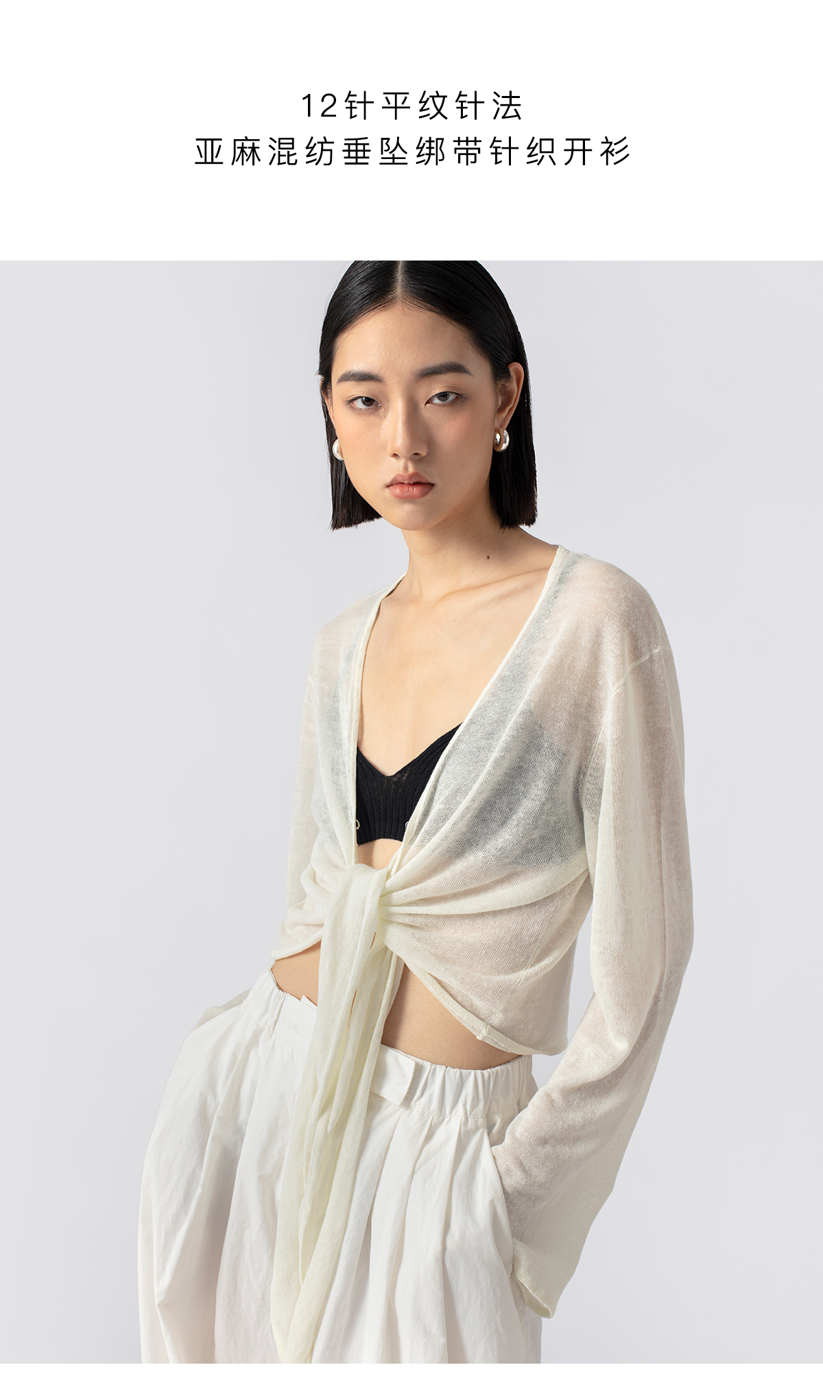 322工房亚麻混纺绑带针织开衫2023春夏款薄款V领长袖空调衫女B095