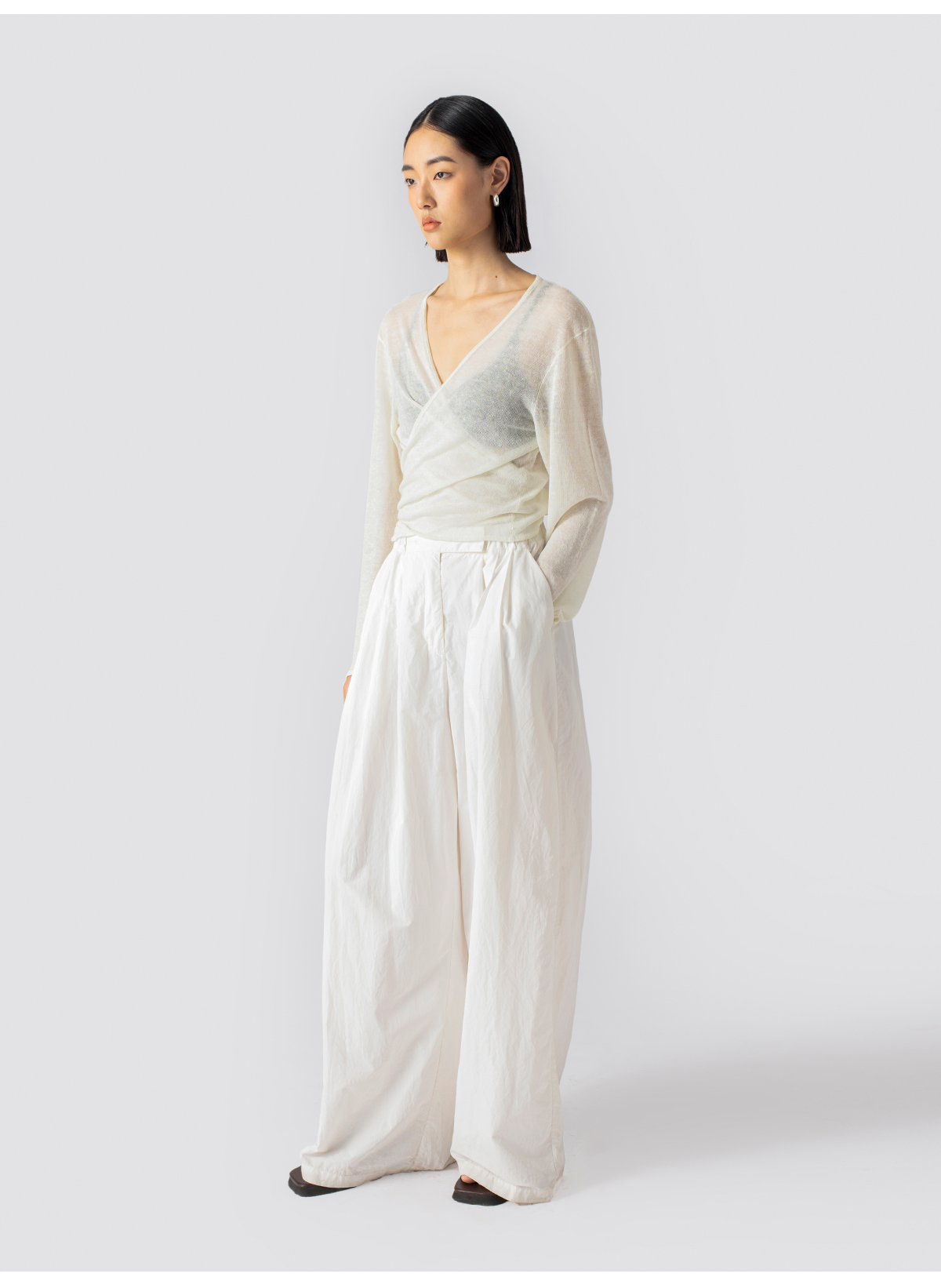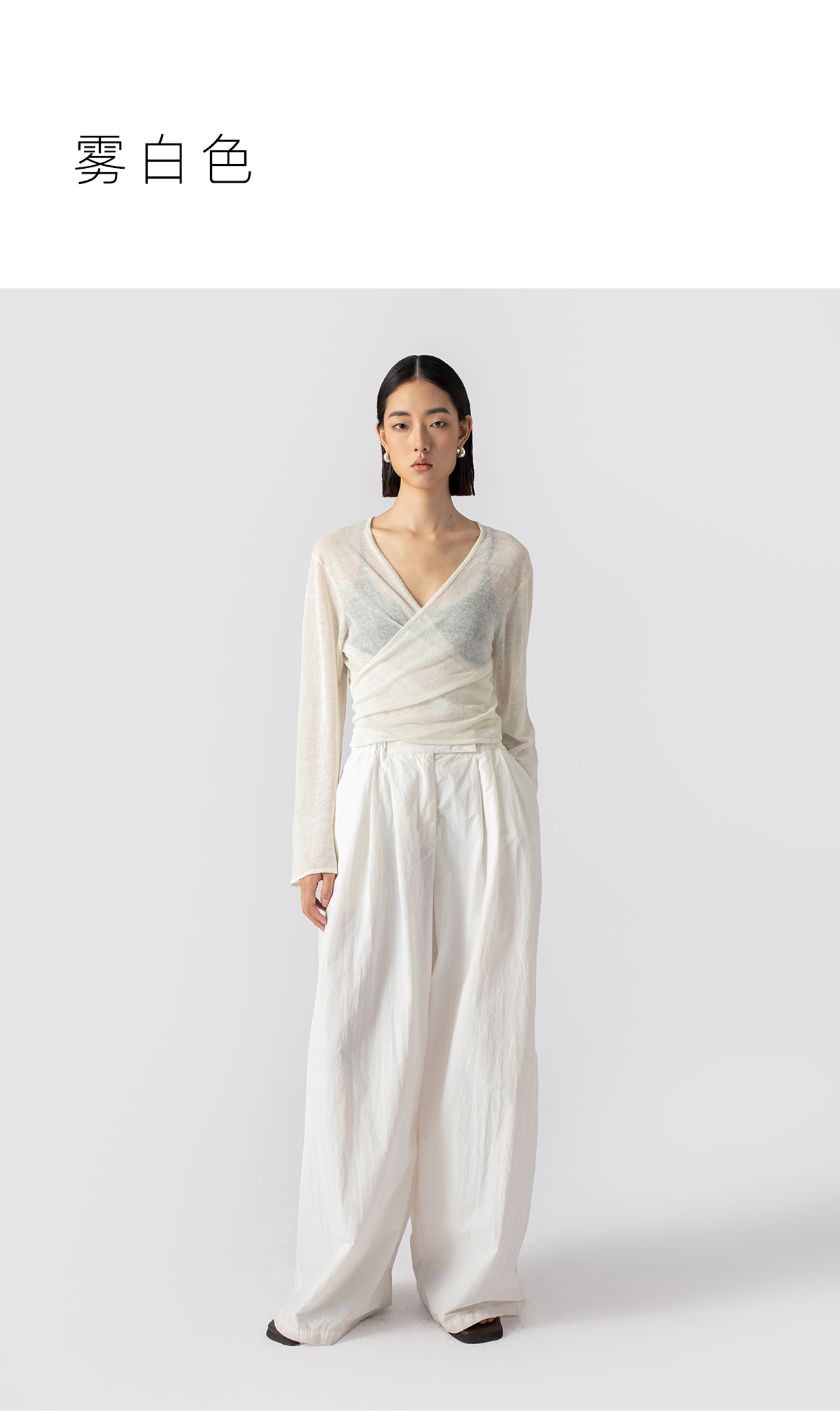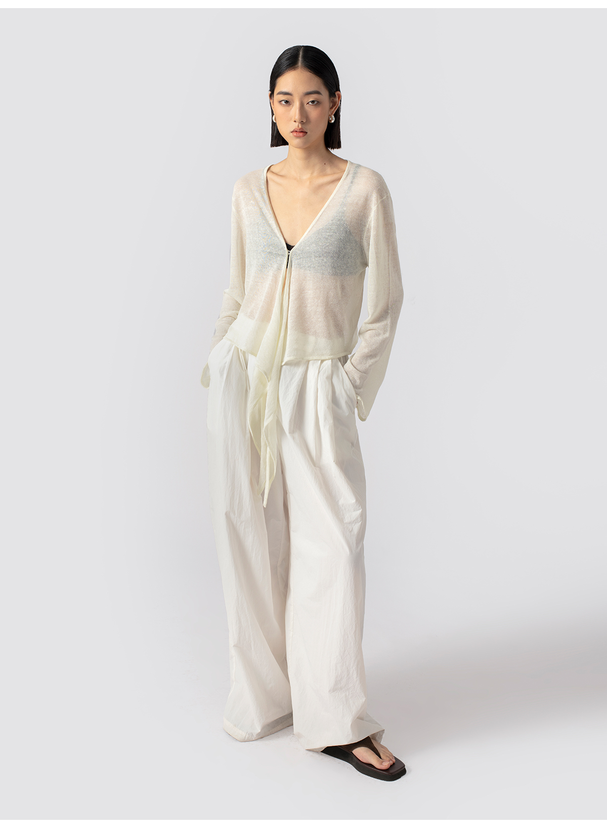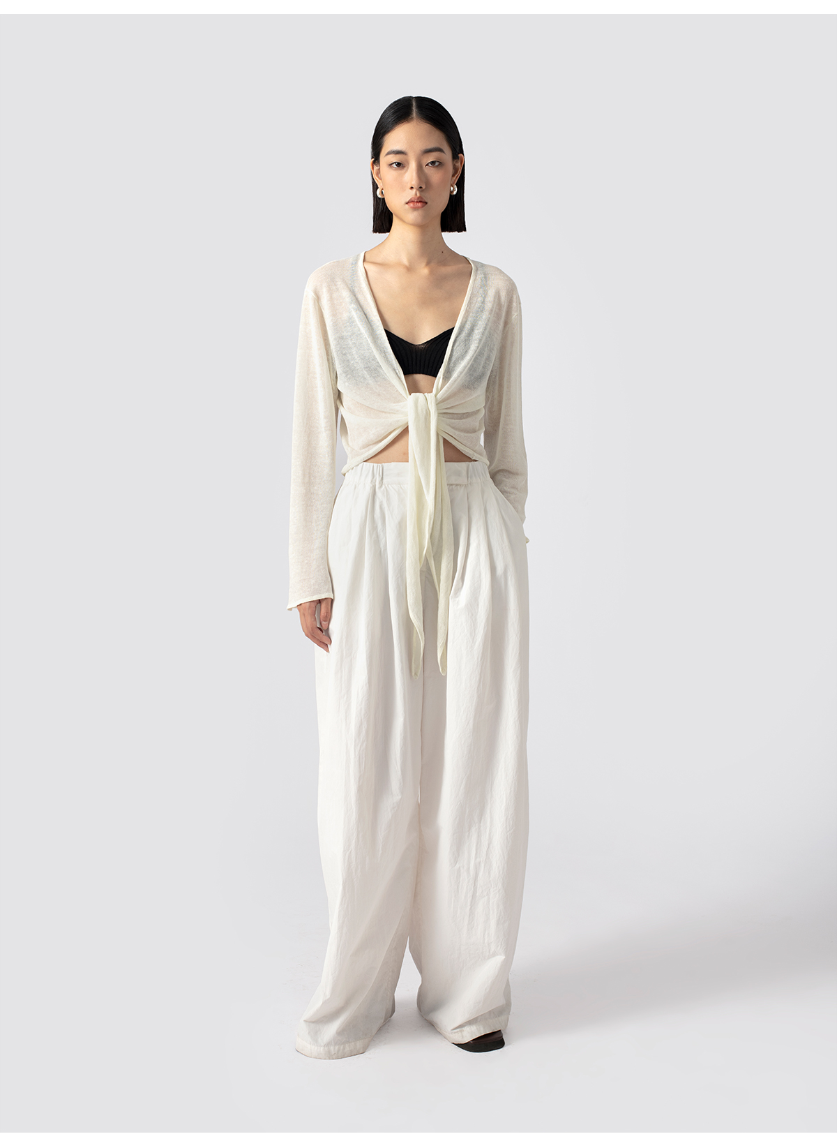 322工房亚麻混纺绑带针织开衫2023春夏款薄款V领长袖空调衫女B095