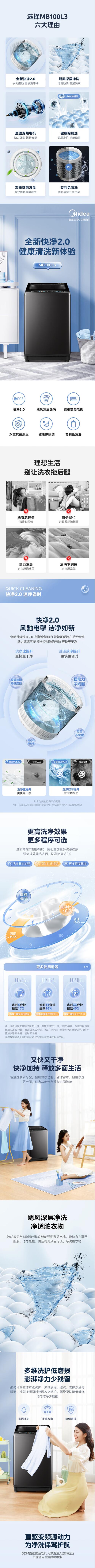 美的(252146)波轮洗衣机全自动 直驱变频 10公斤大容量 免清洗不脏桶 升级健康除螨洗 MB100L3
