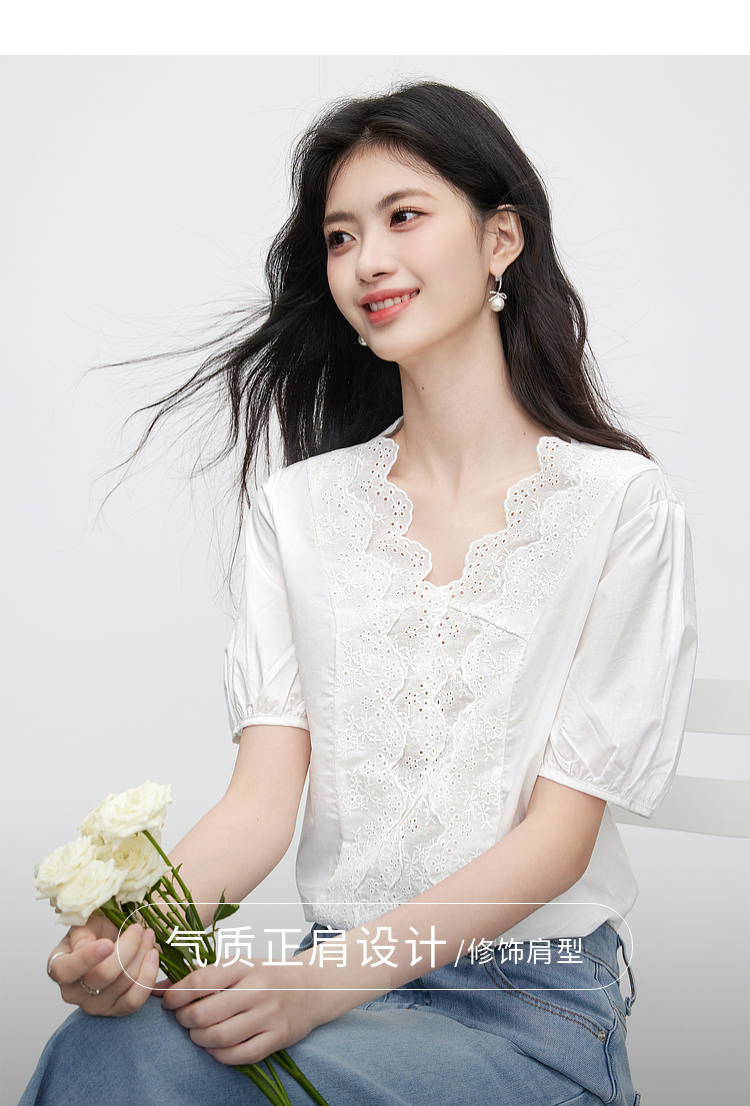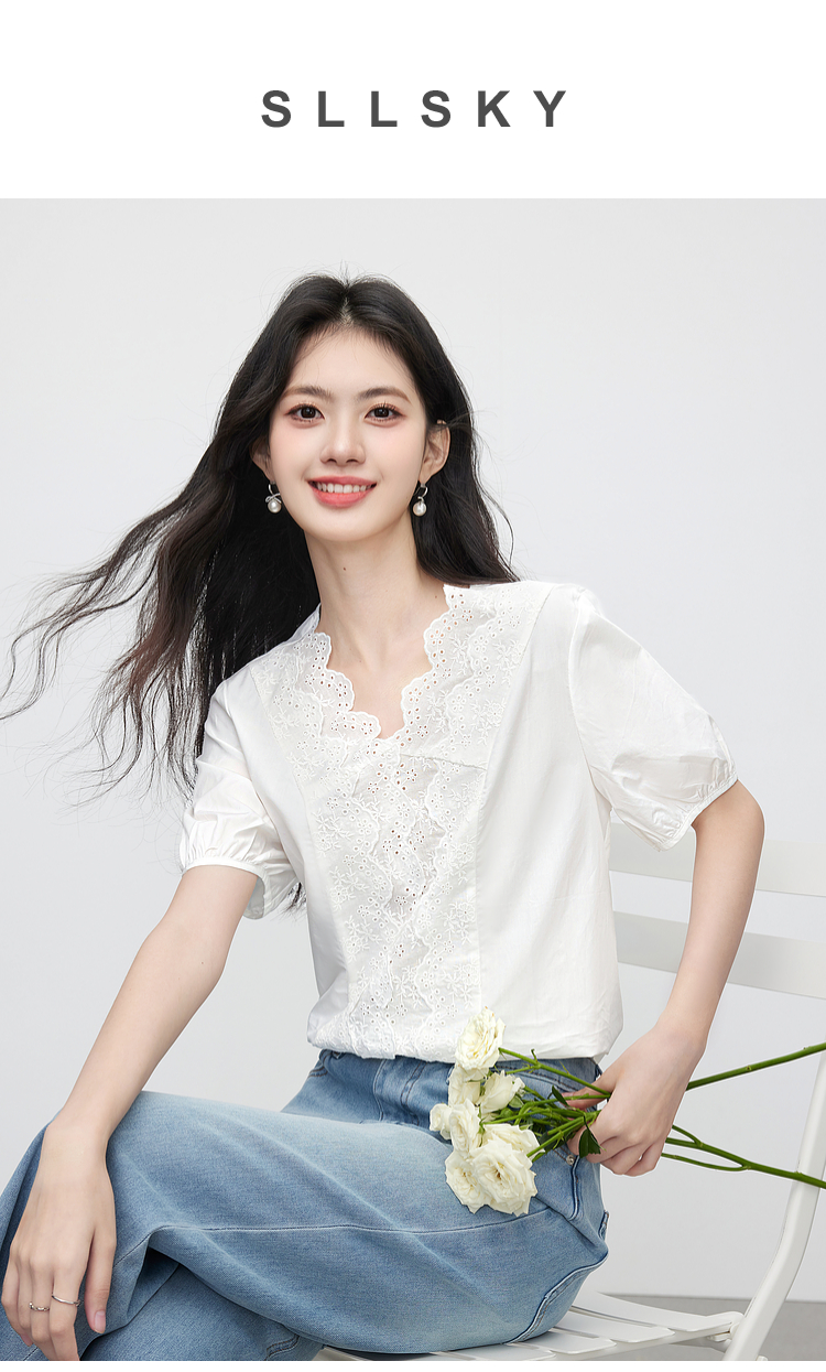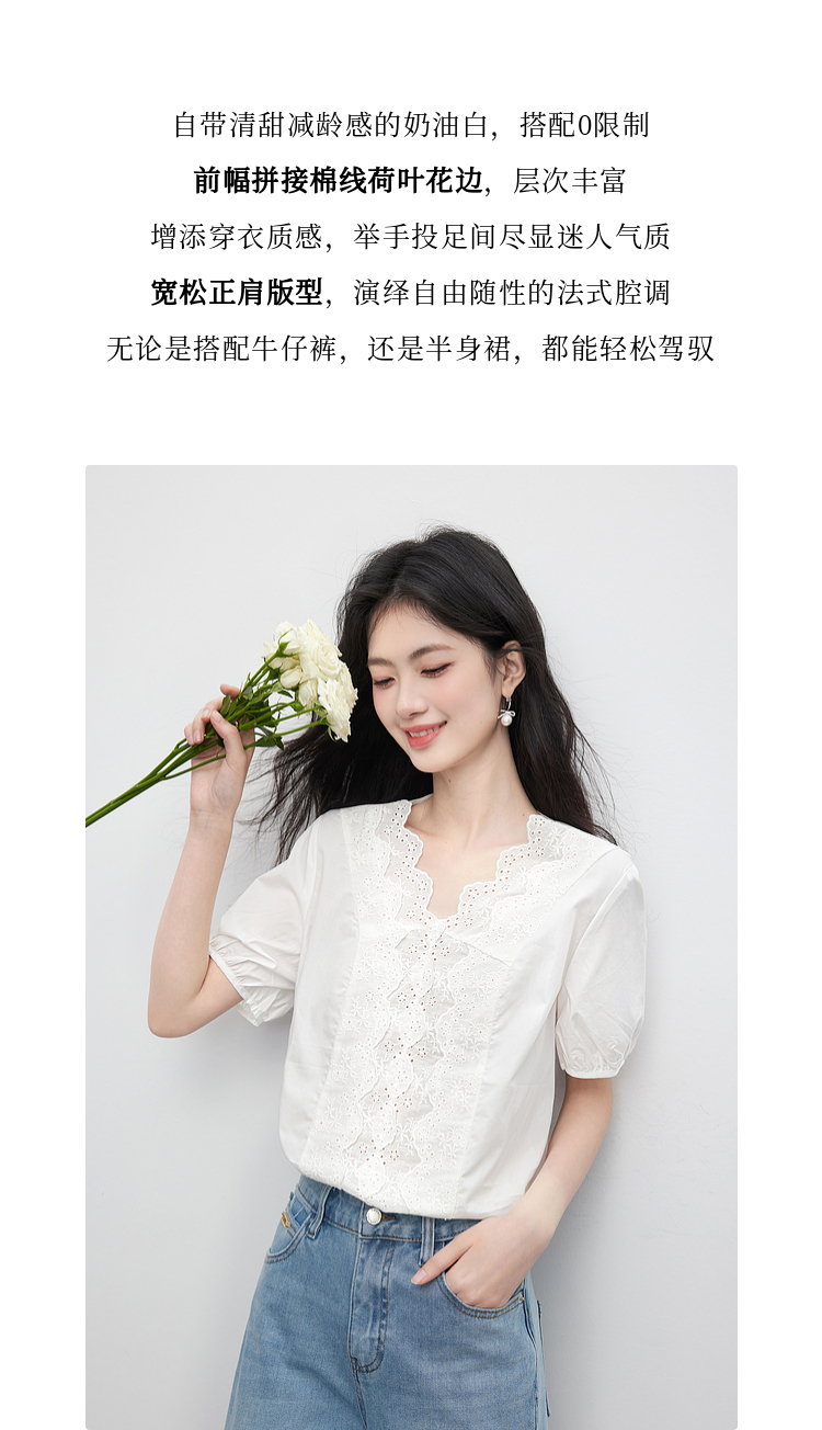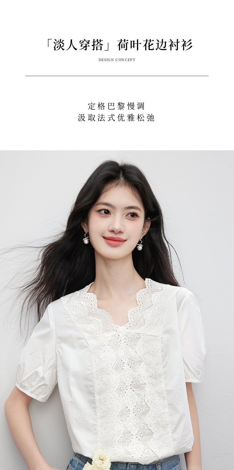 熙世界法式泡泡袖天丝白衬衫女士夏季荷叶花边独特超好看小衫上衣