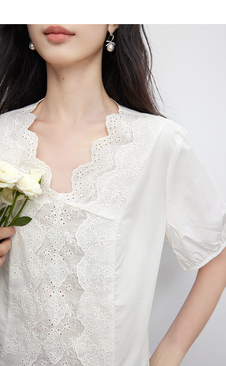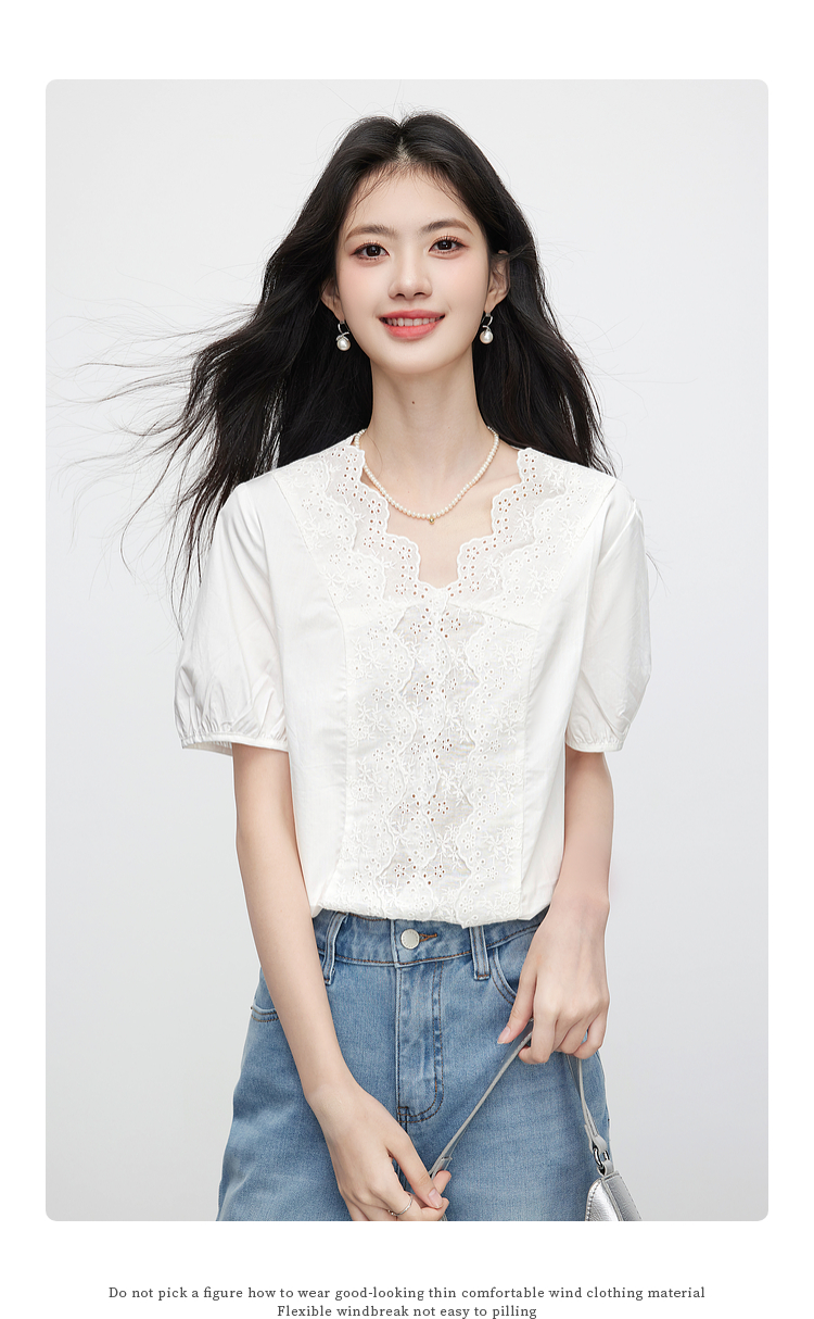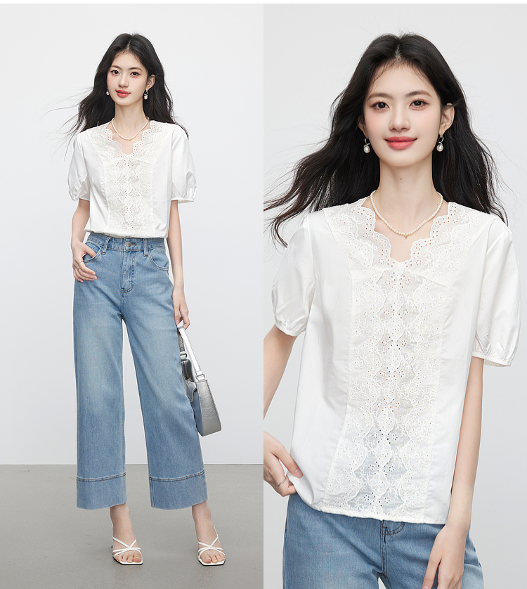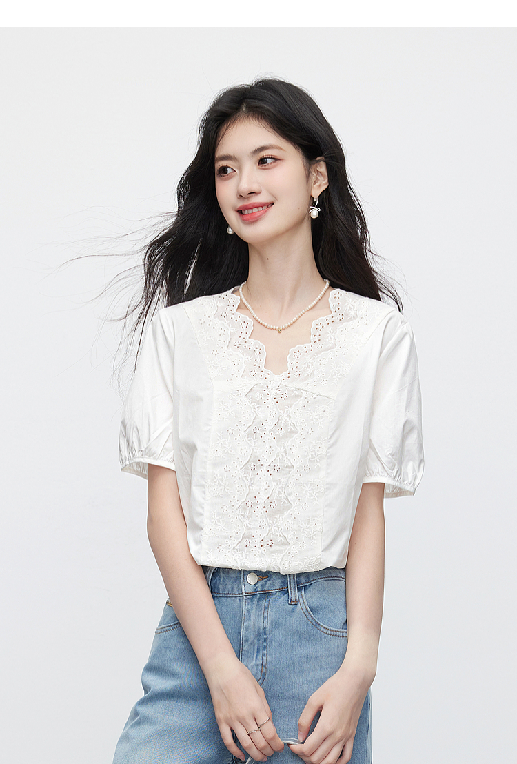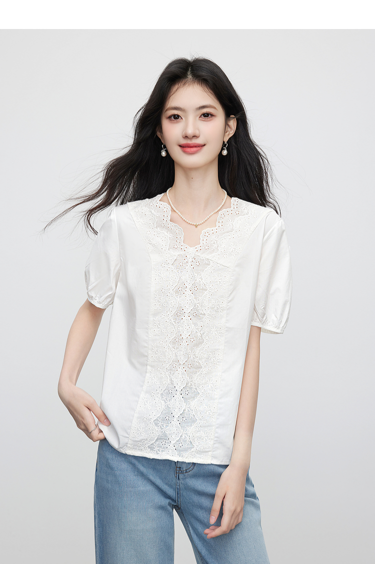 熙世界法式泡泡袖天丝白衬衫女士夏季荷叶花边独特超好看小衫上衣