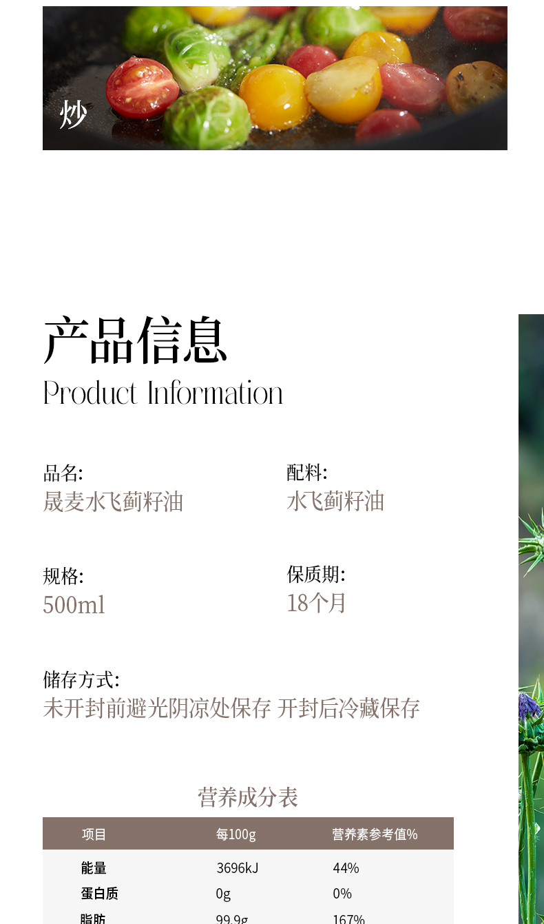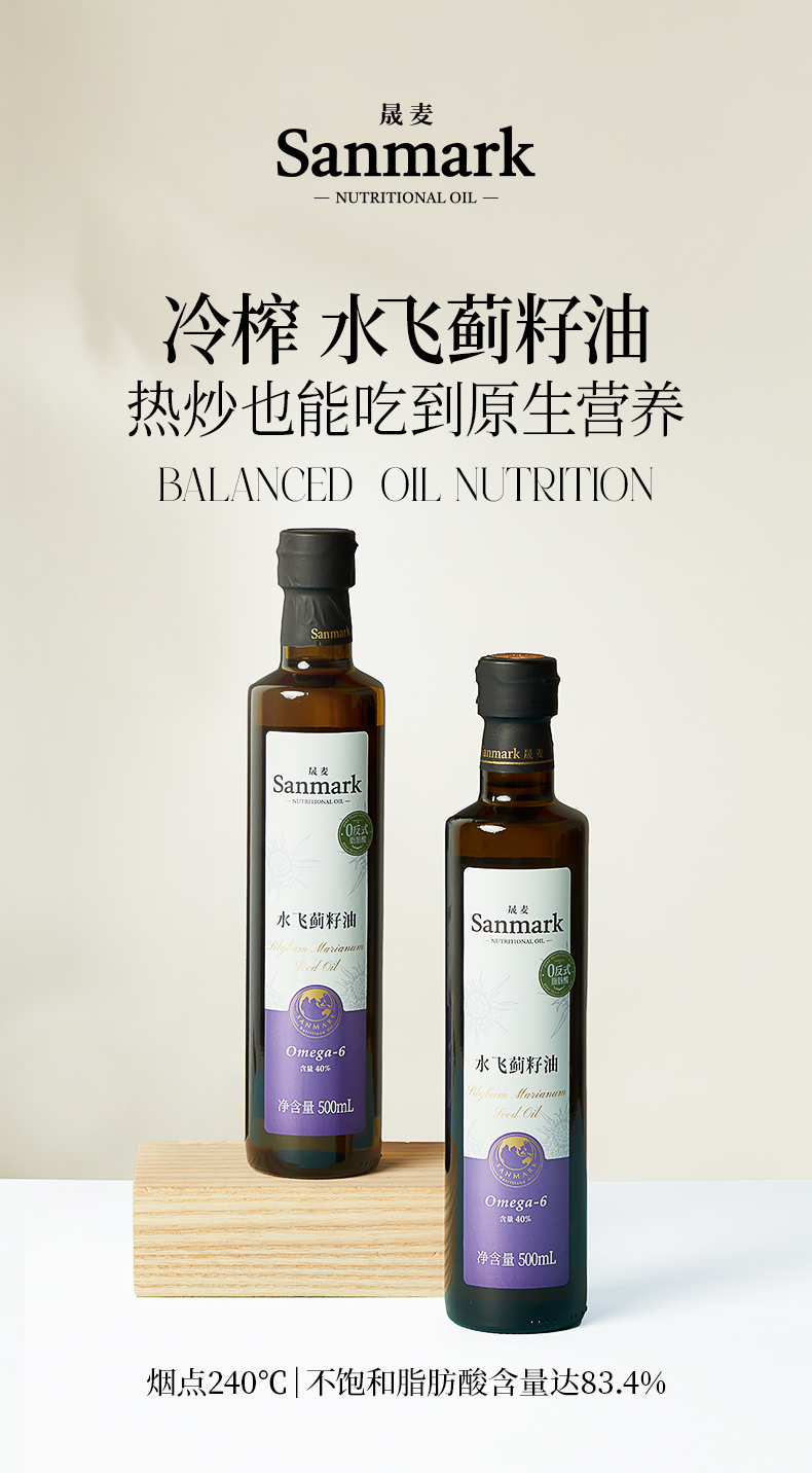 晟麦水飞蓟籽油500ml 低温冷榨初榨奶蓟籽油食用油