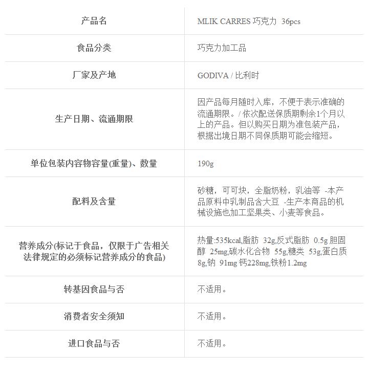 MLIK CARRES 巧克力 36pcsJPY带授权招加盟代理