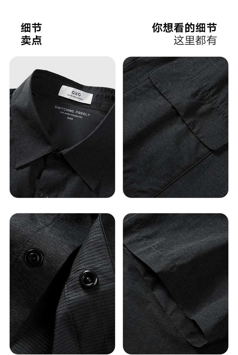 GXG男装 户外透气工装衬衫休闲男短袖衬衣25年夏季热卖 G25X232038