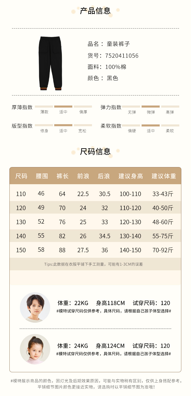 | 参考身高: 110/50 120/53 130/53 140/55 150/58 | 适用季节: 冬季 |