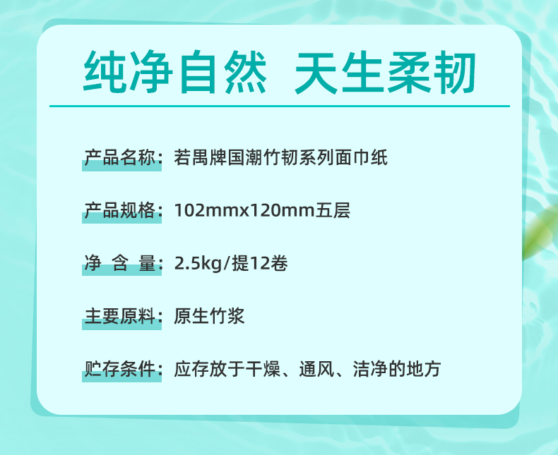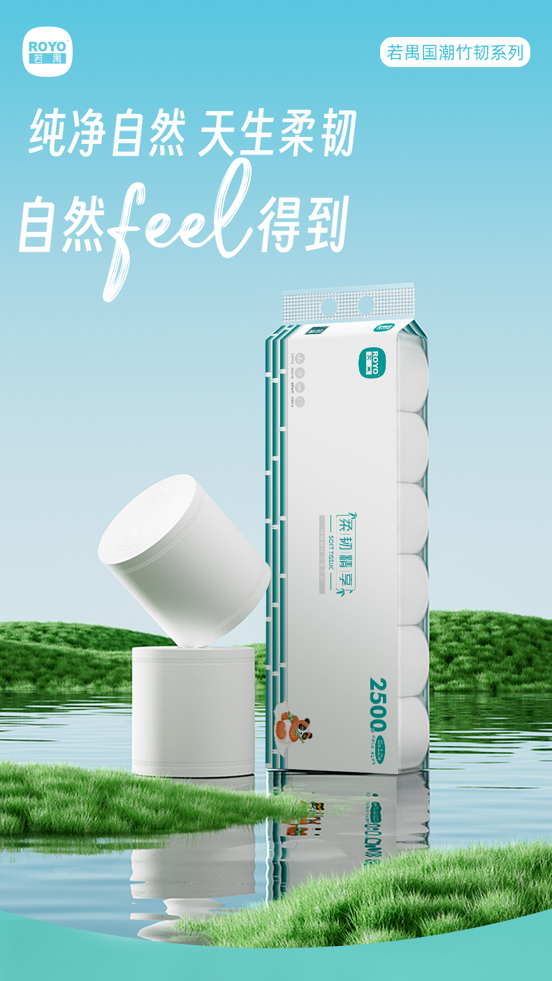 若禺无芯卷纸国潮竹韧系列5层加厚2500克/卷12卷/提到手6提原生竹浆柔软亲肤RJ1407