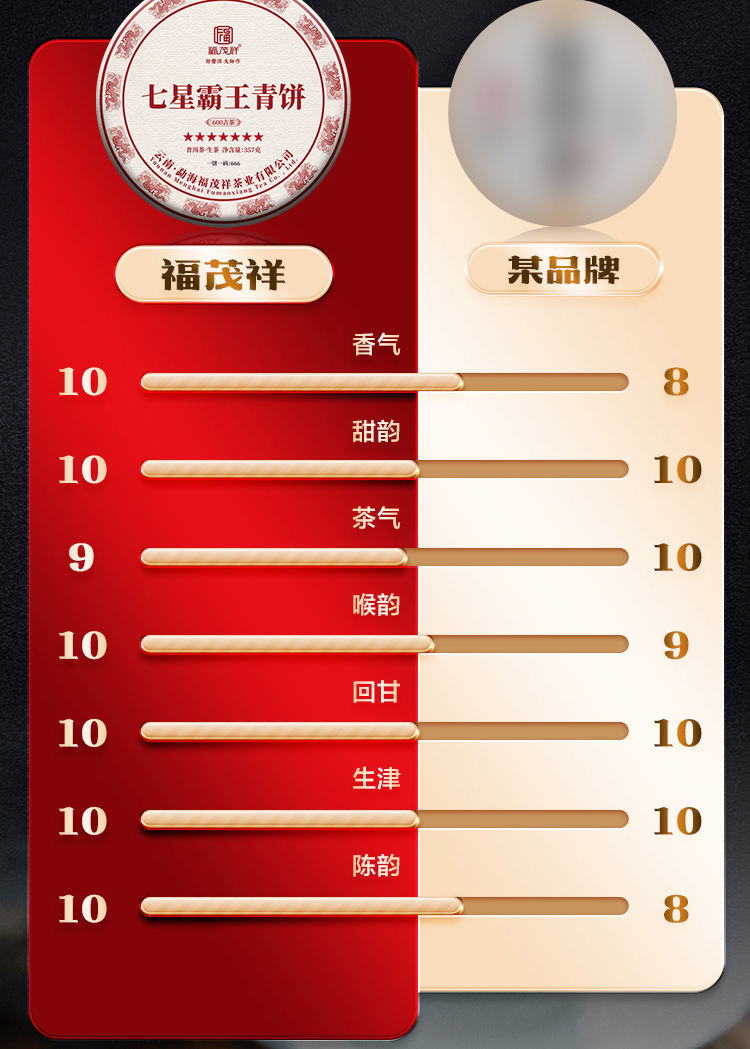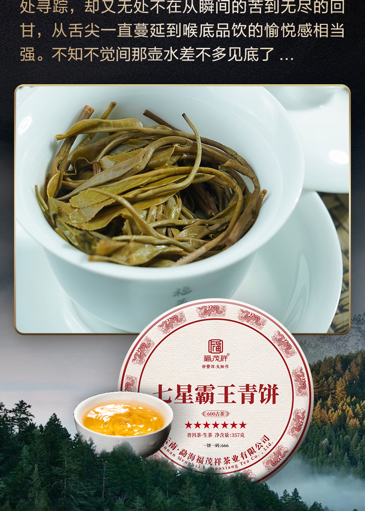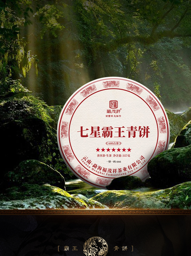 【七星霸王青饼】PK市面霸王青饼 茶中霸王 名副其实!2018+2020年勐海茶区古600年生茶357g*5饼