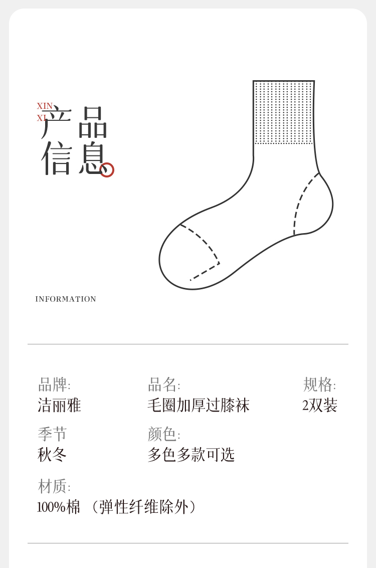 洁丽雅加厚保暖大腿过膝防滑长筒袜毛圈秋冬款长长袜高筒加绒女袜