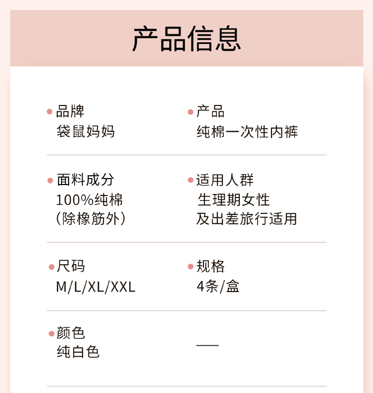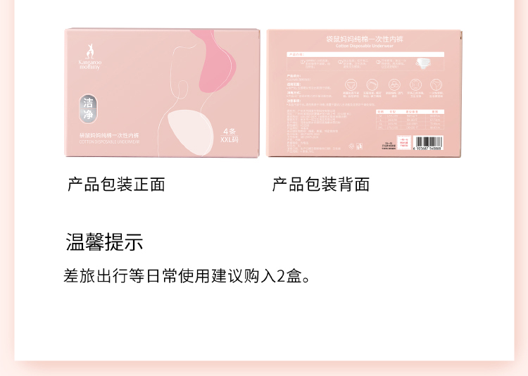 【一次性内裤】经期可用 独立包装方便卫生 差旅必备 纯绵一次性内裤2盒装(4条/盒)