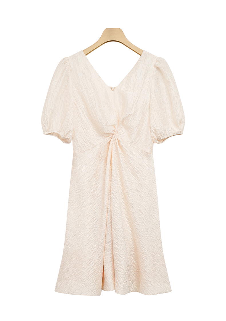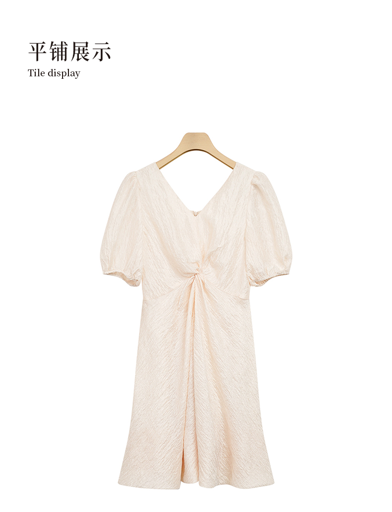 NUTS女气质高级感连衣裙收腰V领夏法式连衣裙v领长裙324101405B
