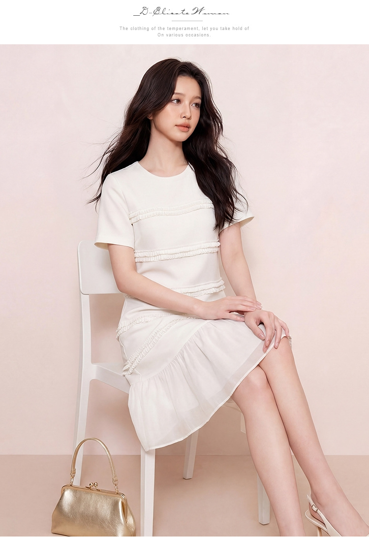 奢姿大码女装2026夏季荷叶边拼接圆领连衣裙胖妹妹简约风时尚裙子9962854509