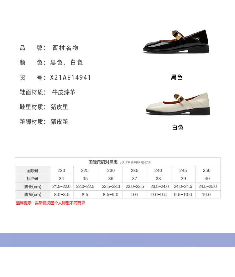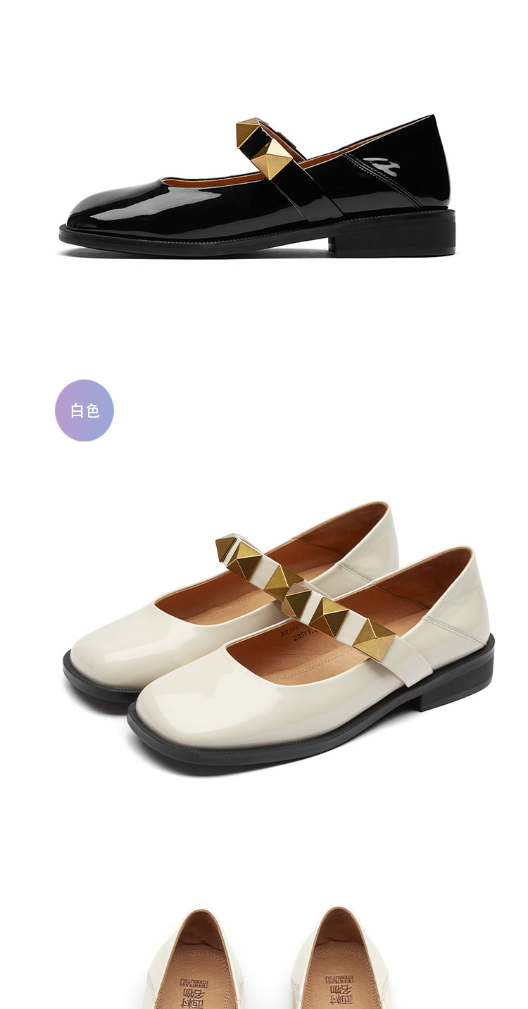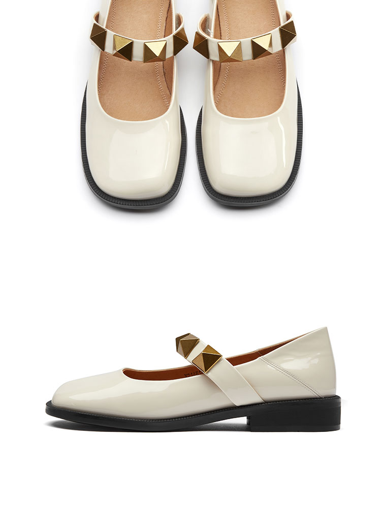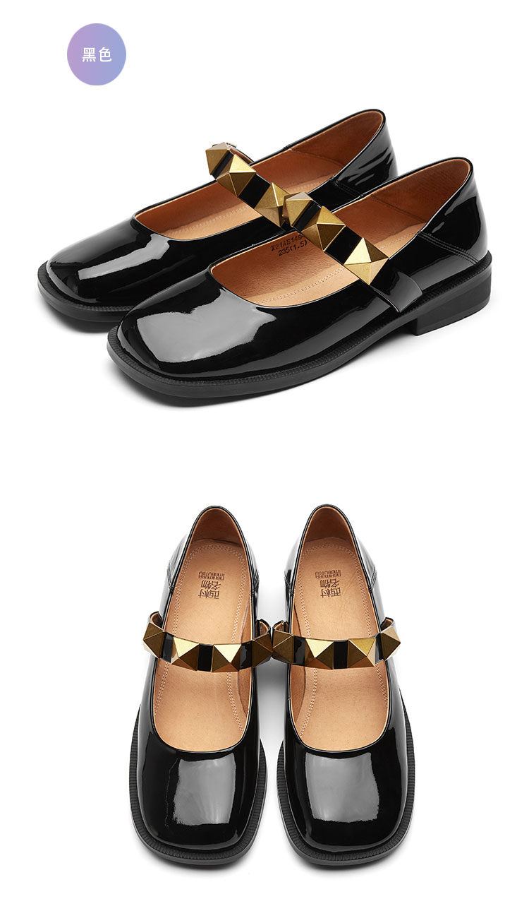 21年专柜同款玛丽珍漆皮铆钉平底女单鞋舒适休闲鞋X21AE14941