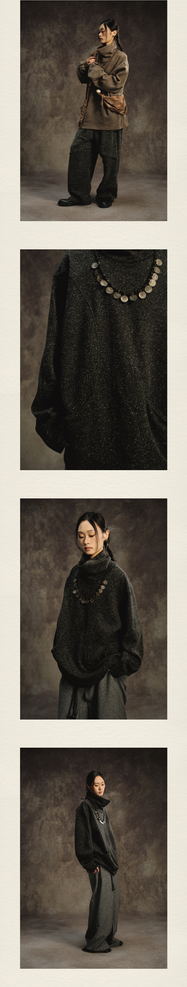 共和GongheRepub/GH24019/ 花点纱肌理感高领新中式长袖上衣