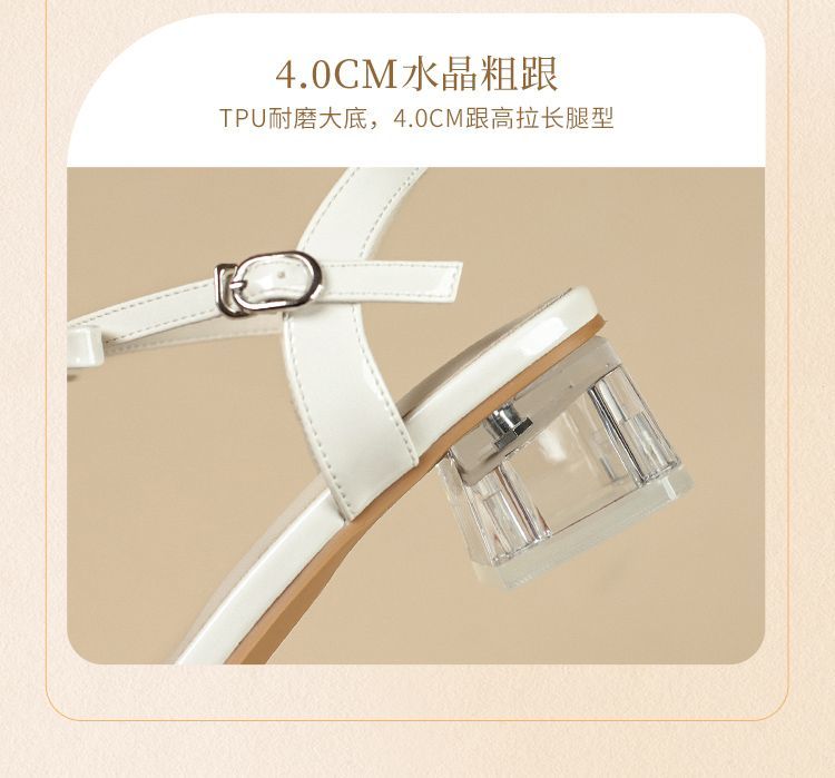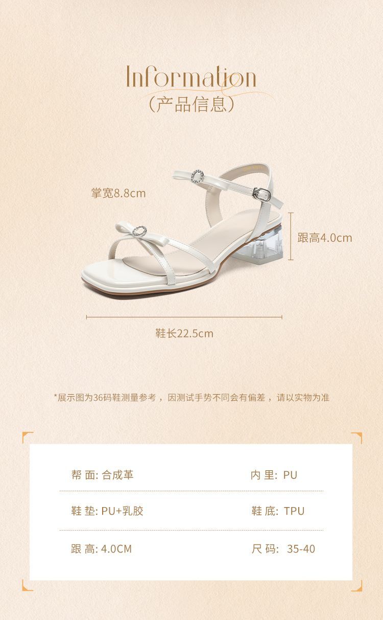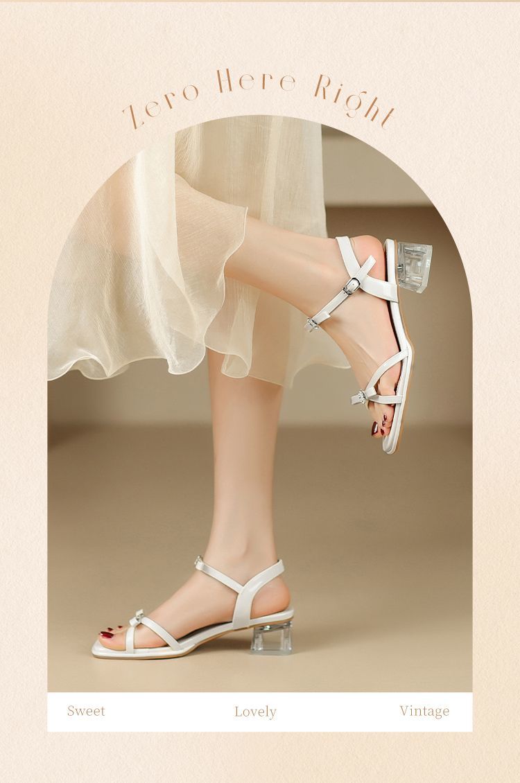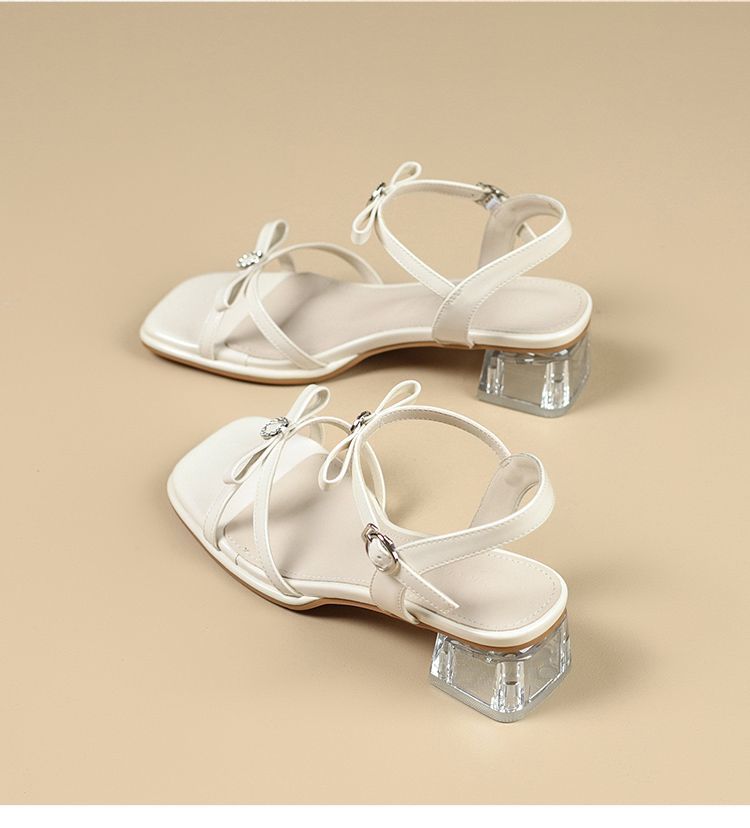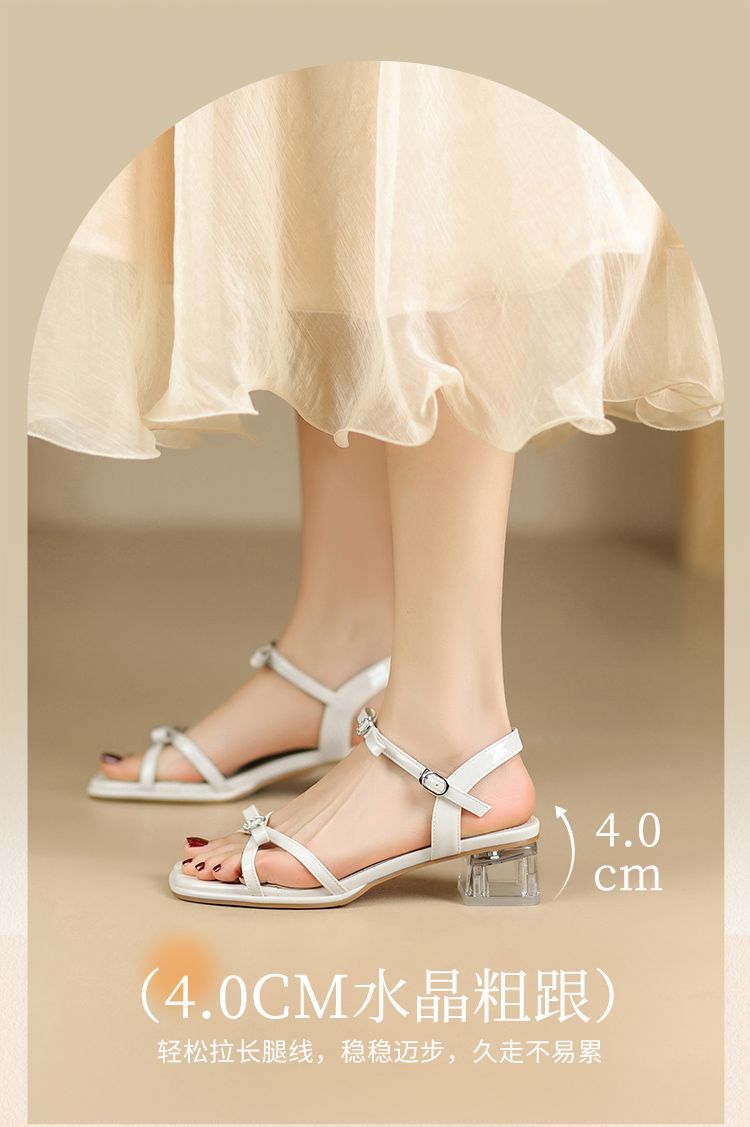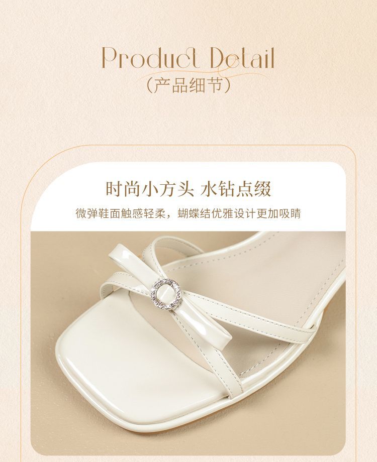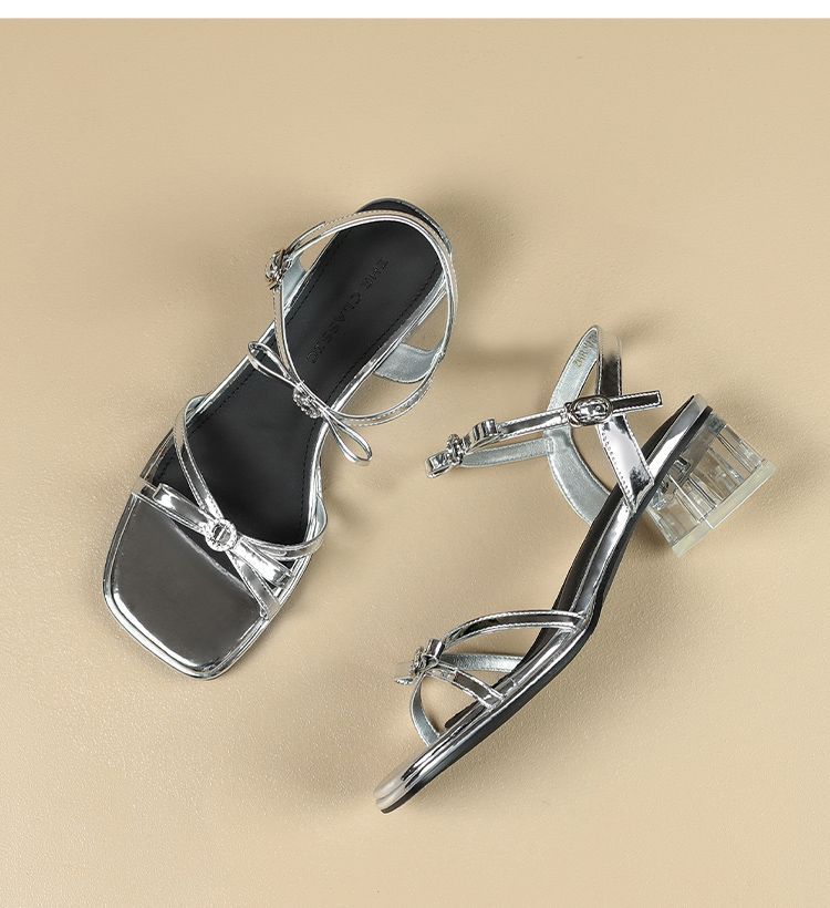 ZHR则则高级感银色蝴蝶结凉鞋法式一字带凉鞋款水晶粗跟凉鞋仙女
