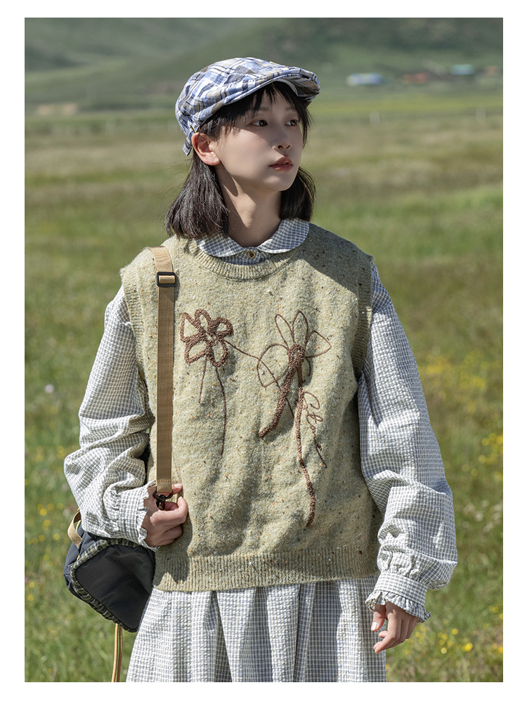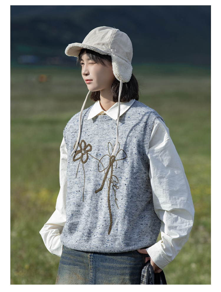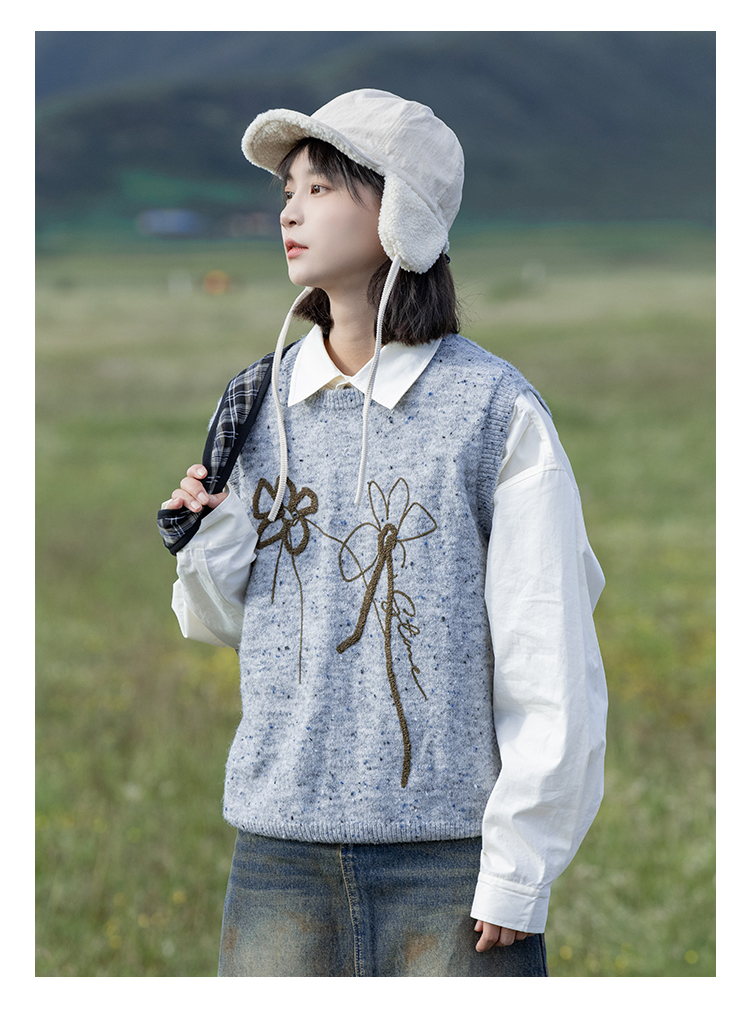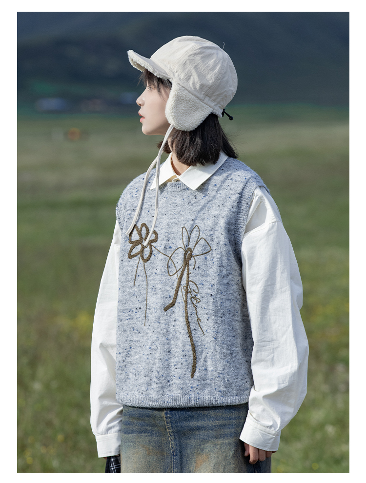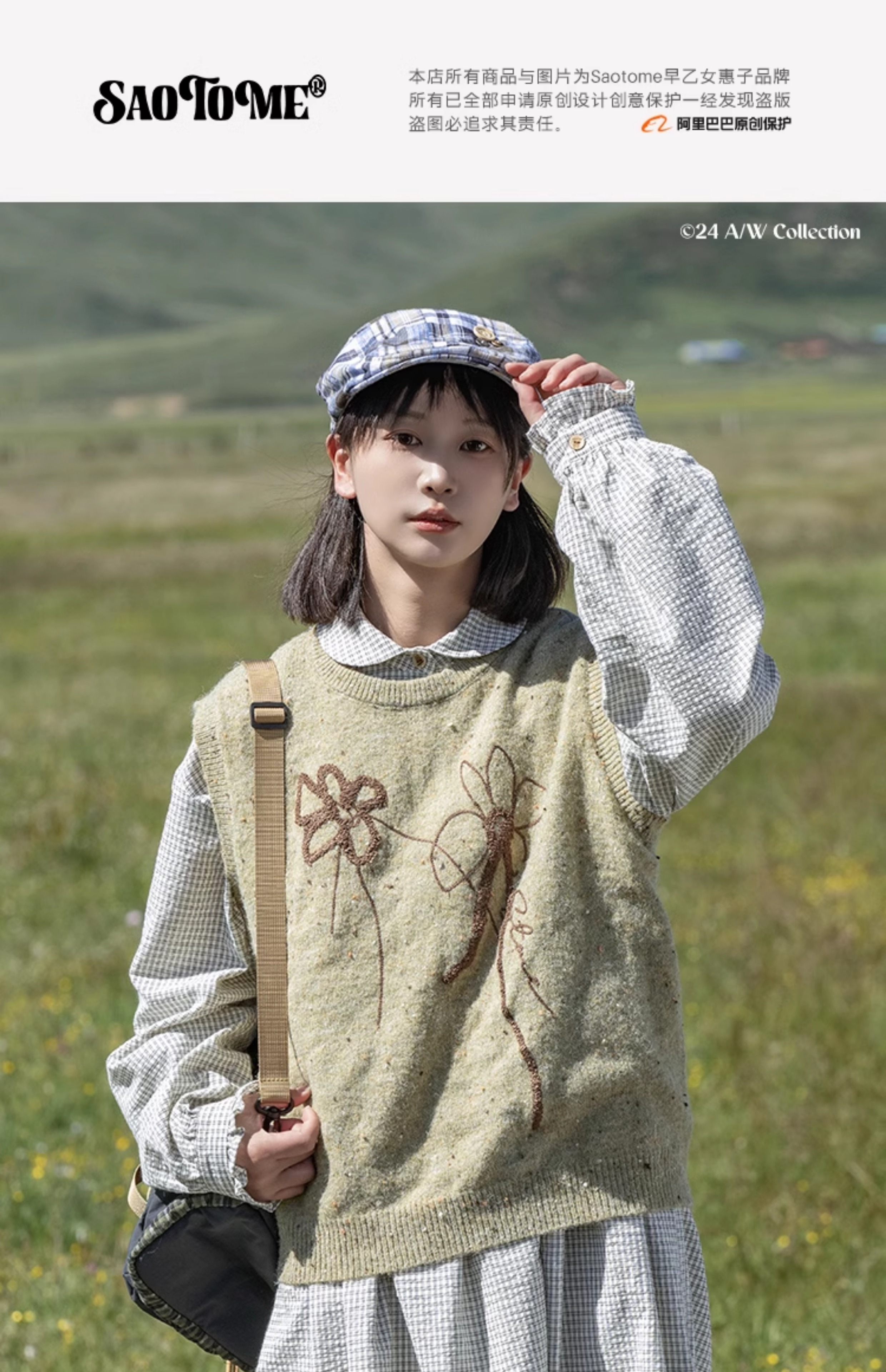 早乙女惠子saotome/STMMY243233/彩点刺绣鲜花毛衣背心