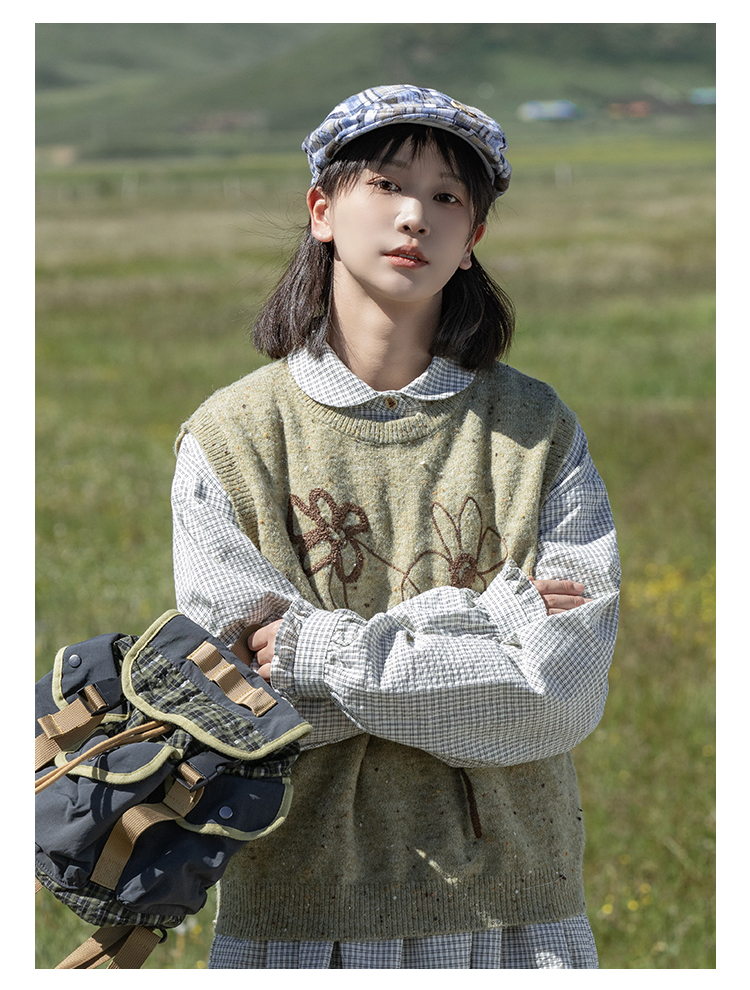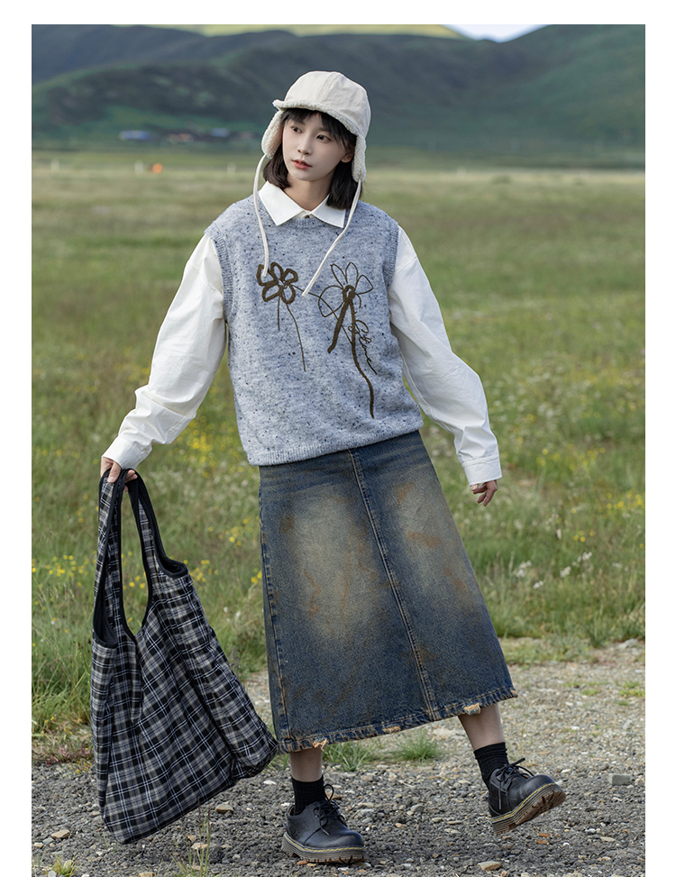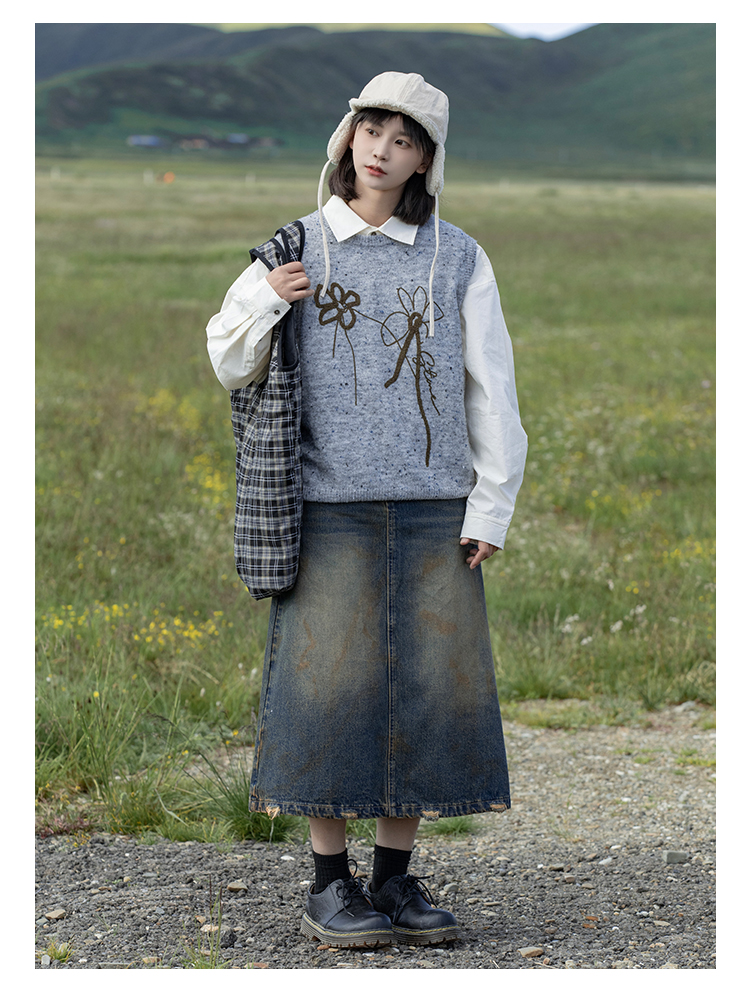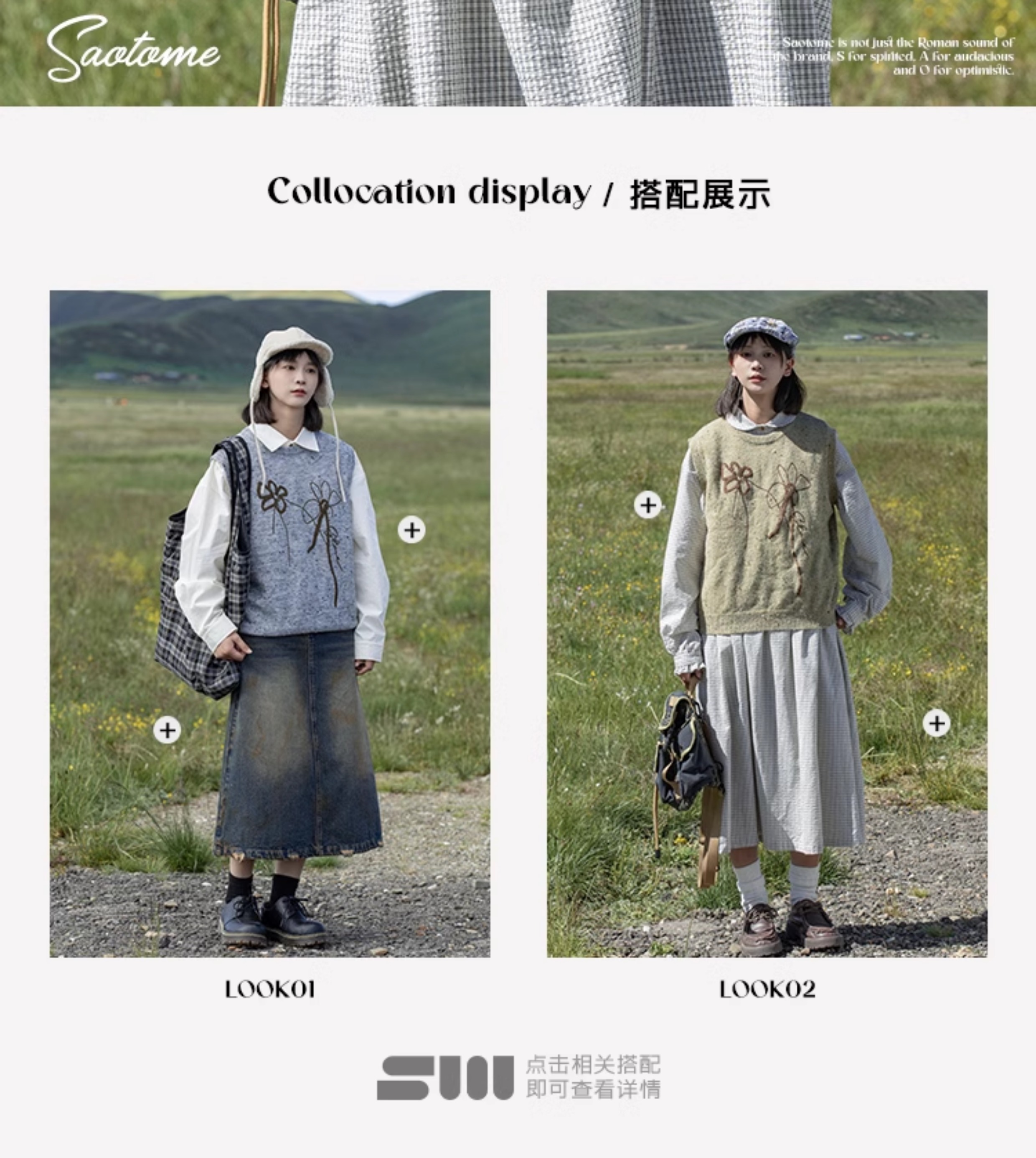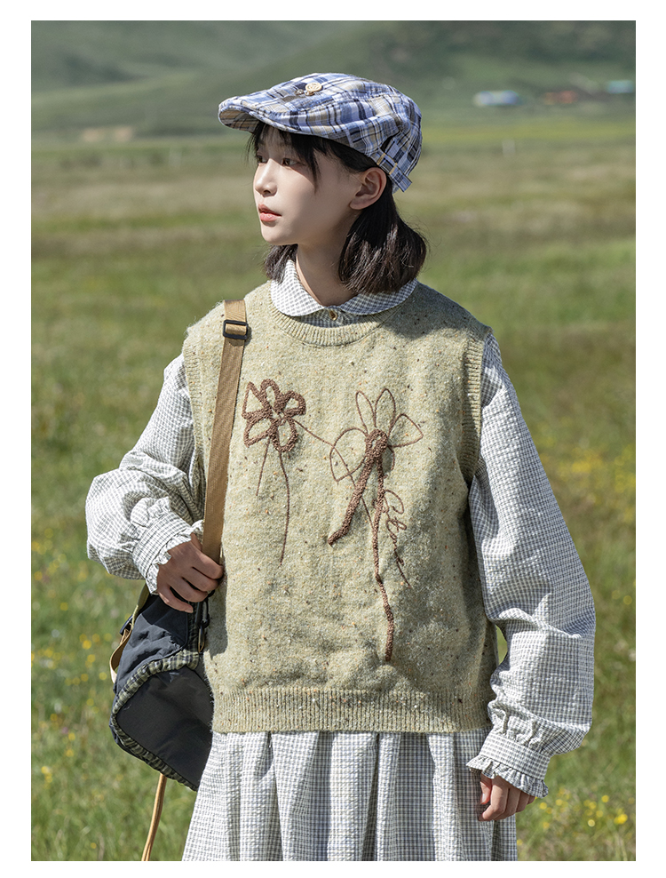 早乙女惠子saotome/STMMY243233/彩点刺绣鲜花毛衣背心