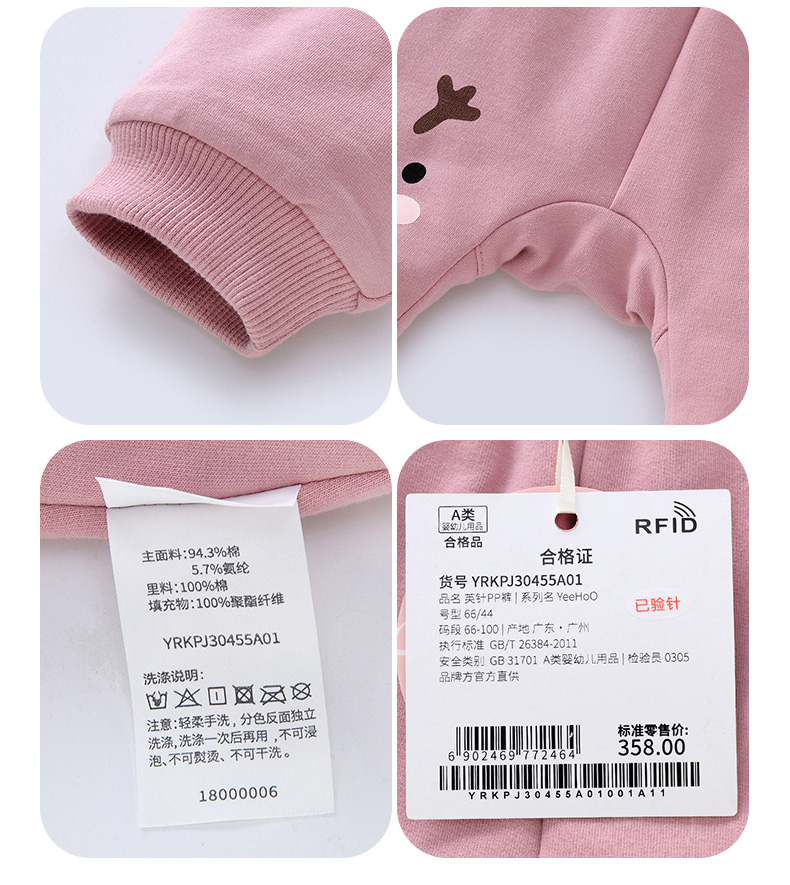 英氏童装儿童裤子宝宝休闲长裤pp裤加厚夹棉秋季YRKPJ30455A01