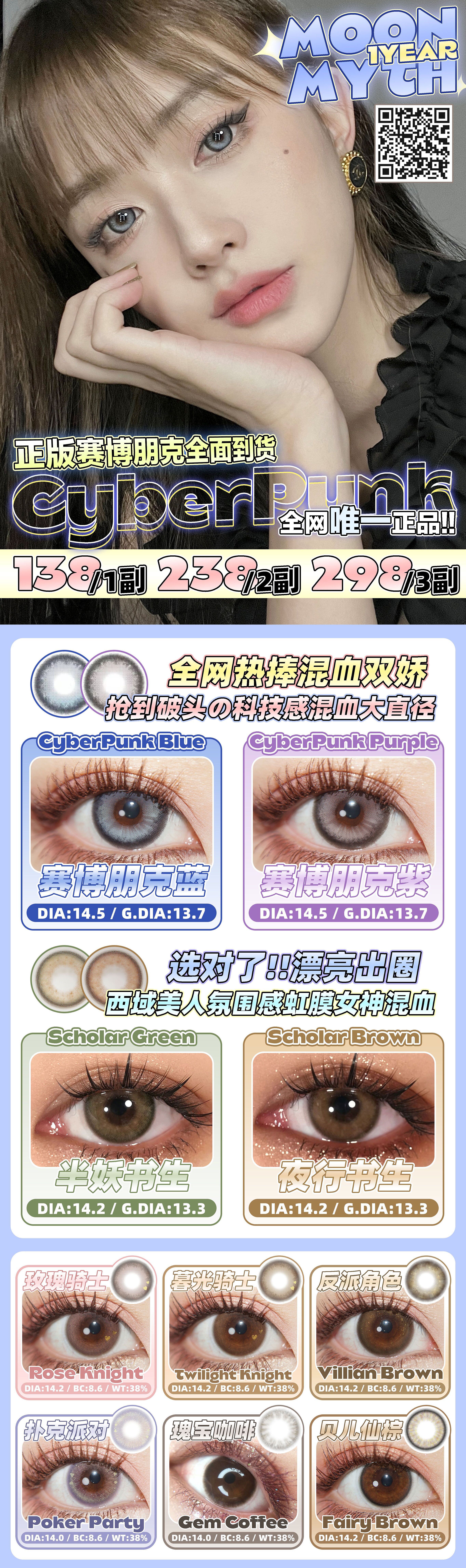 ʚMoon Myth活动ɞ 0-800度(无525/575) 赛博朋克蓝 赛博朋克紫 半妖书生 夜行书生 玫瑰骑士 暮光骑士 反派角色 扑克派对 瑰宝咖啡 贝儿仙棕 HOT