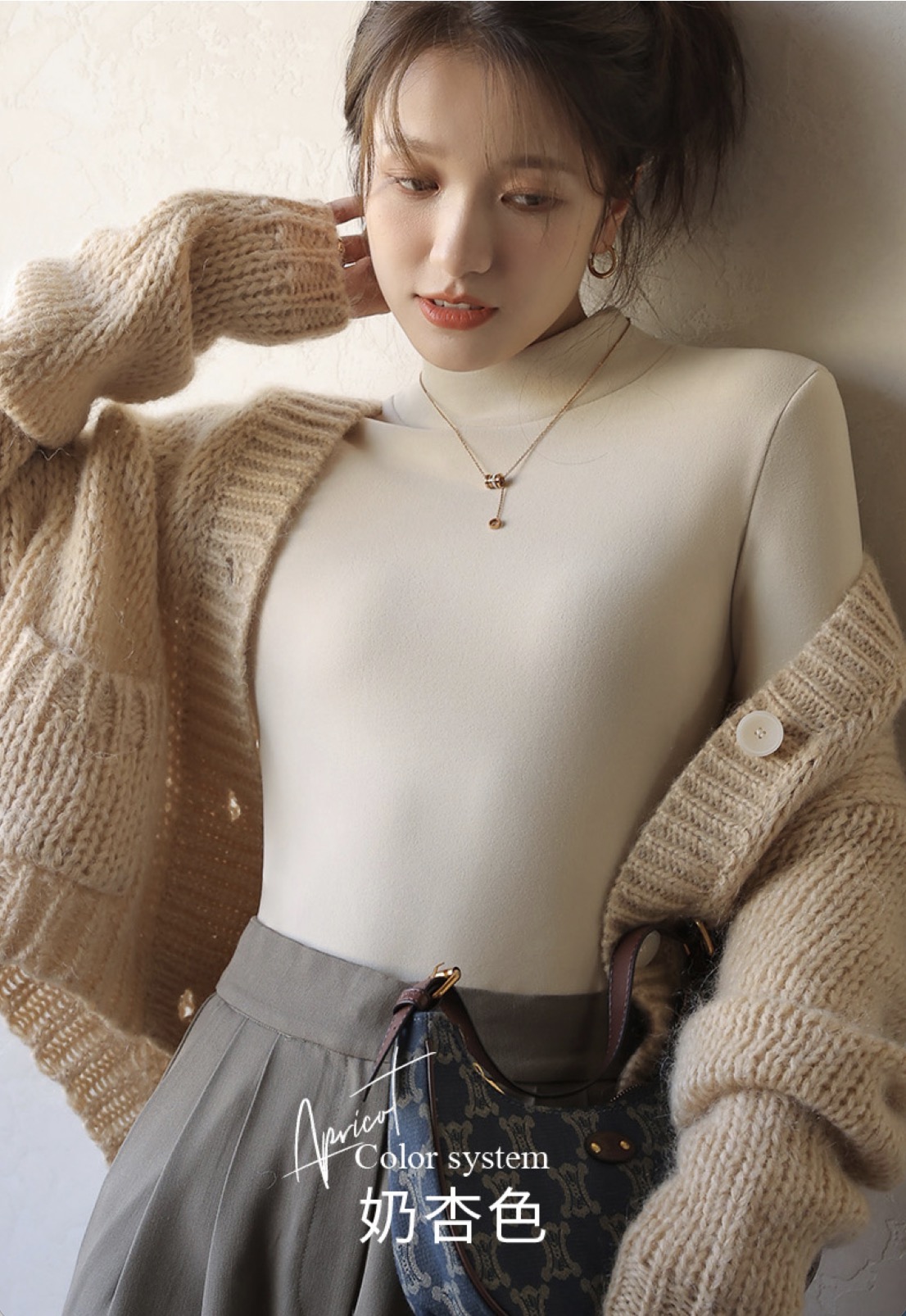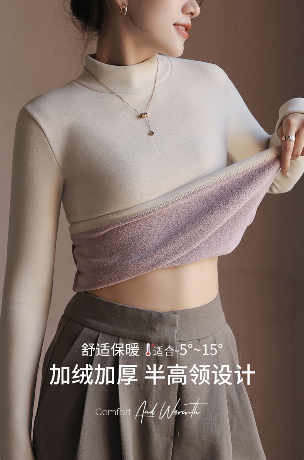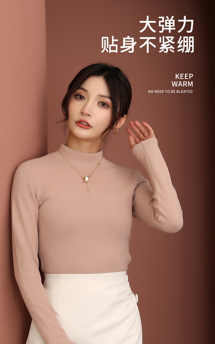 【加绒加厚 两件超值装】卷卷紫半高领柔软加绒打底衫 保暖柔软纤维 恒温亲肤 显瘦百搭 气质满满 均码80-140斤