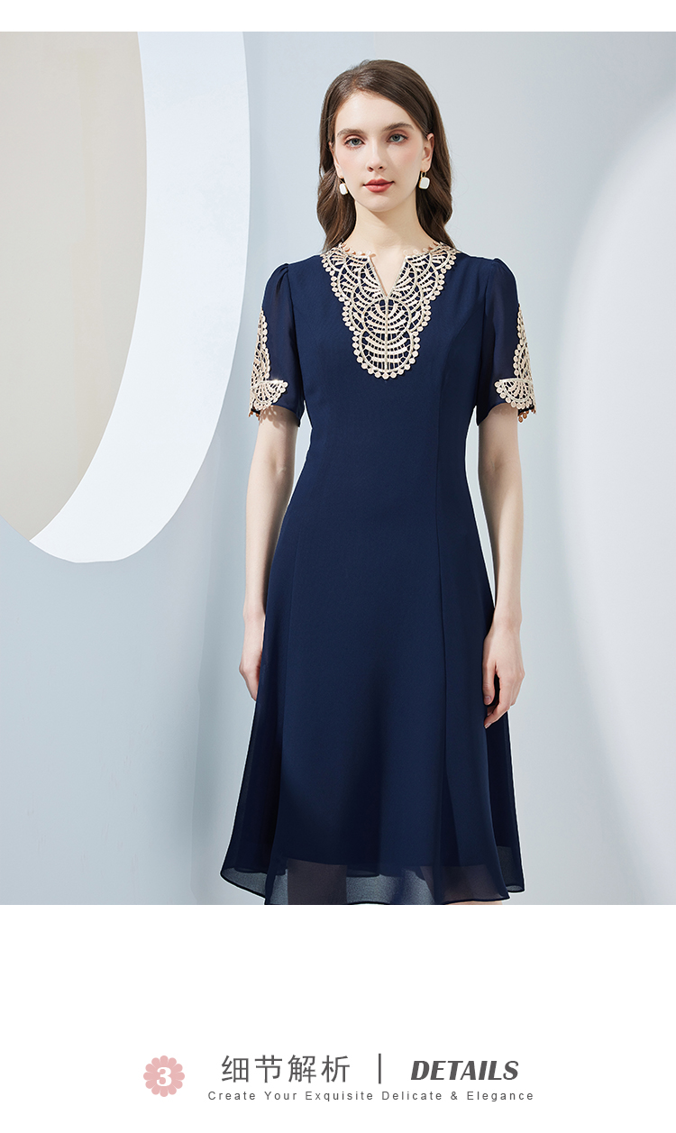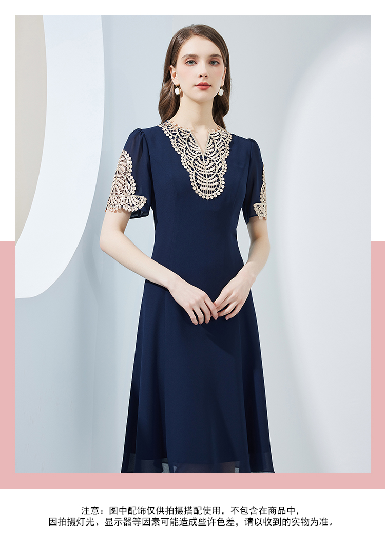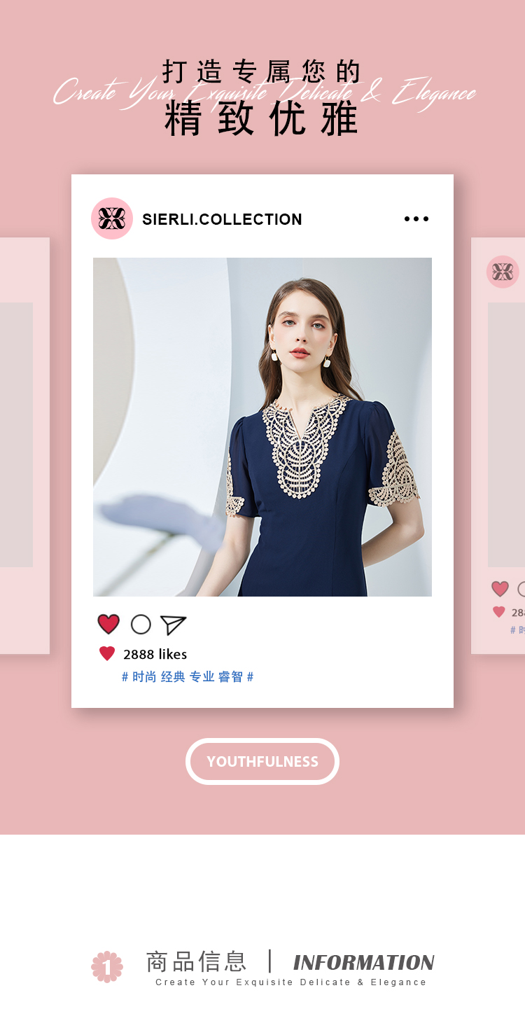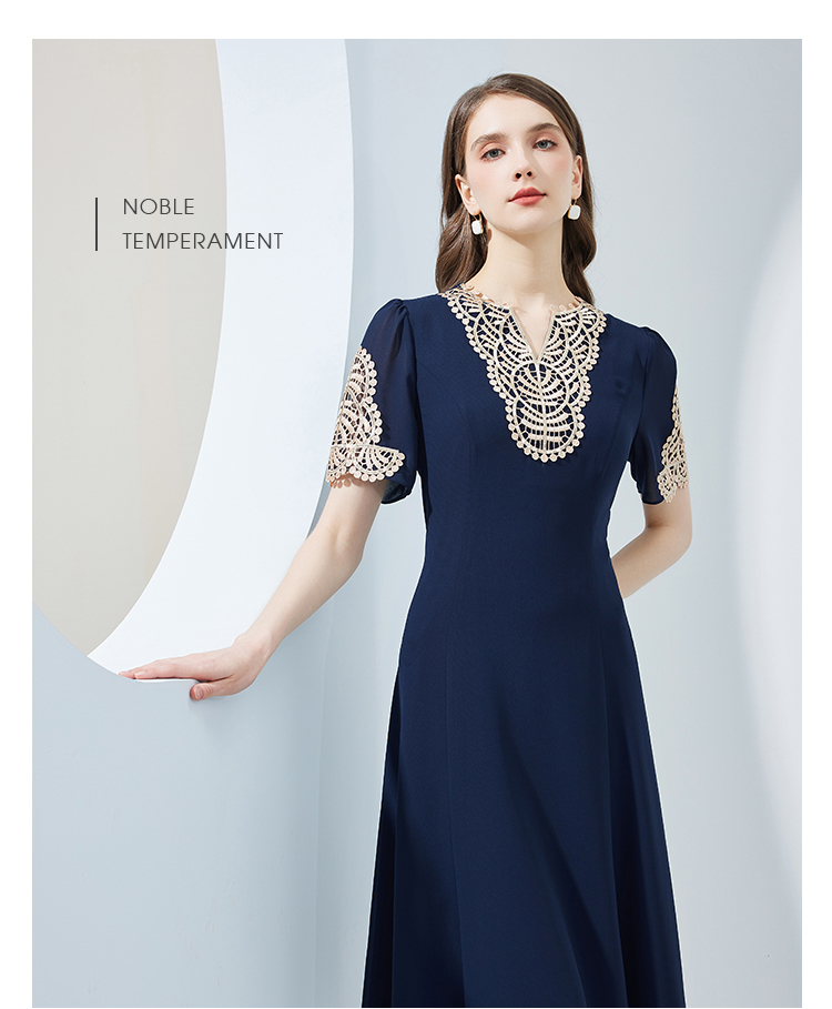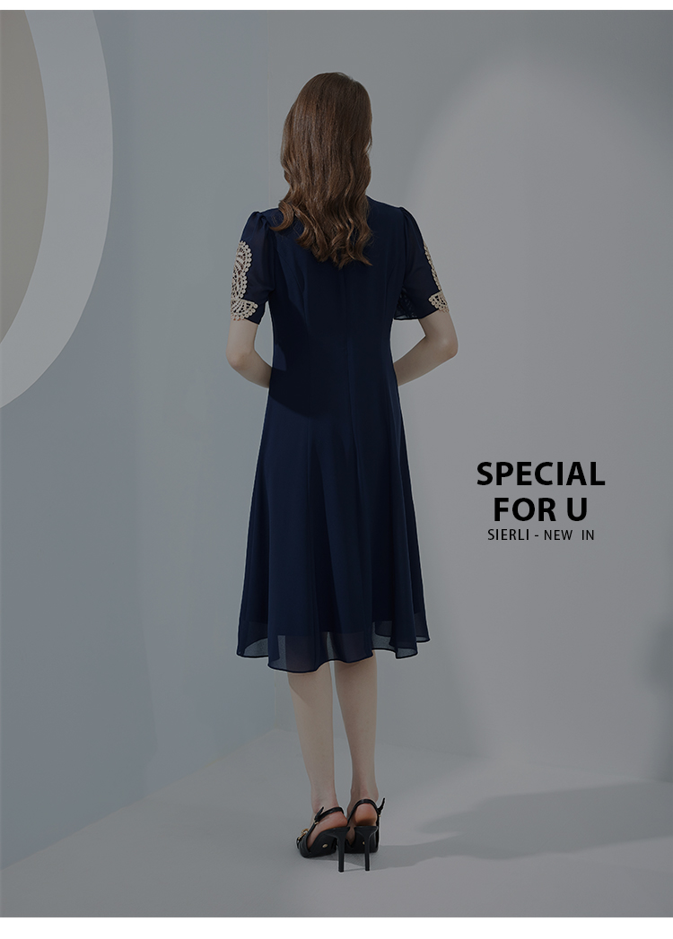 NF8P9斯尔丽瑟俪2023夏季新款高腰节设计收腰散摆法式浪漫贴蕾丝连衣裙